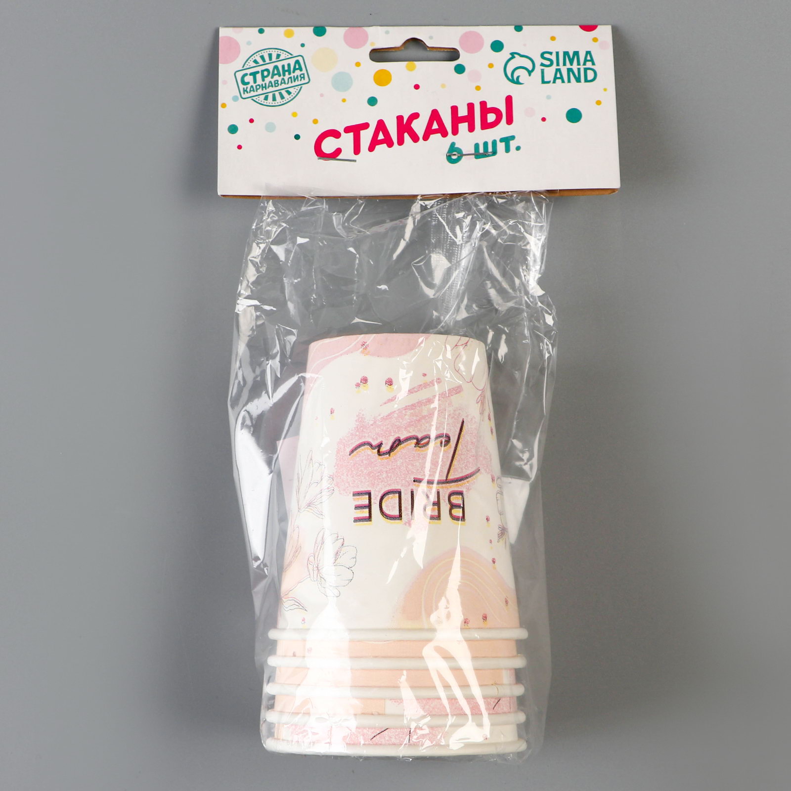 Стакан одноразовый бумажный "На девичник", набор 6 шт, 250 мл, 8 см., Страна Карнавалия, Россия
