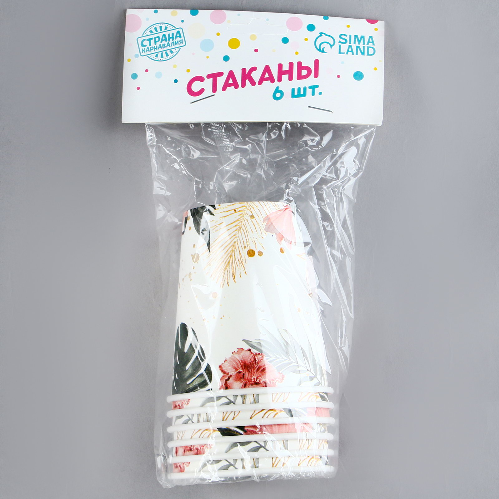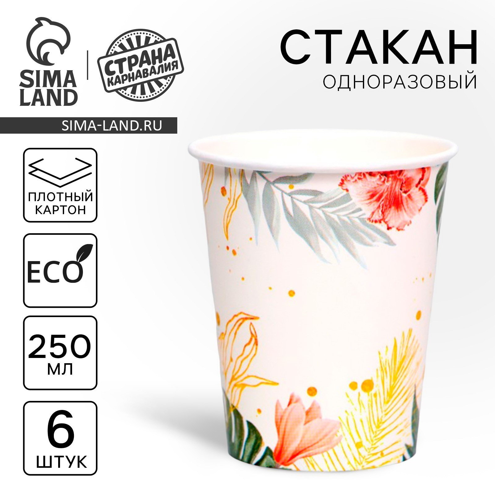 Стакан одноразовый бумажный "Природный принт", набор 6 шт, 250 мл, 8 см., Страна Карнавалия, Россия