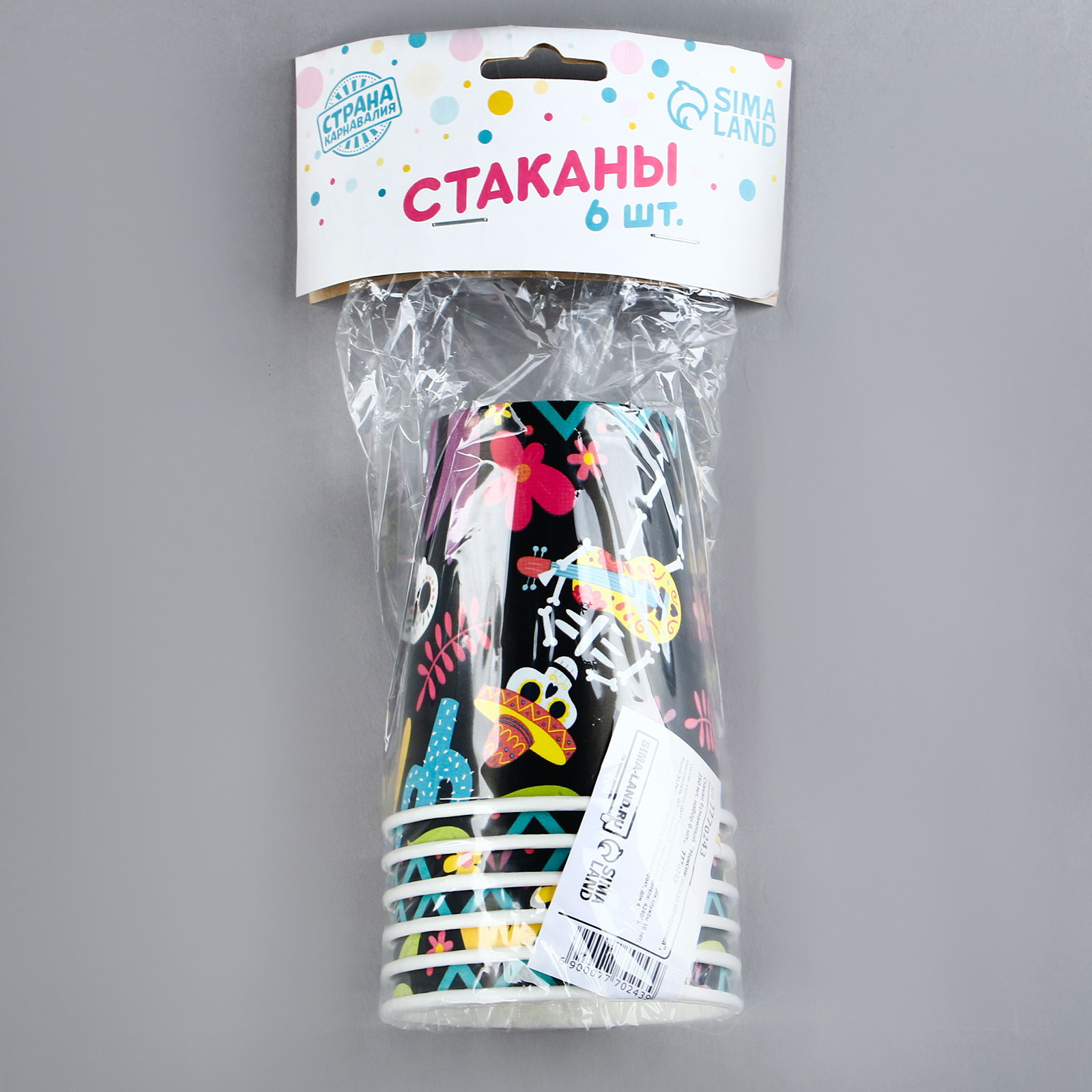 Стакан одноразовый бумажный "Мексиканская вечеринка", 250 мл, набор 6 шт., на Хэллоуин, 8 см., Страна Карнавалия, Россия