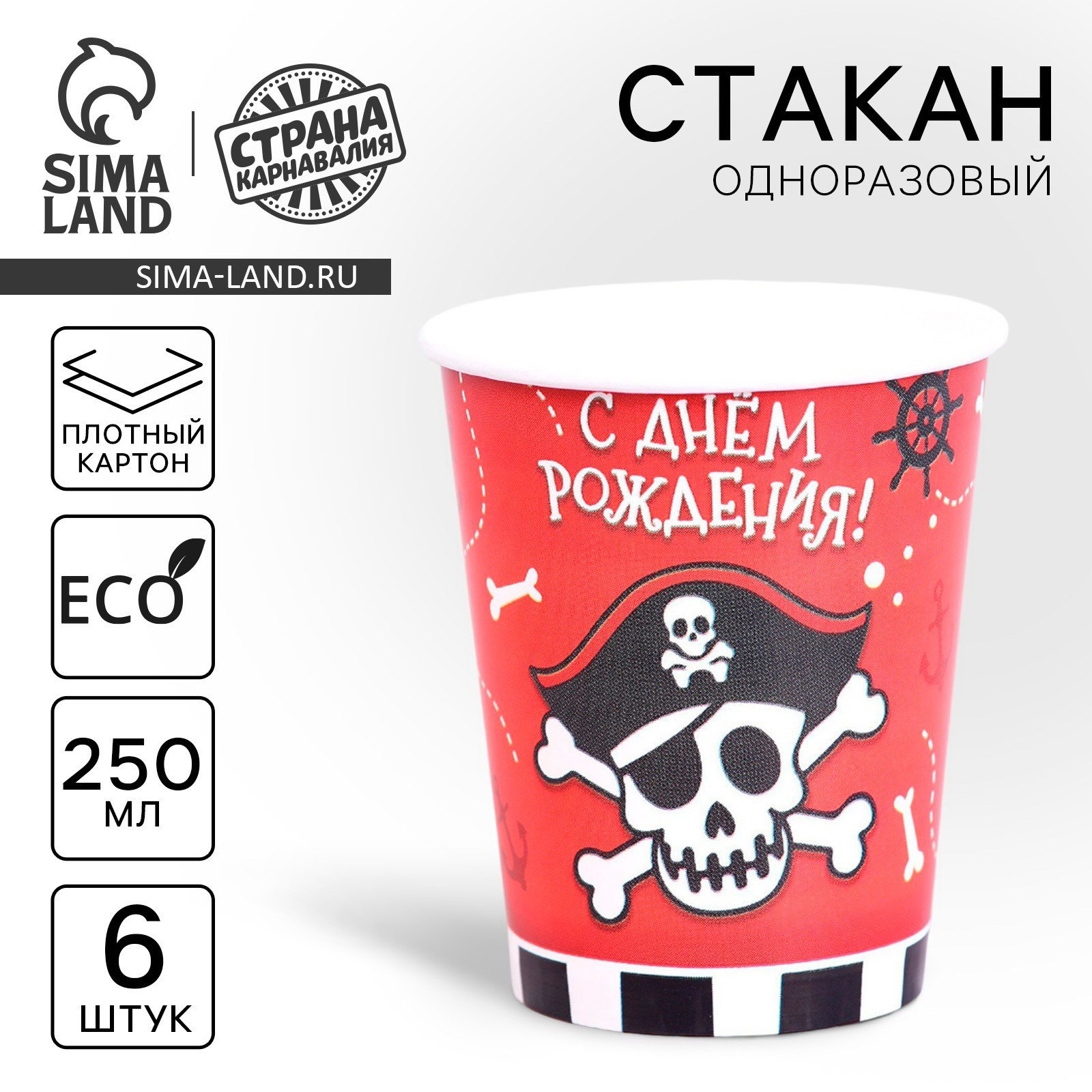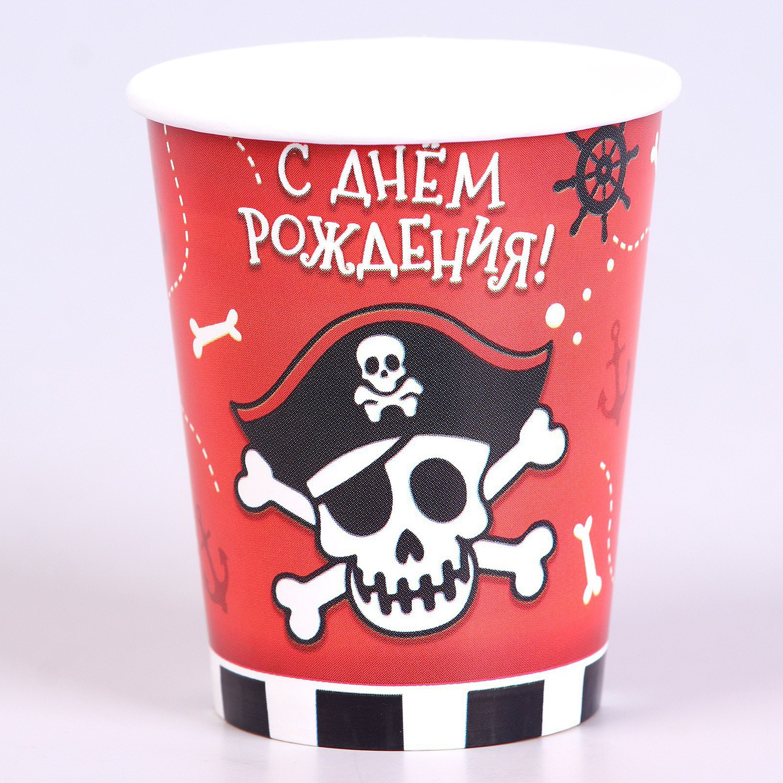Стакан одноразовый бумажный "Пират", 250 мл, набор 6 шт, 8 см., Страна Карнавалия, Россия