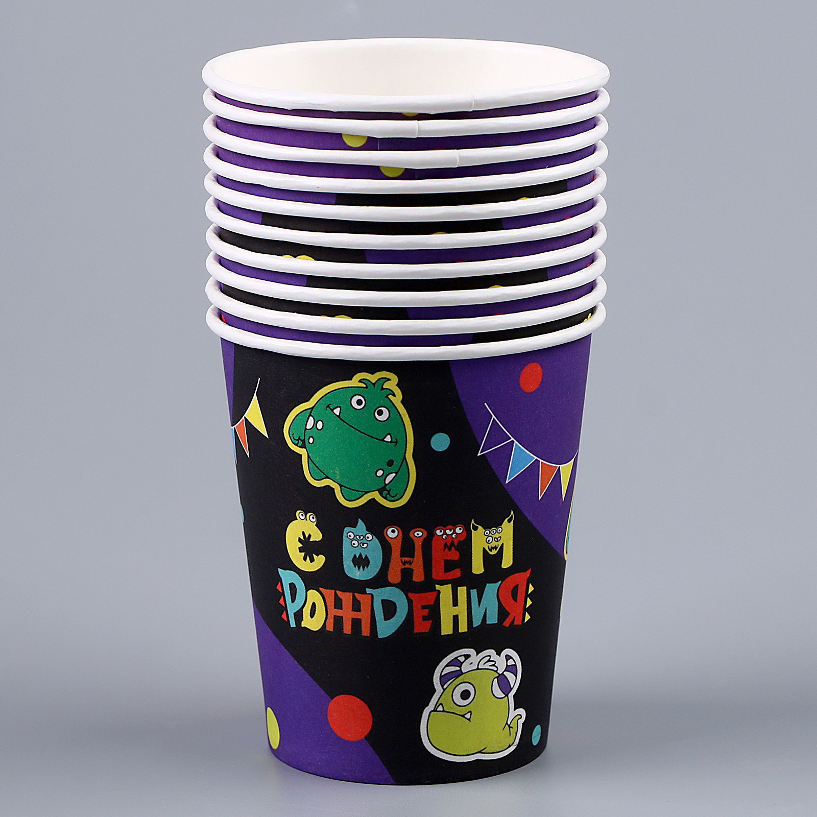 Цвет: Разноцветный, Фиолетовый, Чёрный В наборе, шт.: 1, 10 Размер упаковки: 8 x 9 x 8 см. Размер упаковки: 8 x 9 x 8 см. tnved: 9505900000 Фасовка, шт.: 10 Температурное ограничение: Нет Набор: Да Количество слоёв: 1 Рисунок: Да Вид: Стакан Тематика праздника: День рождения | ||