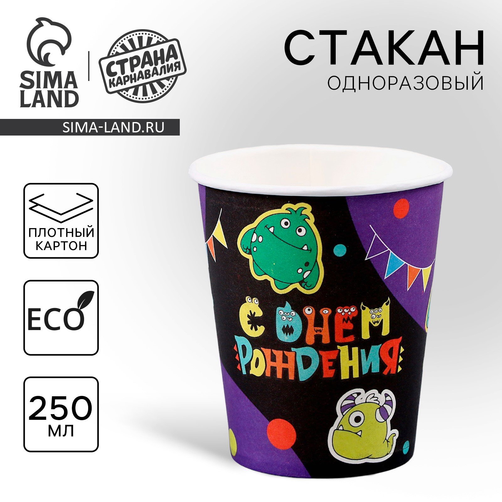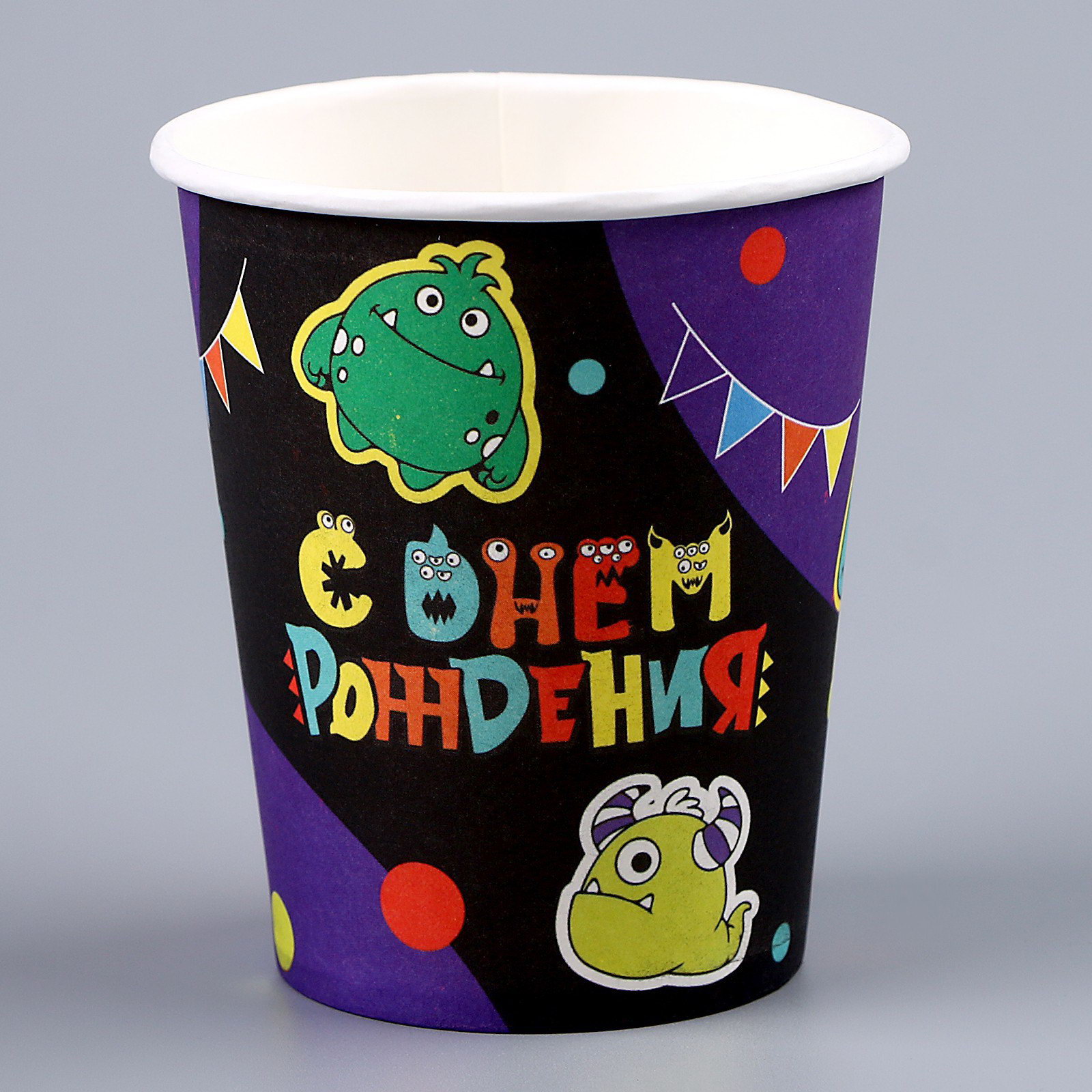 Стакан одноразовый бумажный "Монстрики", 250мл, 8 см., Страна Карнавалия, Россия