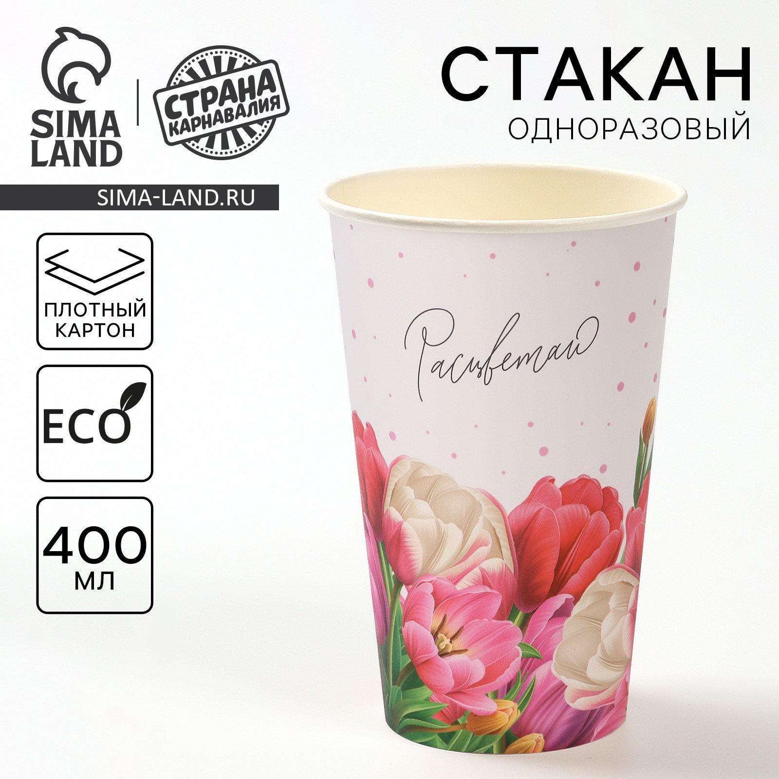Стакан одноразовый бумажный "Расцветай" 400 мл, 9 см., Страна Карнавалия, Россия