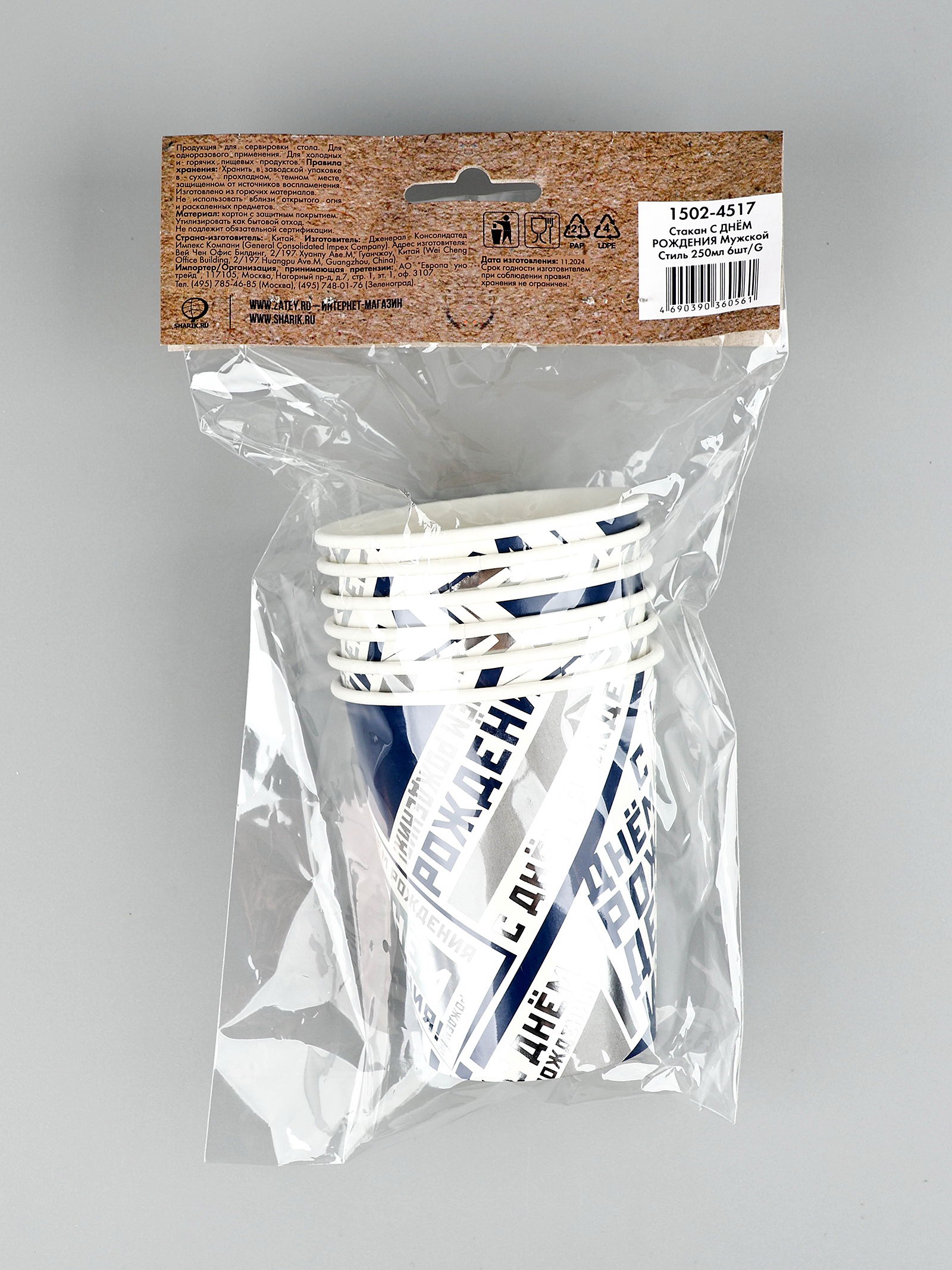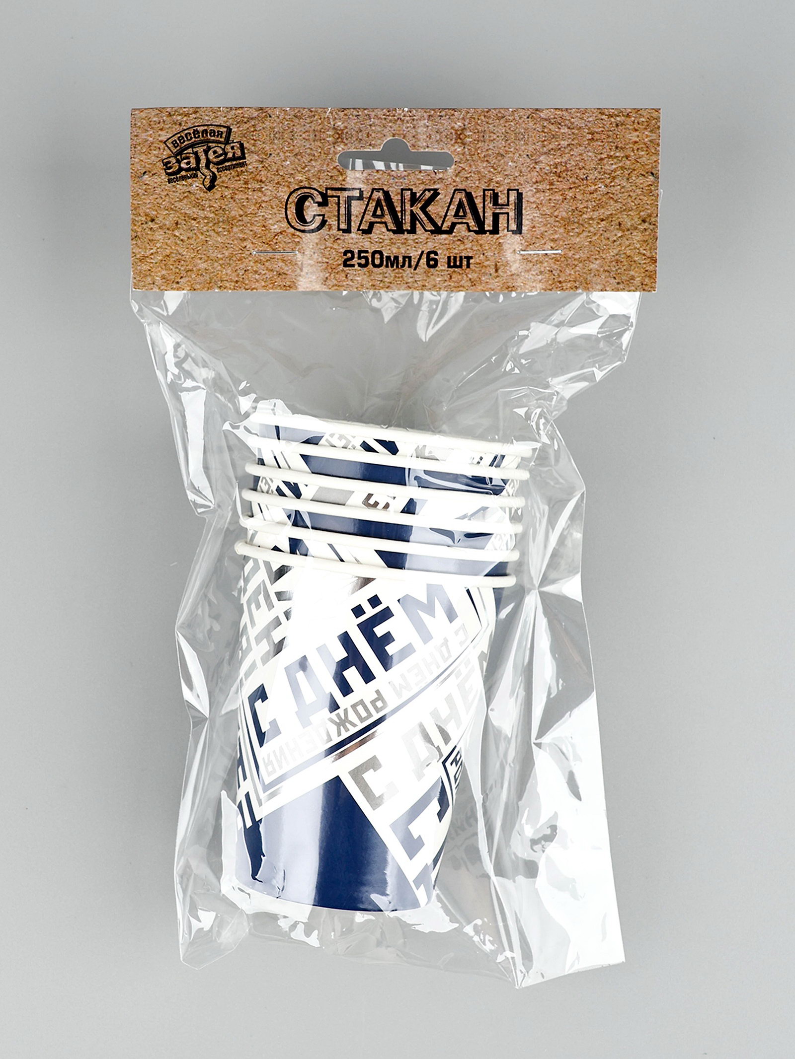 Стакан бумажный одноразовый "С днем рождения", 250 мл 6 шт., 8 см., Россия
