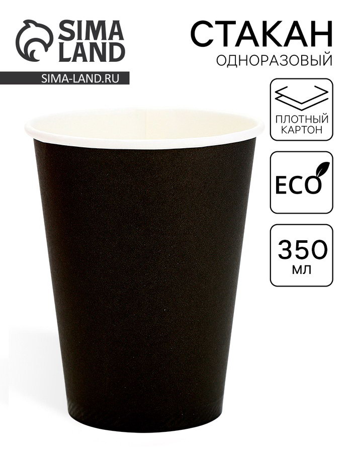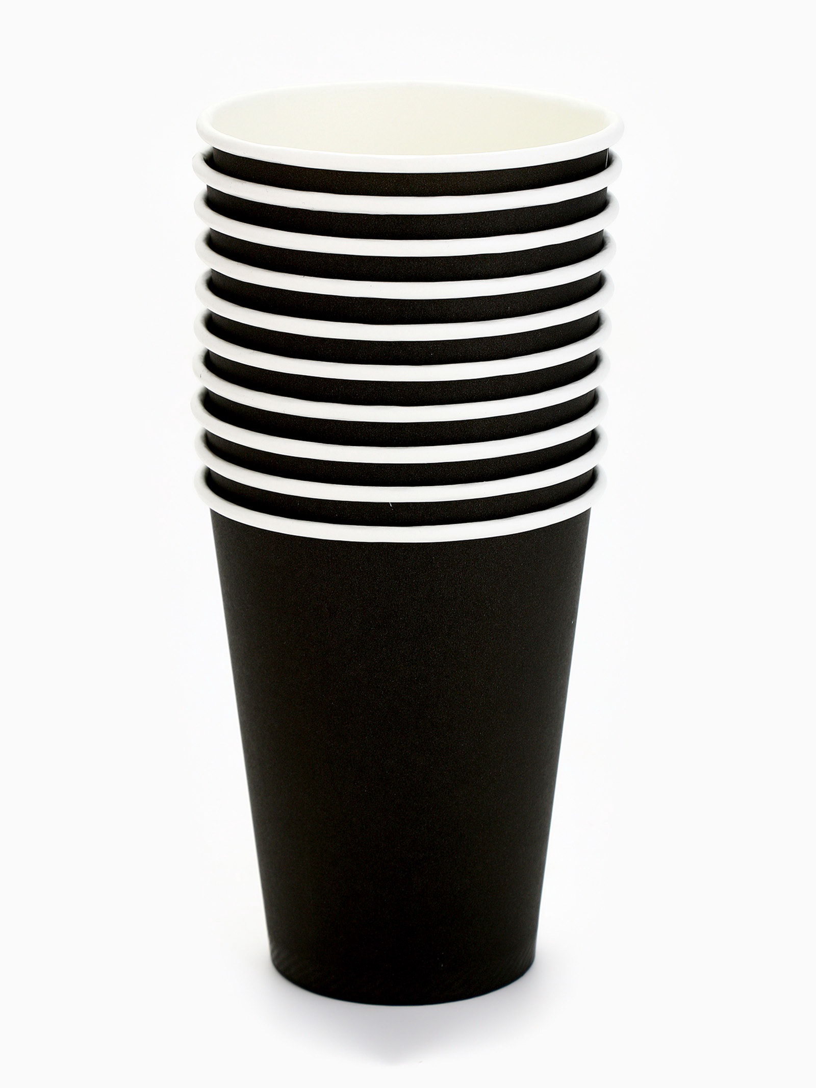 Стакан одноразовый бумажный "Черный", 350 мл, диаметр 90 мм, 9 см., Россия