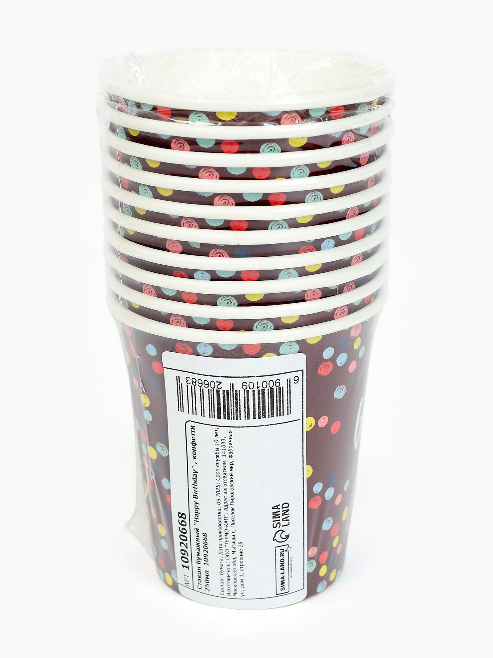 Стакан одноразовый бумажный Happy Birthday, 250 мл, 250 мл., Россия