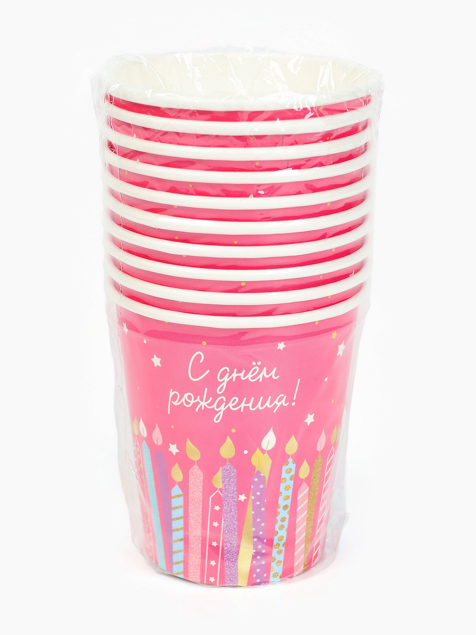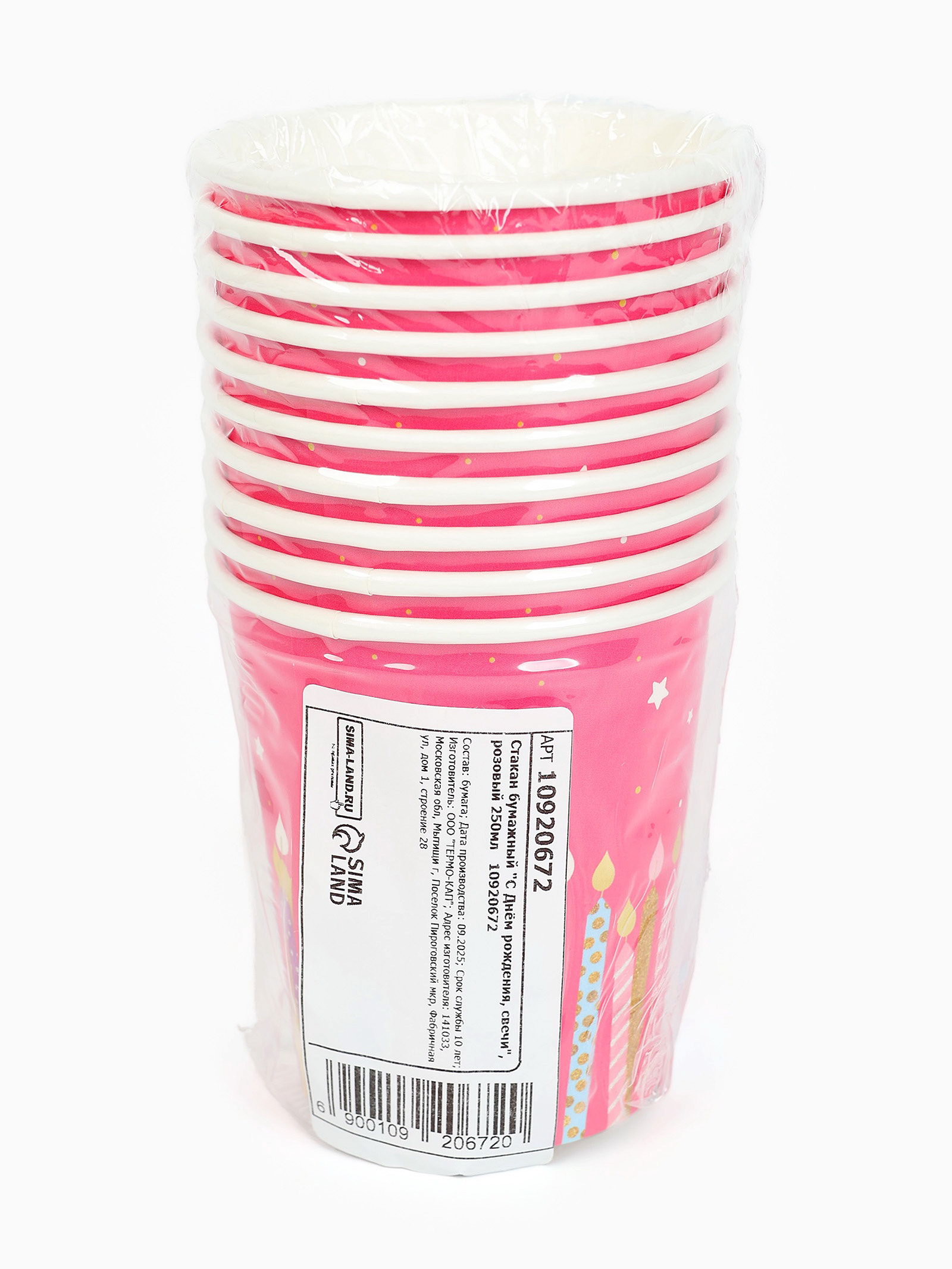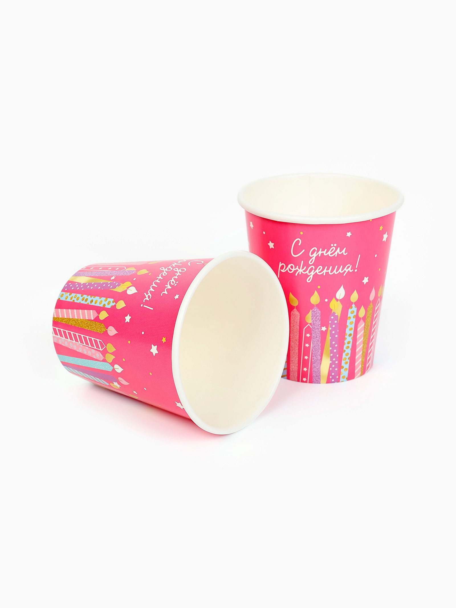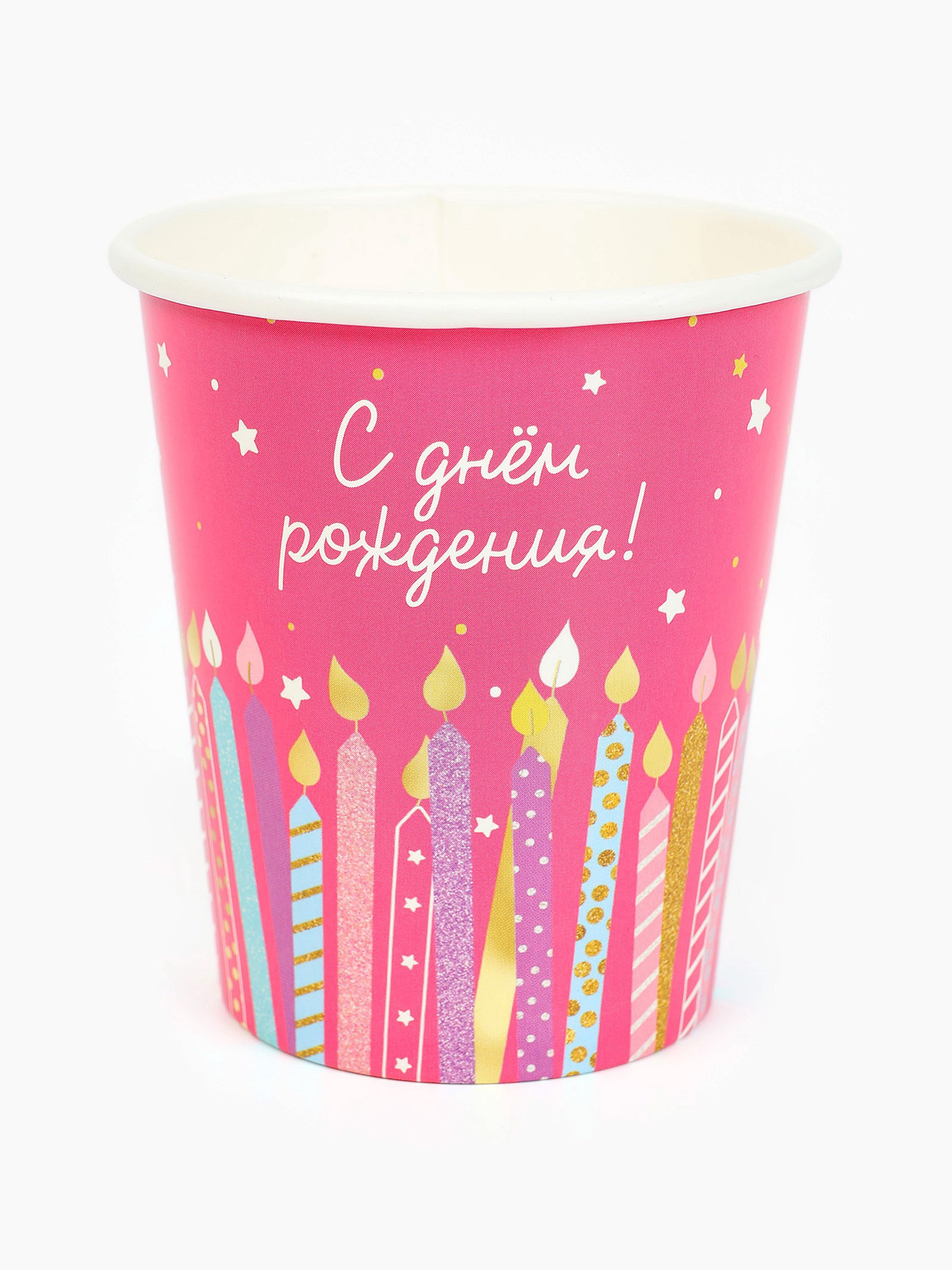 Стакан одноразовый бумажный "С Днём рождения", розовый, 250 мл, 250 мл., Россия