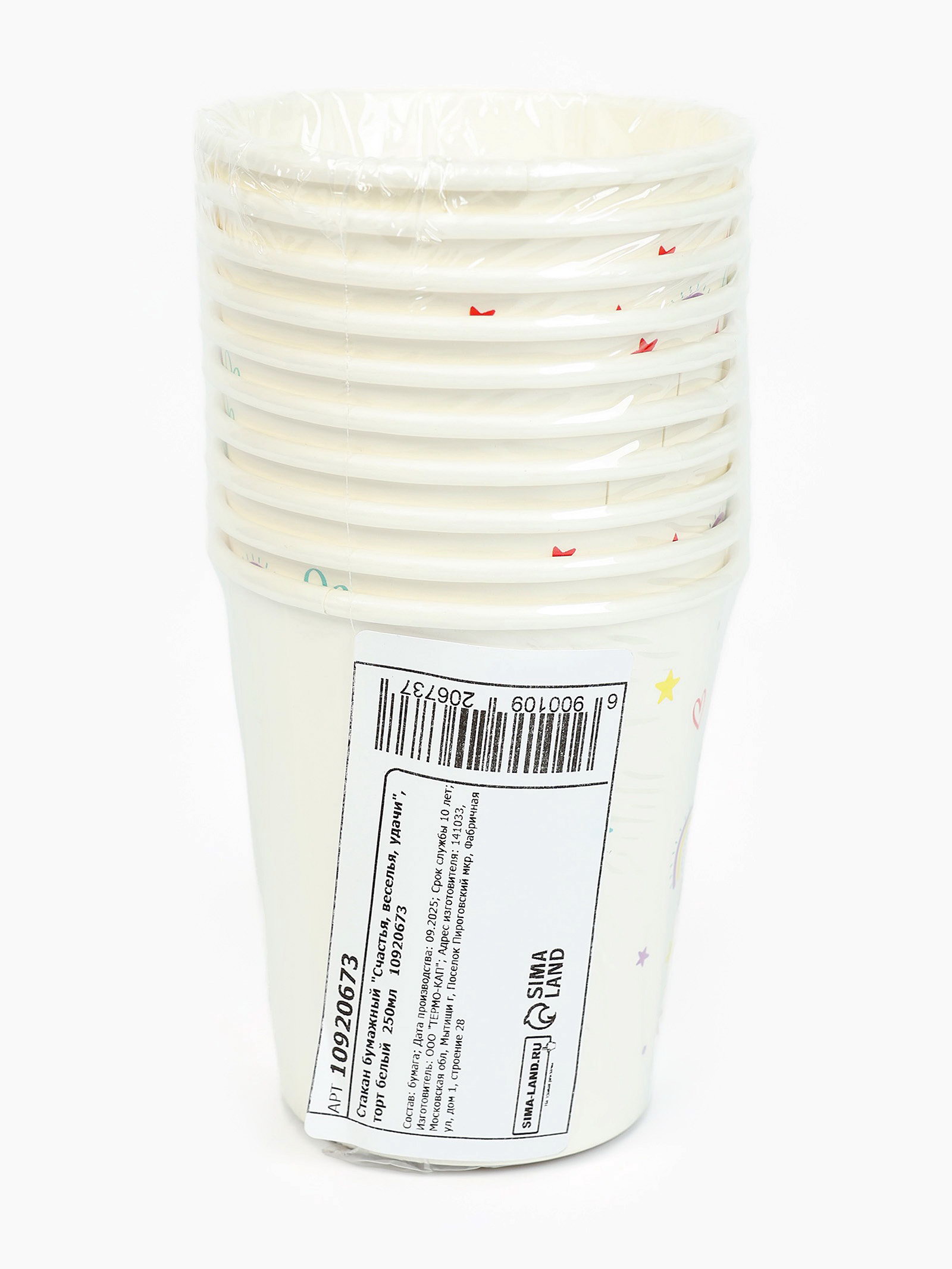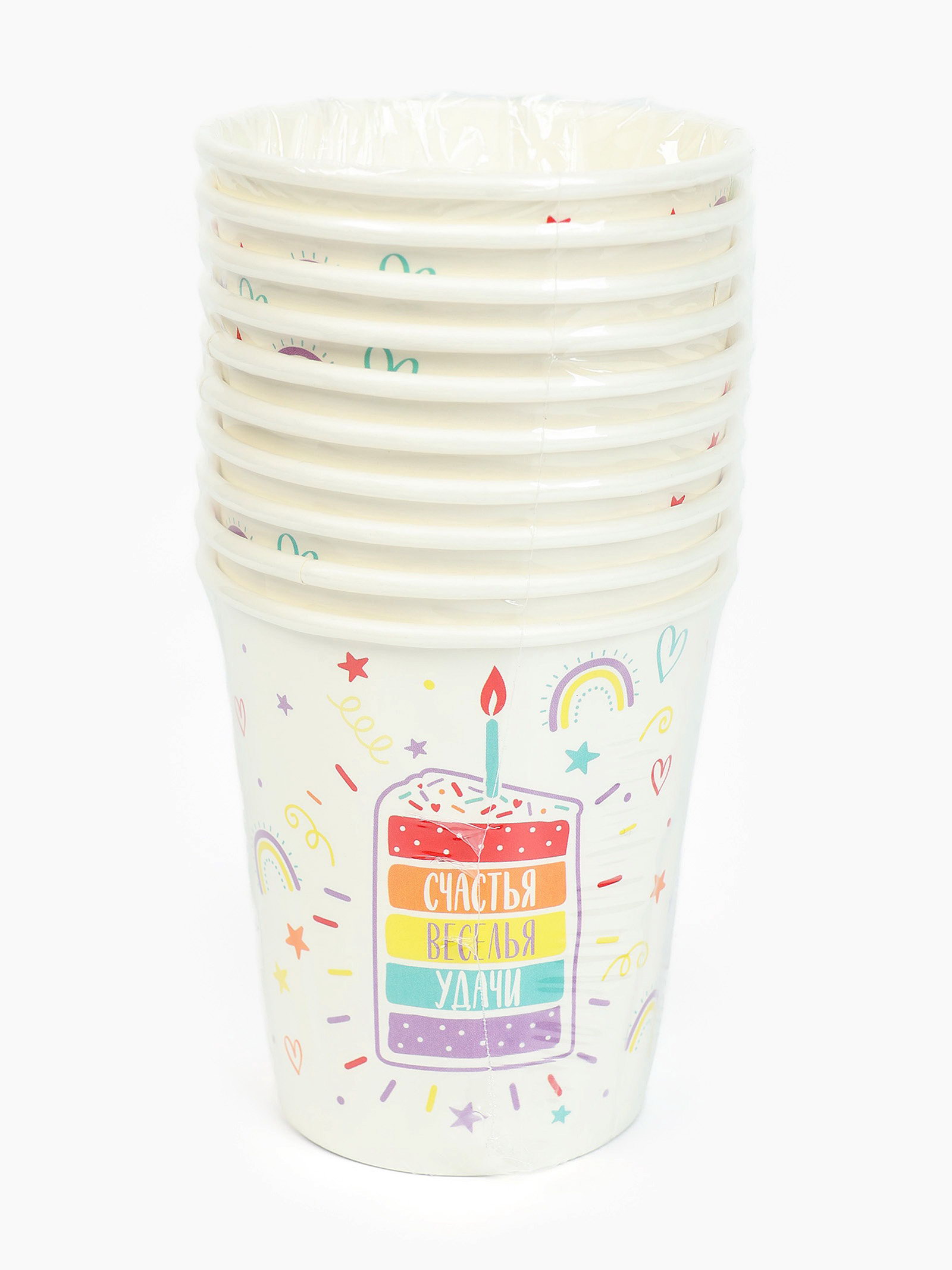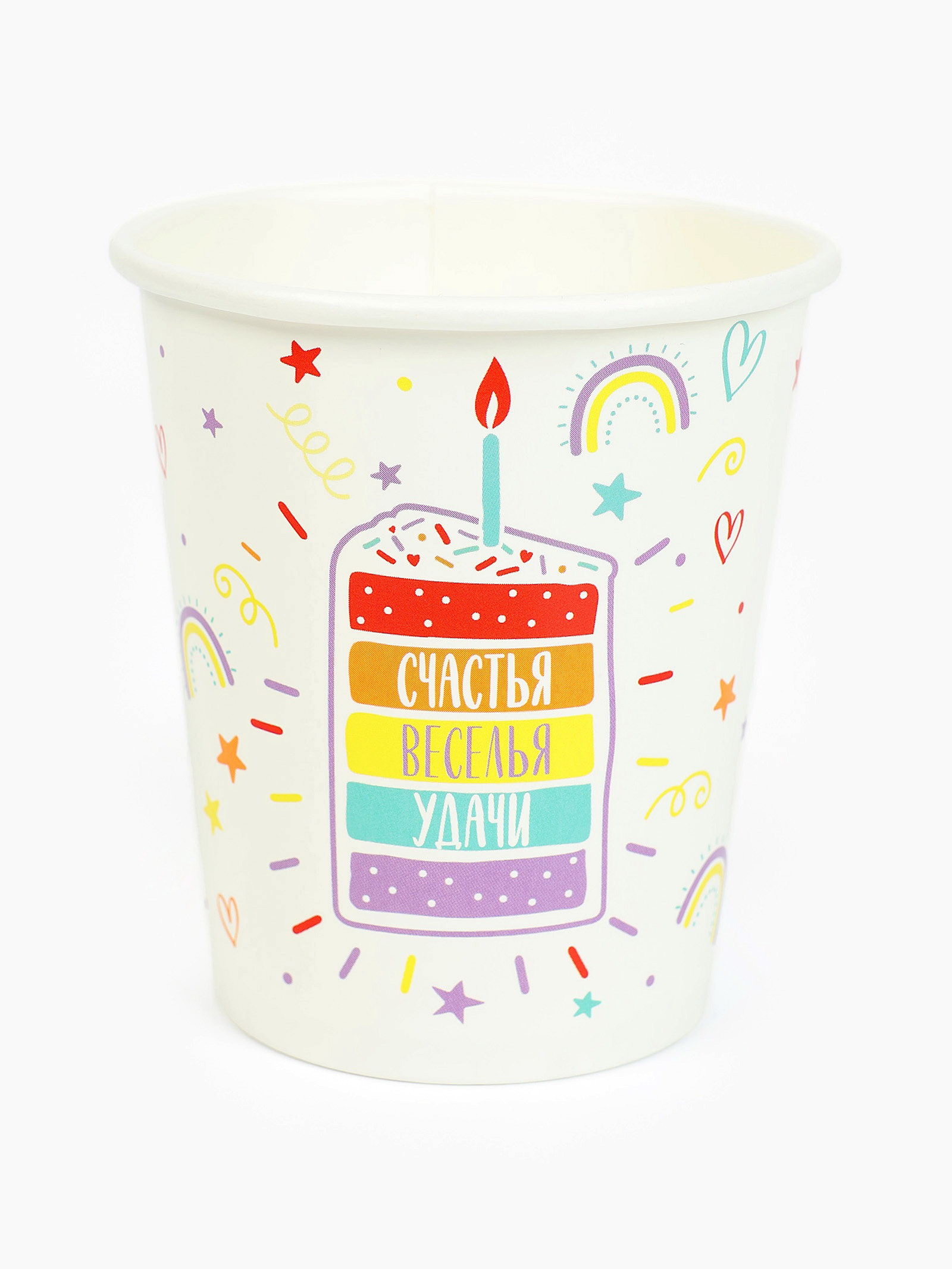 Стакан одноразовый бумажный "Счастья, веселья, удачи", 250 мл, 250 мл., Россия