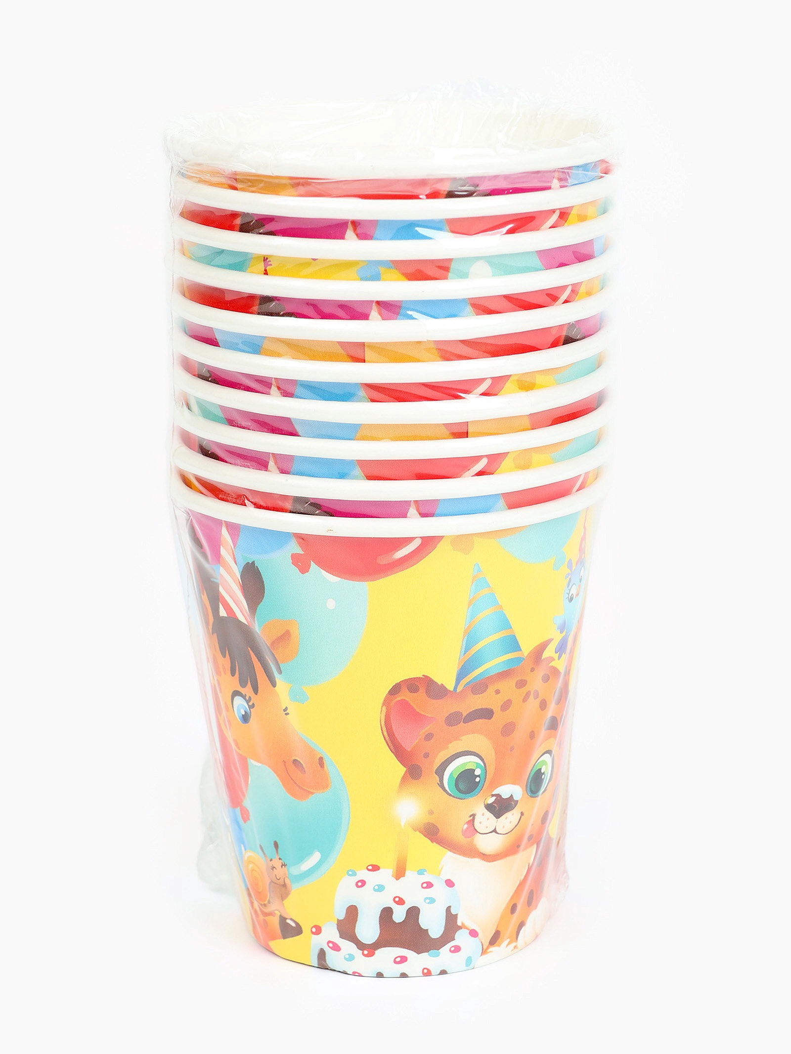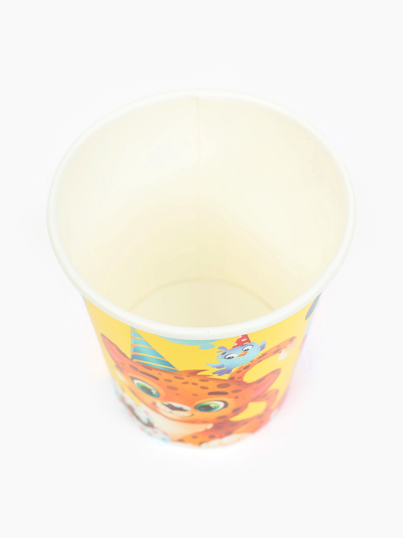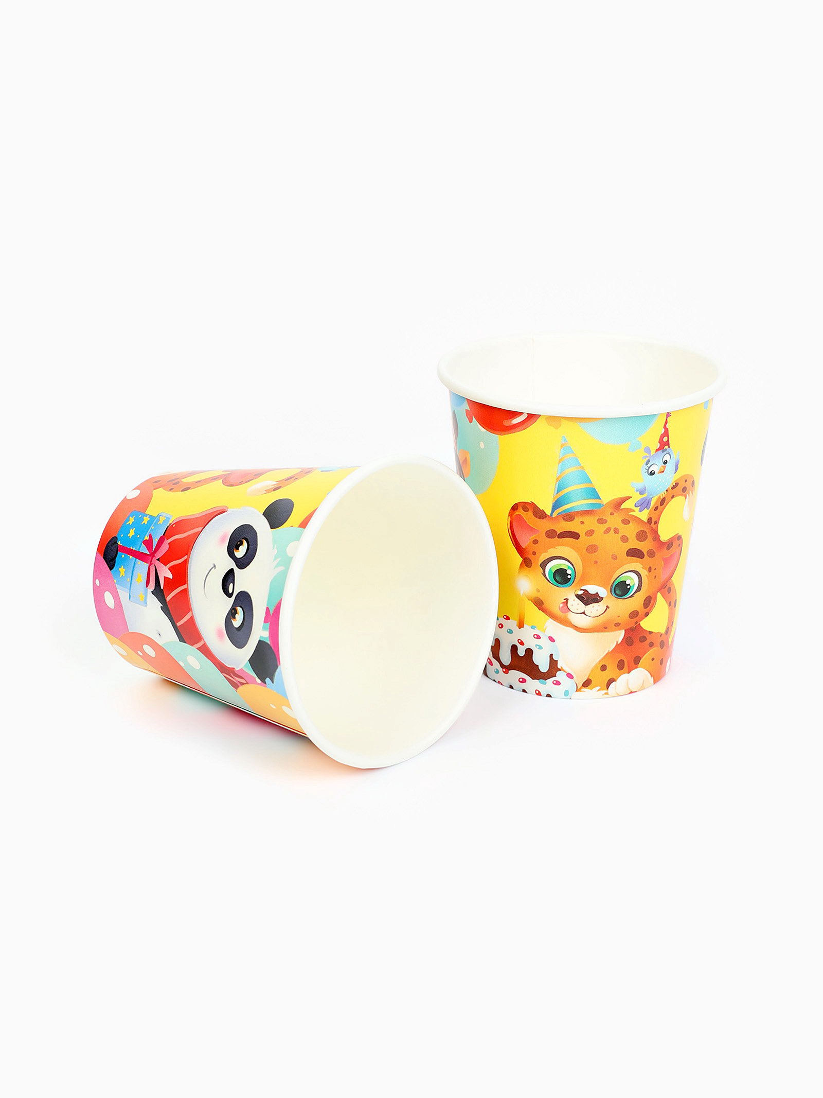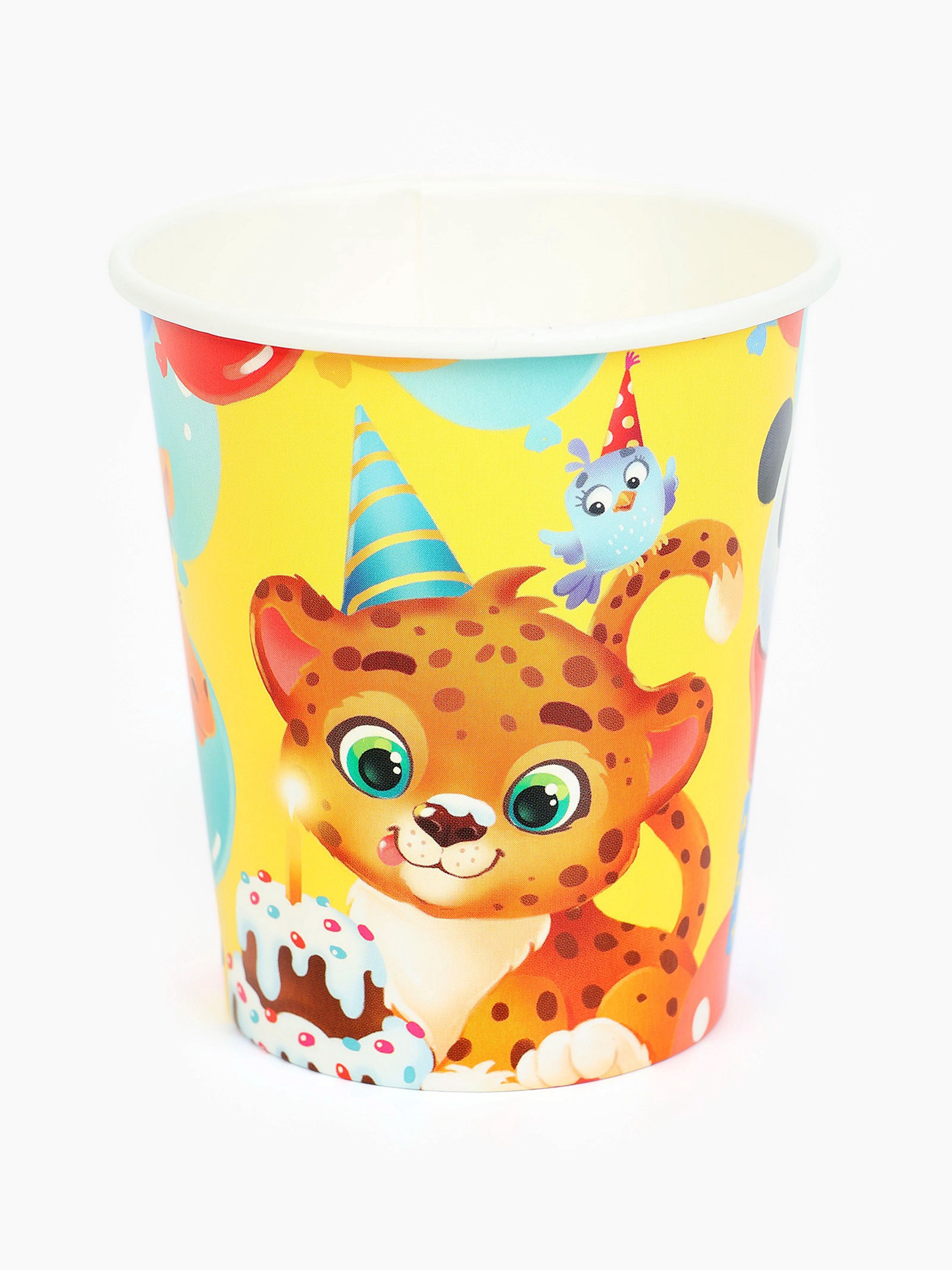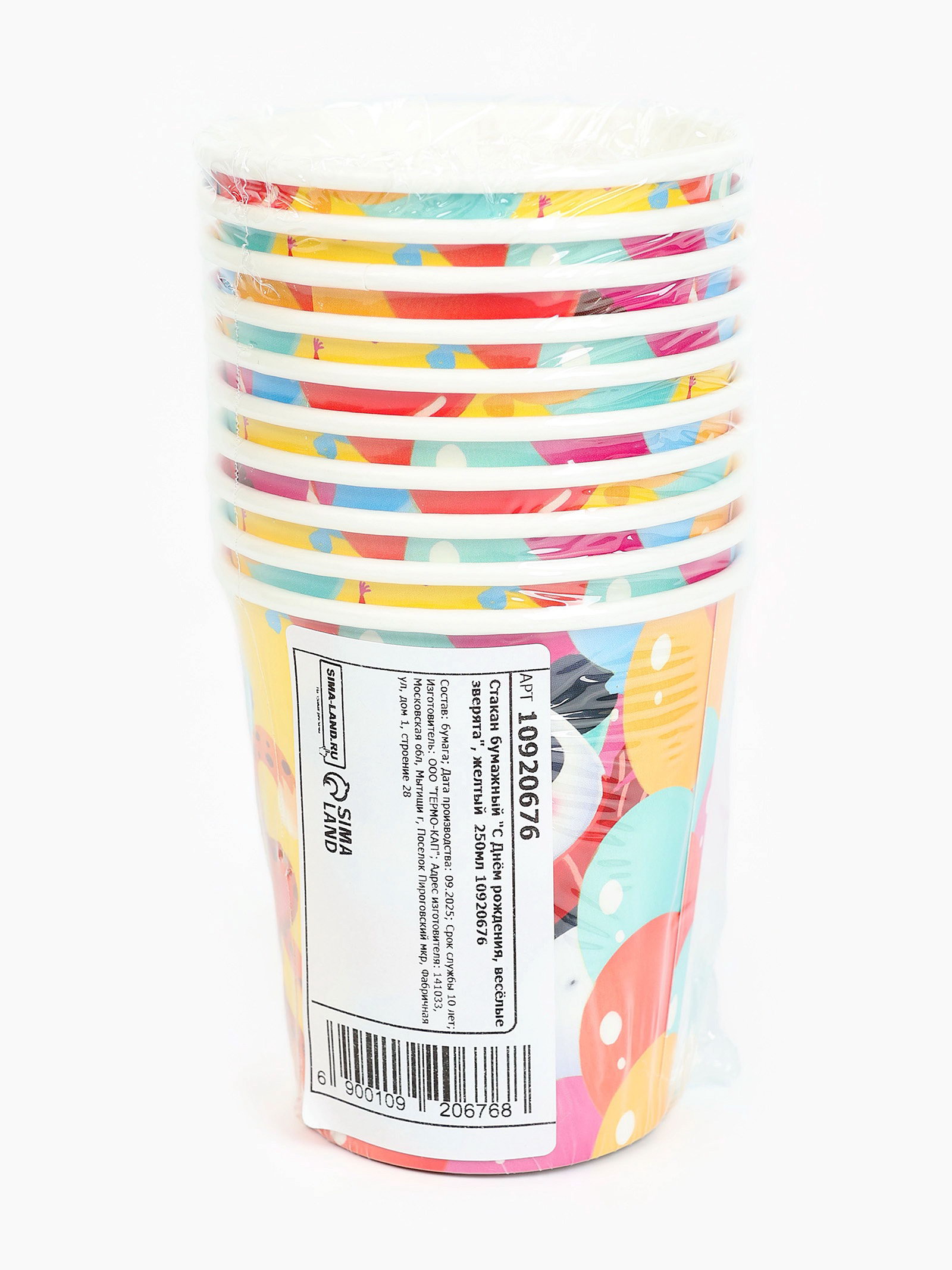 Стакан одноразовый бумажный "С Днём рождения, весёлые зверята", желтый, 250 мл, 250 мл., Россия