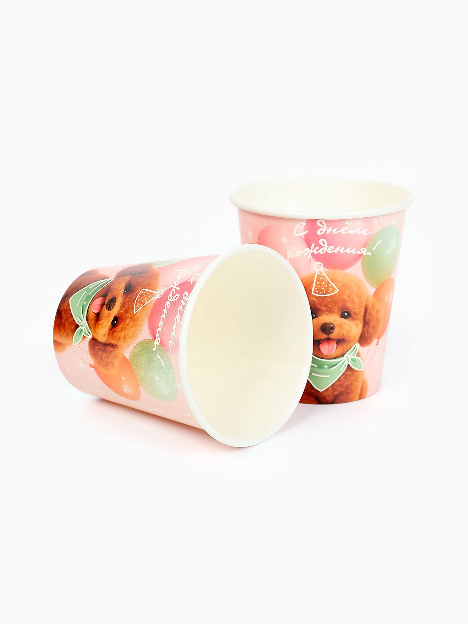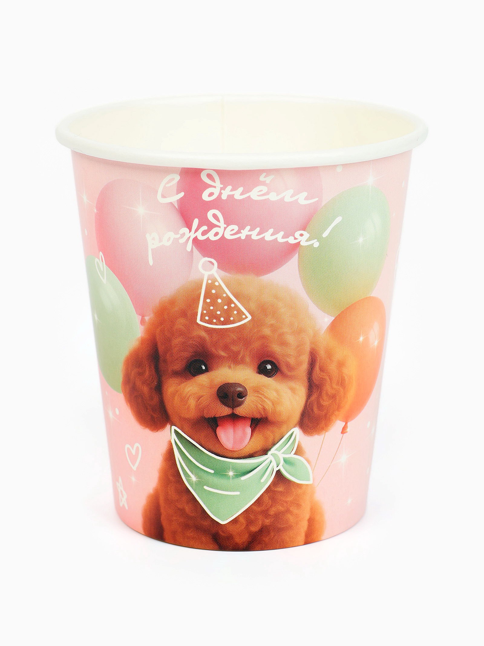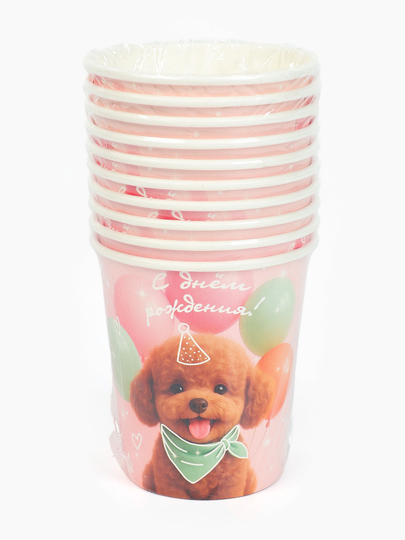 Стакан одноразовый бумажный "С Днём рождения, собачка", розовый, 250 мл, 250 мл., Россия