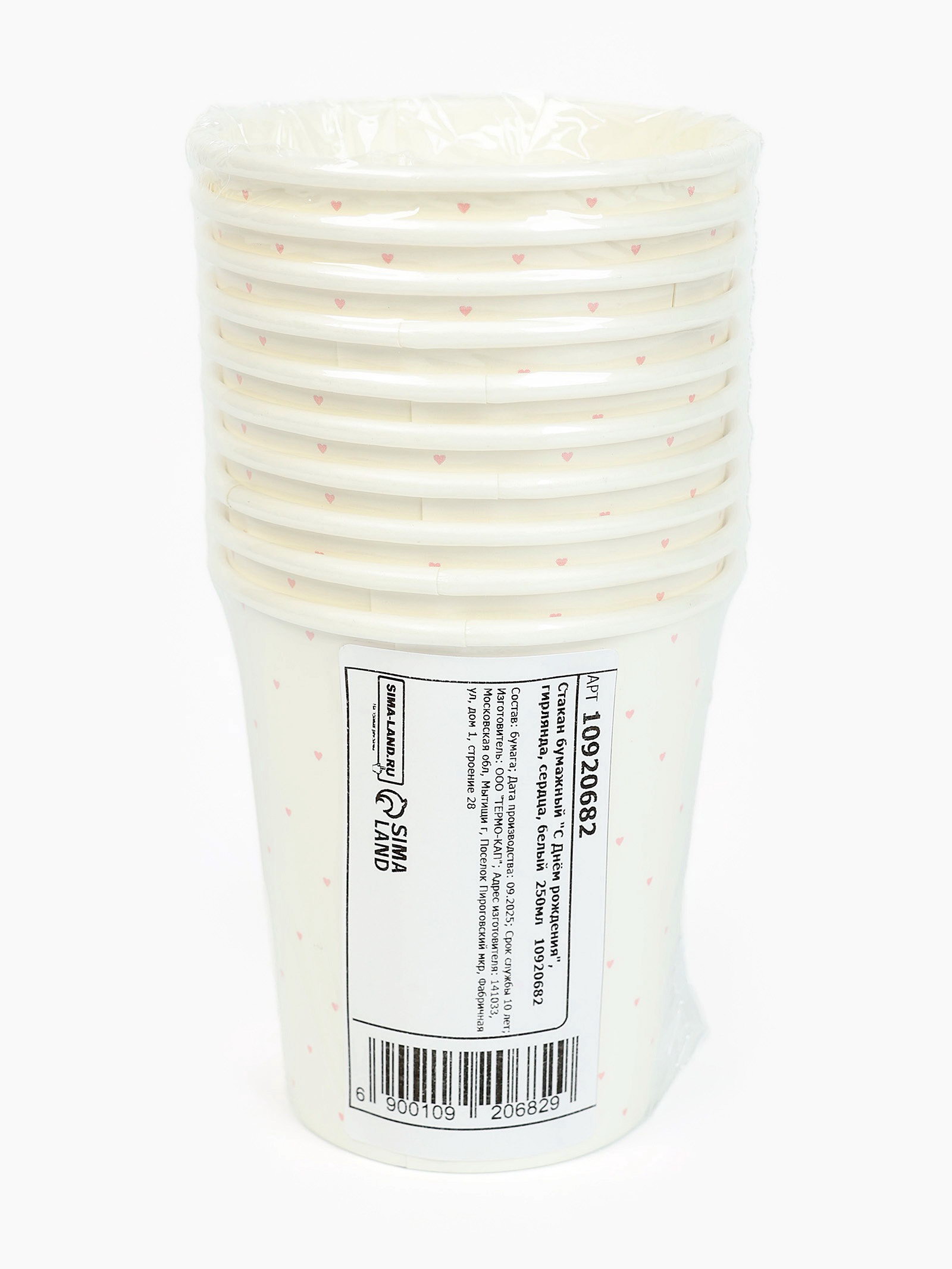 Стакан одноразовый бумажный "С Днём рождения", белый, 250 мл, 250 мл., Россия