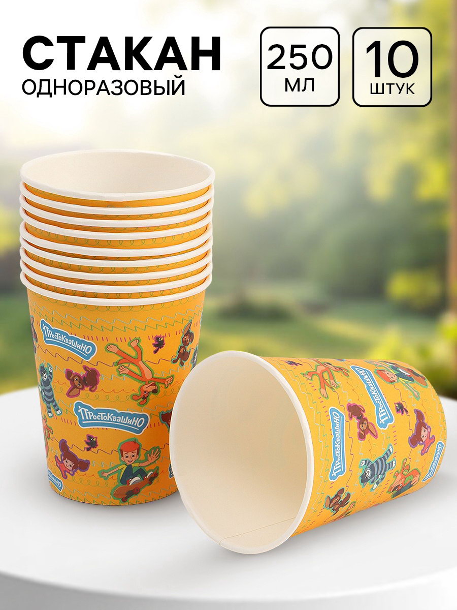 Стакан одноразовый "Простоквашино" 250 мл, набор 10 шт., 8 см., Союзмультфильм, Россия