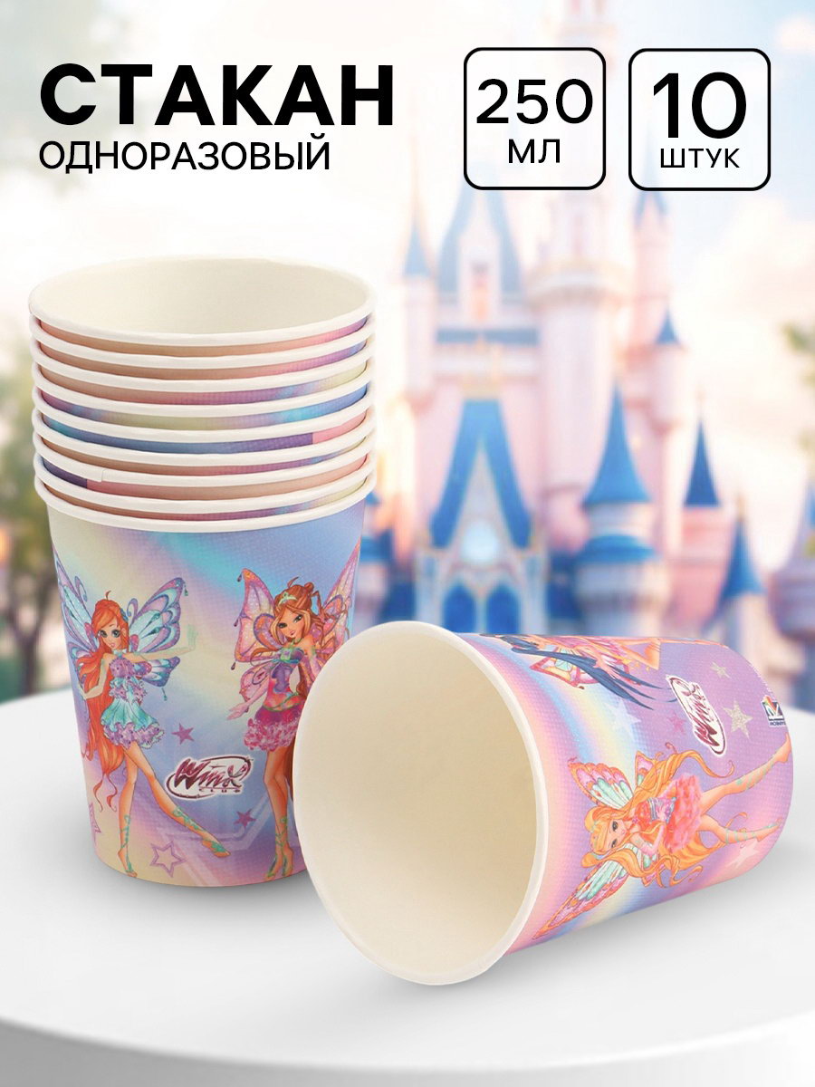Стакан одноразовый 250 мл, набор 10 шт., ВИНКС, 8 см., WINX, Россия