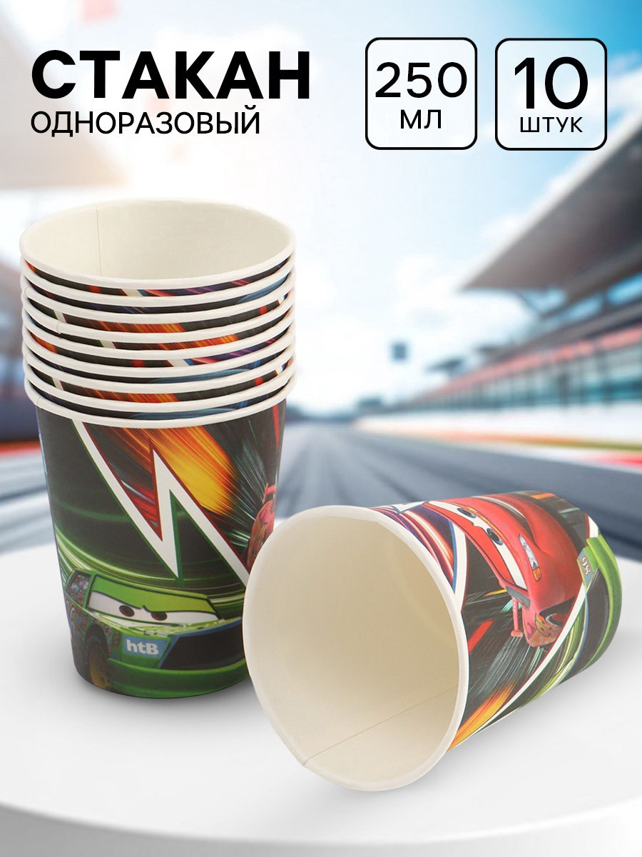Стакан одноразовый 250 мл, набор 10 шт., Тачки, 8 см., Disney, Греция