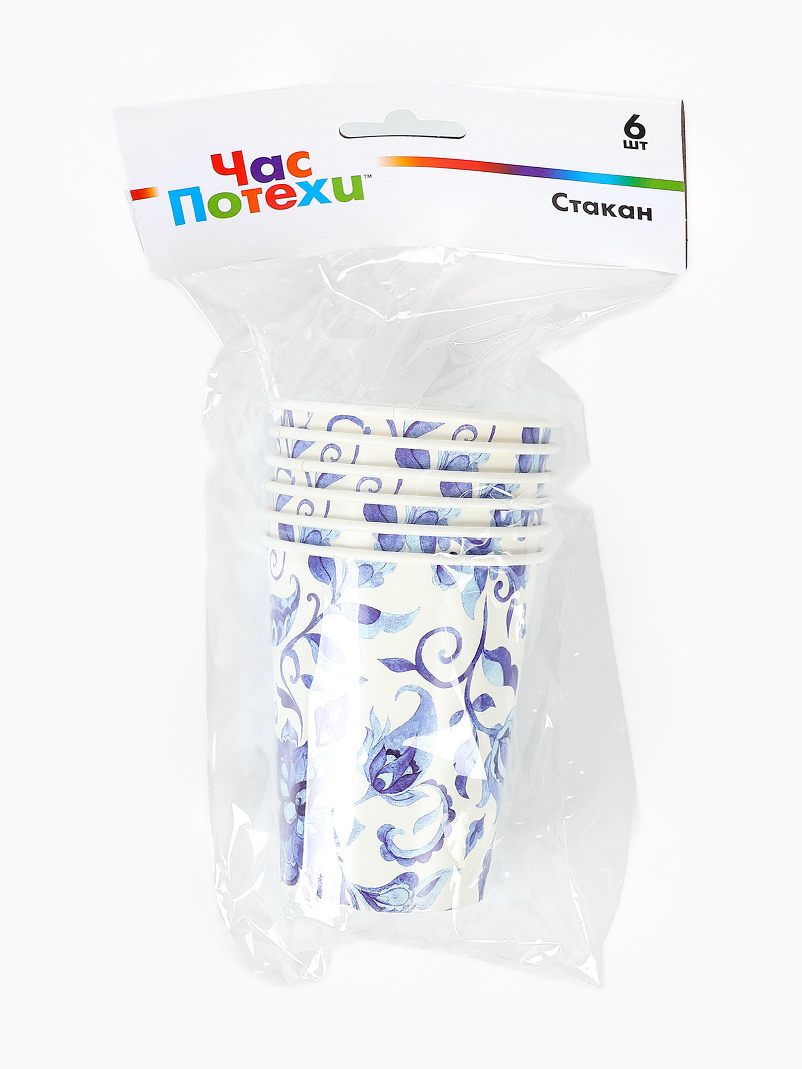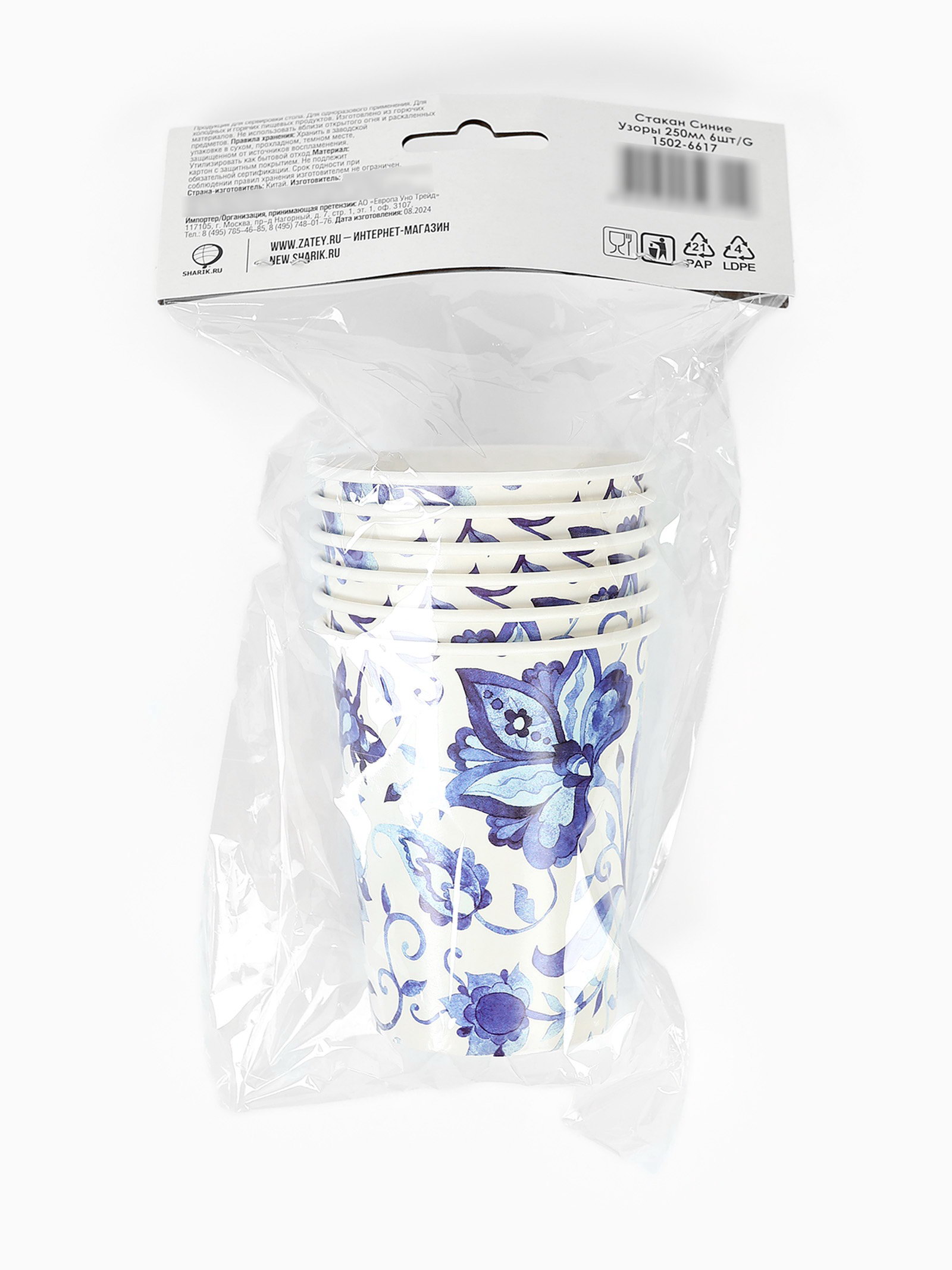 Стакан бумажный одноразовый "Синие Узоры", 250 мл 6 шт, 250 мл., Страна Карнавалия, Китай