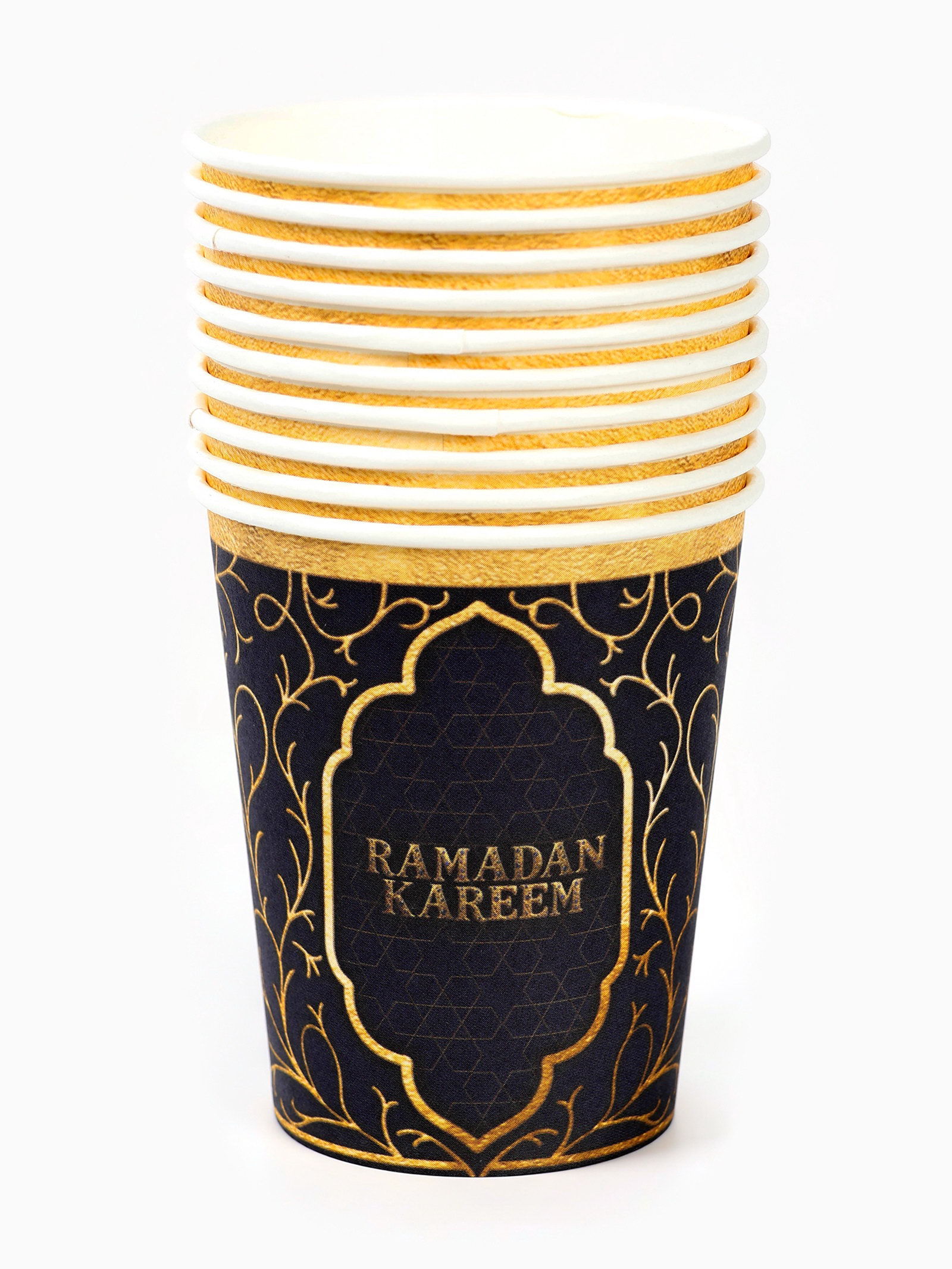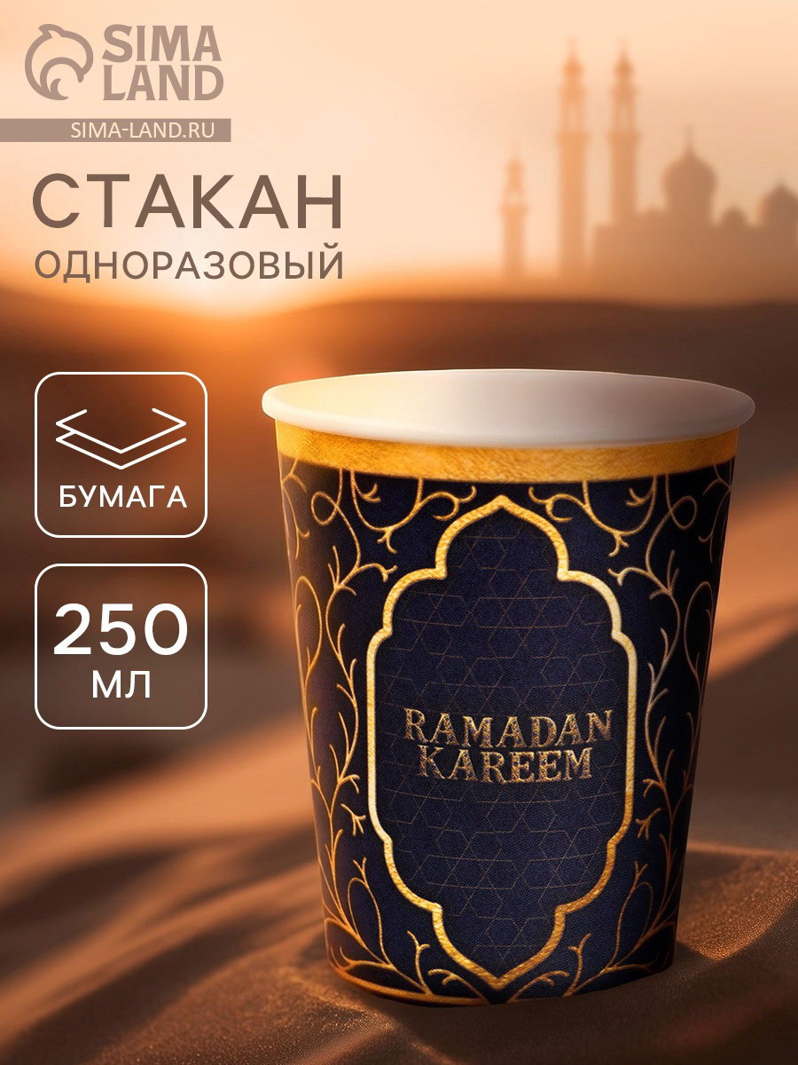 Дом Подарка › Каталог › Кухонная и столовая посуда › Одноразовая посуда › Чашки и стаканы › Стакан одноразовый бумажный "Ramadan", синий, 250 мл