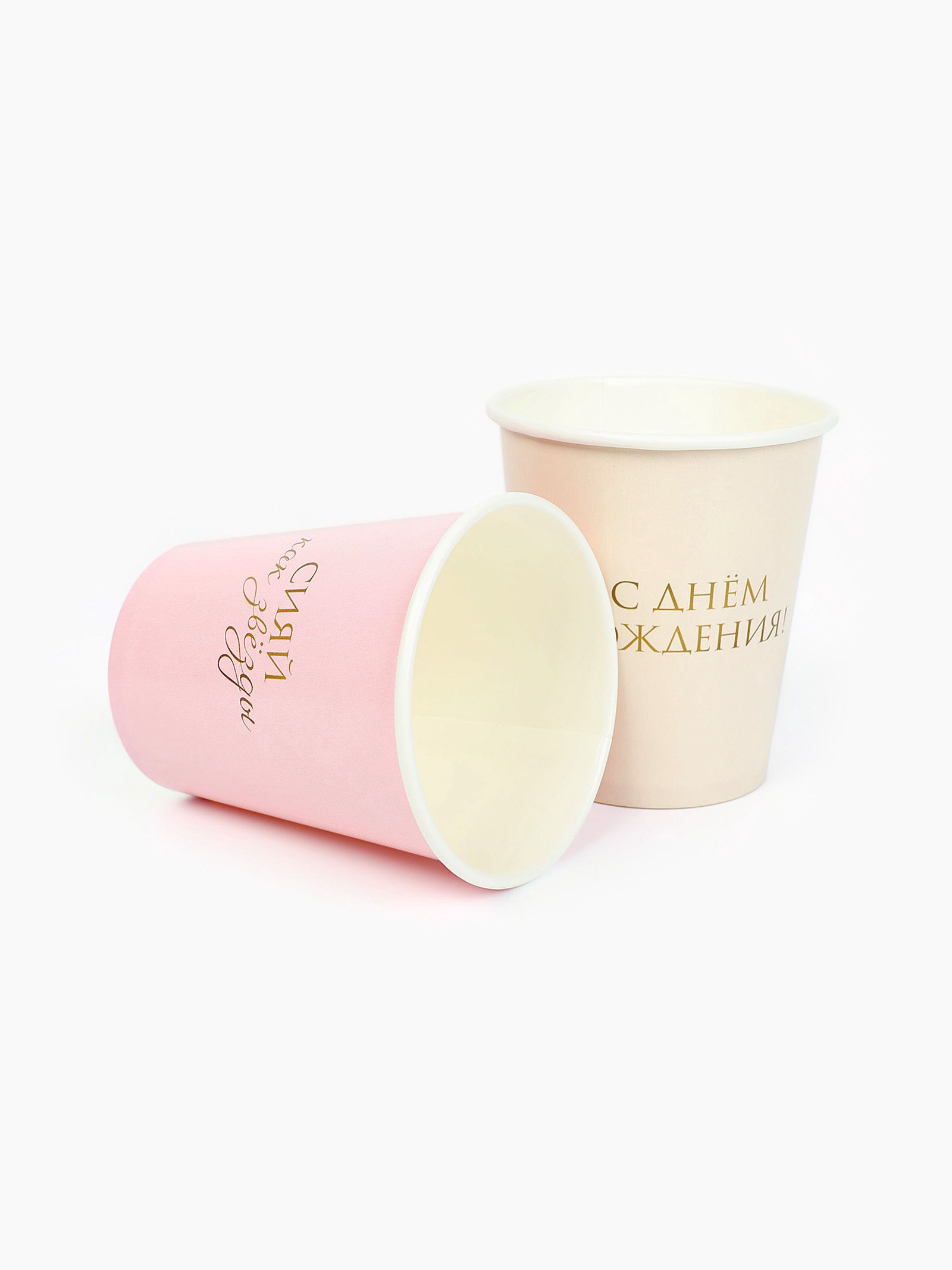 Набор стаканов бумажных "С Днём рождения" для девочки, 6 шт., 250 мл., Россия