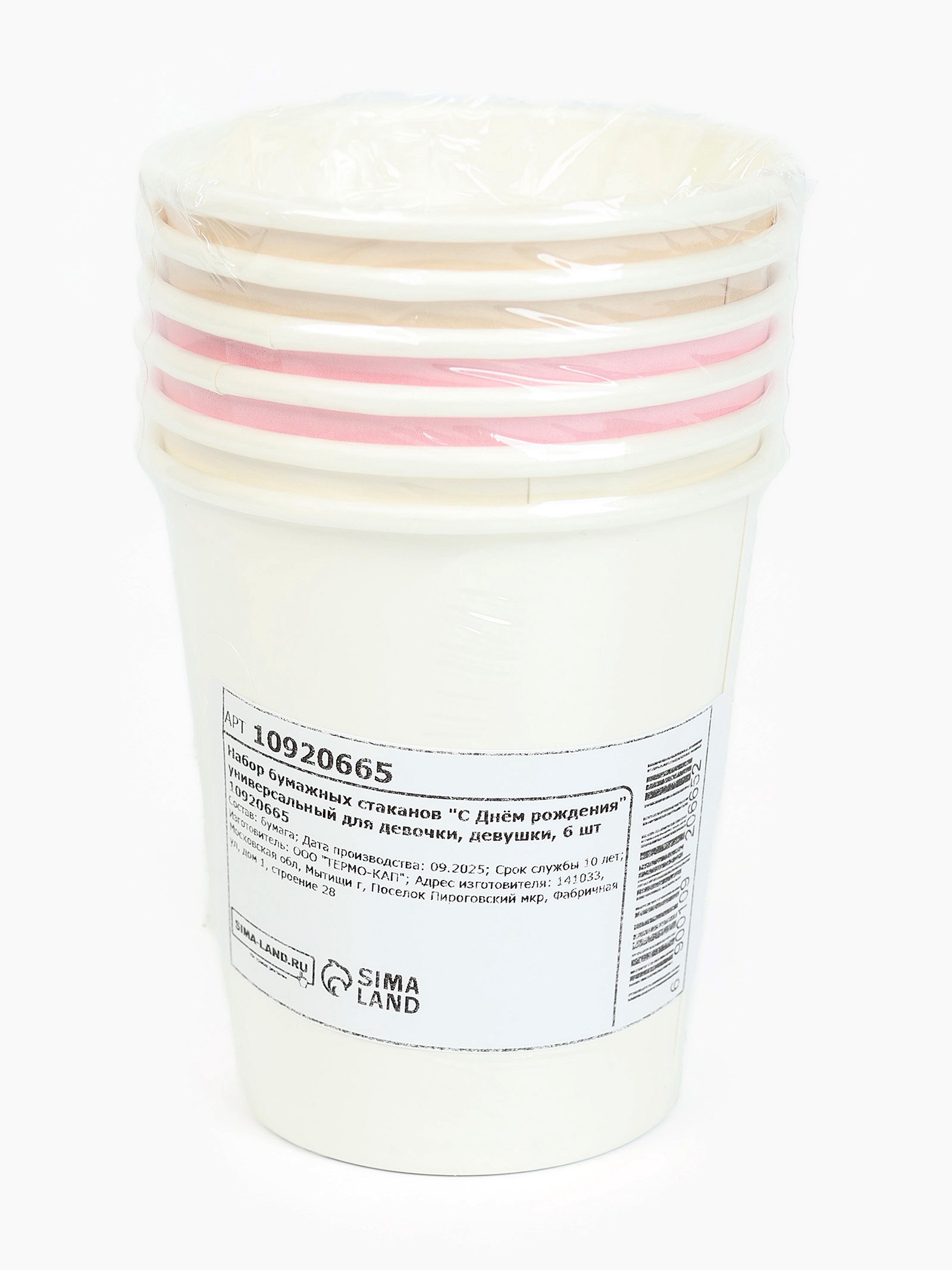 Размер упаковки: 8 x 8 x 12 см. tnved: 4823699000 В наборе, шт.: 6 Набор: Да Рисунок: Да Цвет: Разноцветный Фасовка, шт.: 6 Вид: Стакан Тематика праздника: День рождения | ||