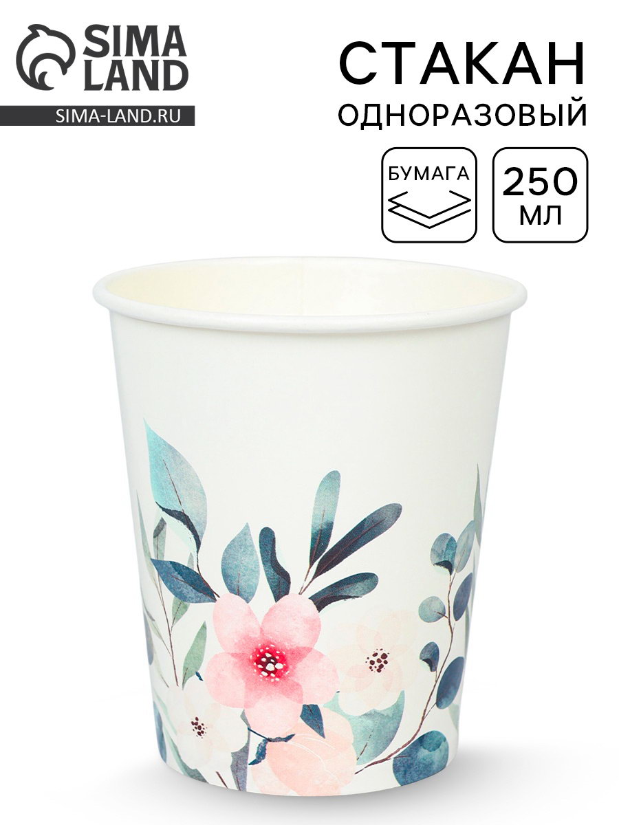 Стакан одноразовый бумажный "Цветы", 250 мл, 250 мл., Россия