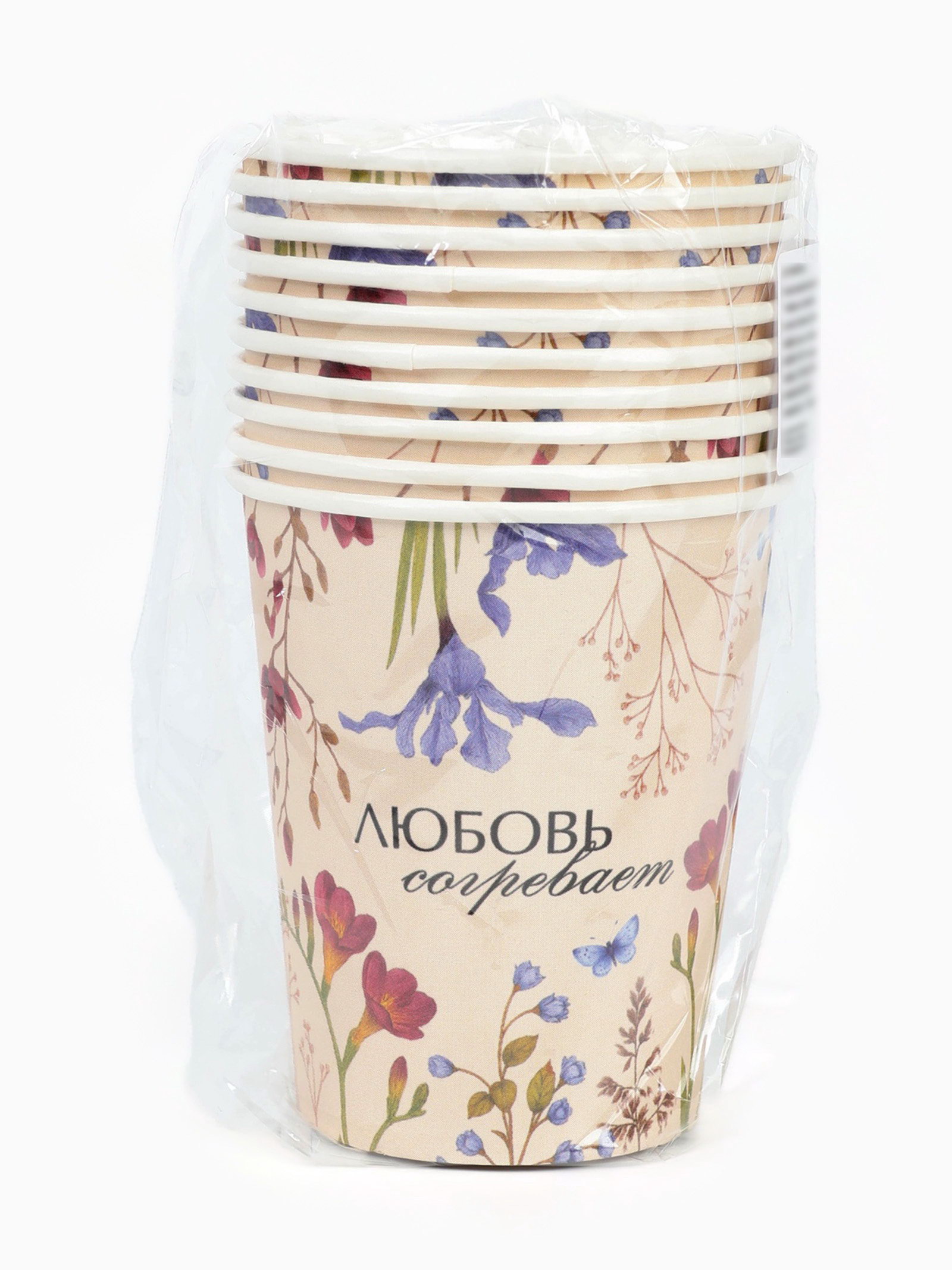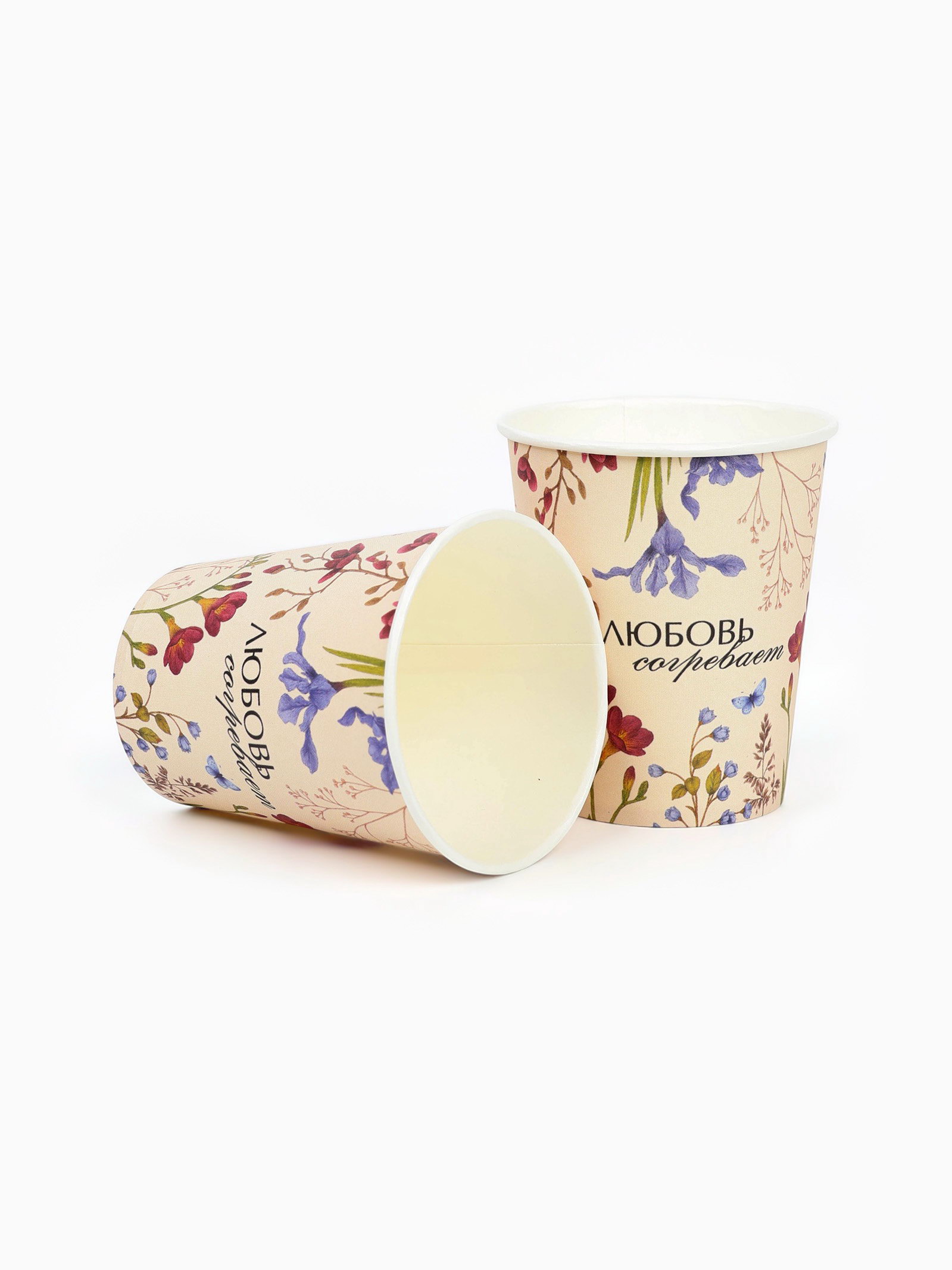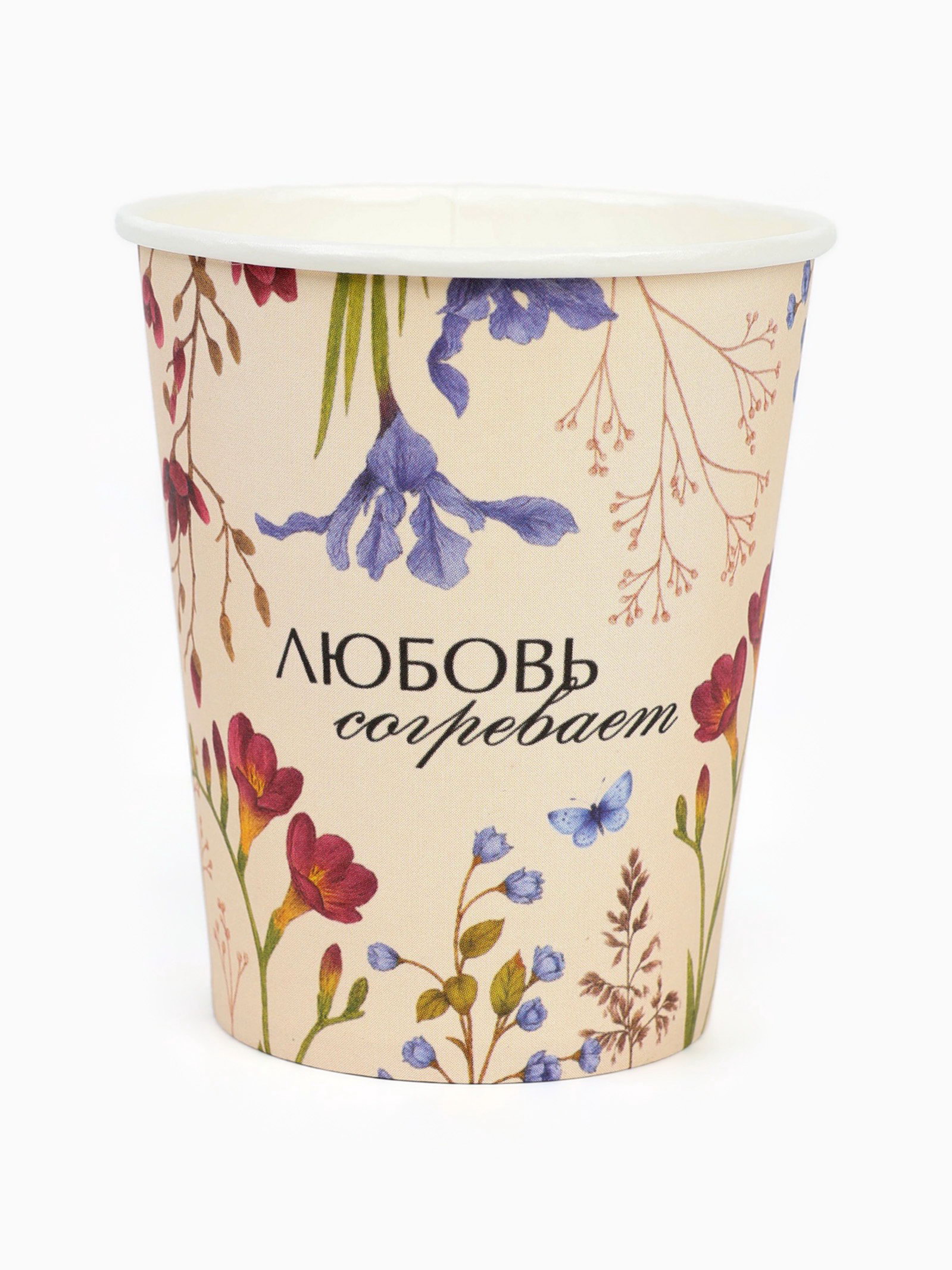 Стакан одноразовый бумажный "Любовь согревает", цветы, 250 мл, 8 см., Страна Карнавалия, Россия