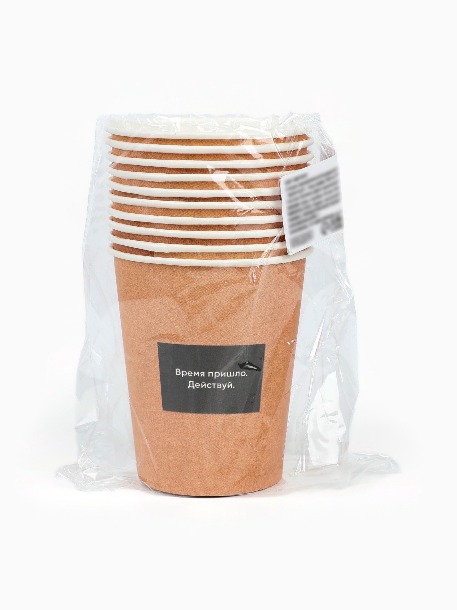 Стакан одноразовый бумажный "Действуй", под крафт, 250 мл, 8 см., Страна Карнавалия, Россия