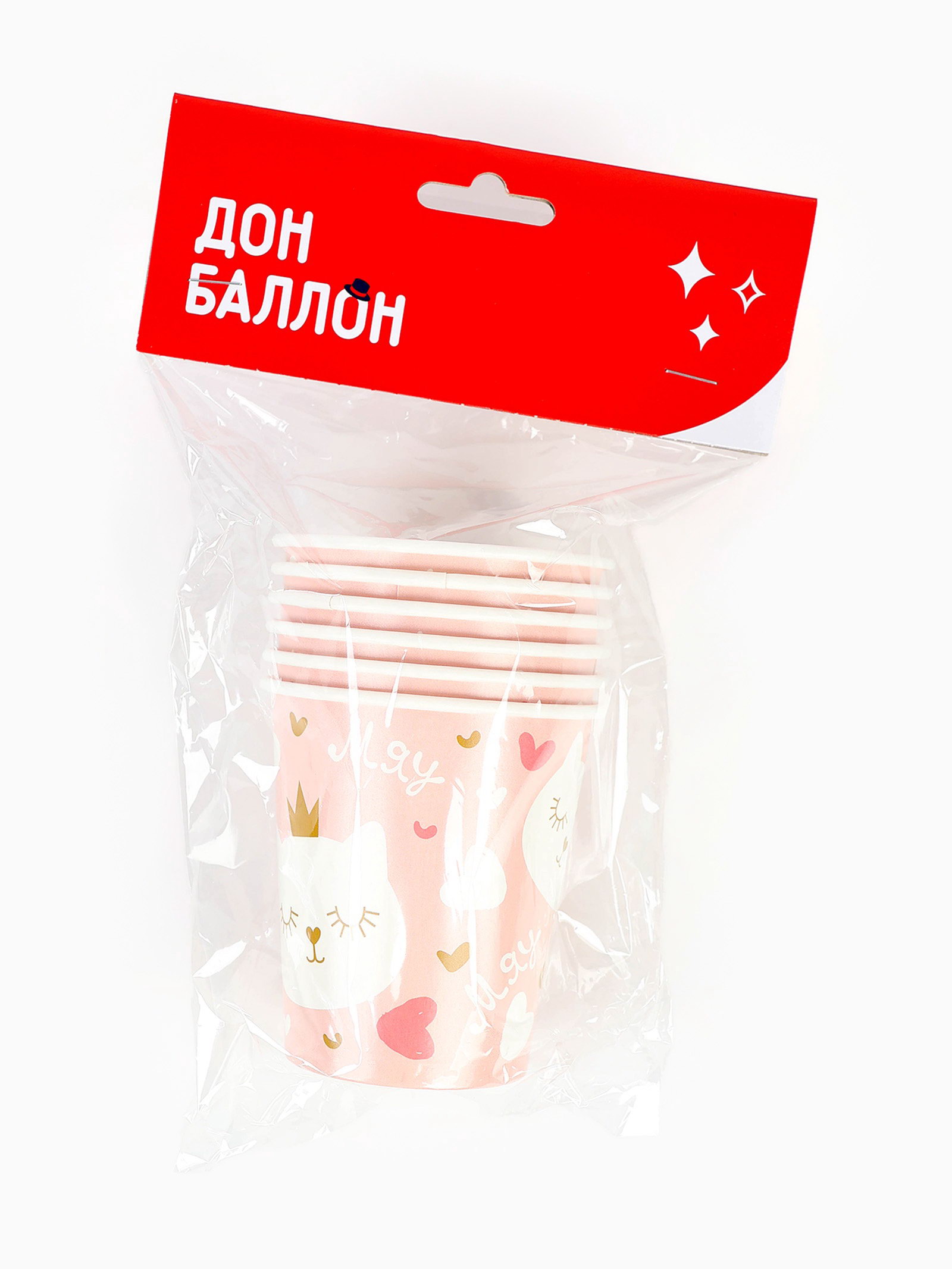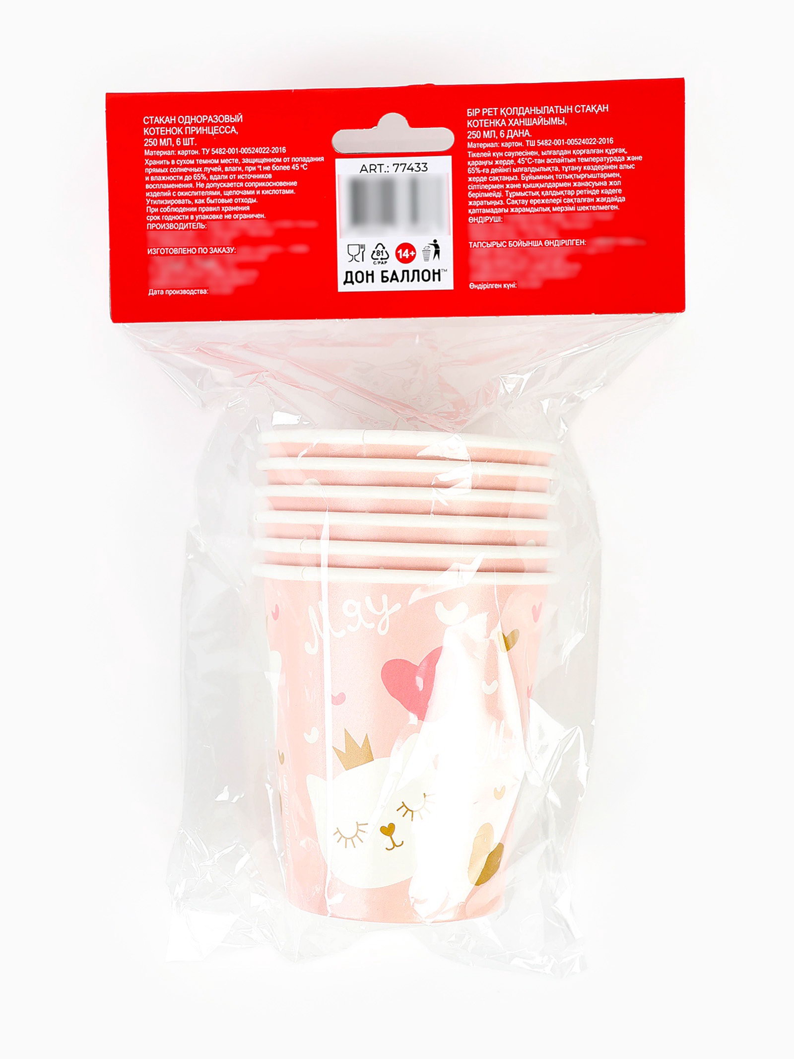 Стакан одноразовый бумажный "Котенок Принцесса", 250 мл, 6 шт., 8 см., Россия