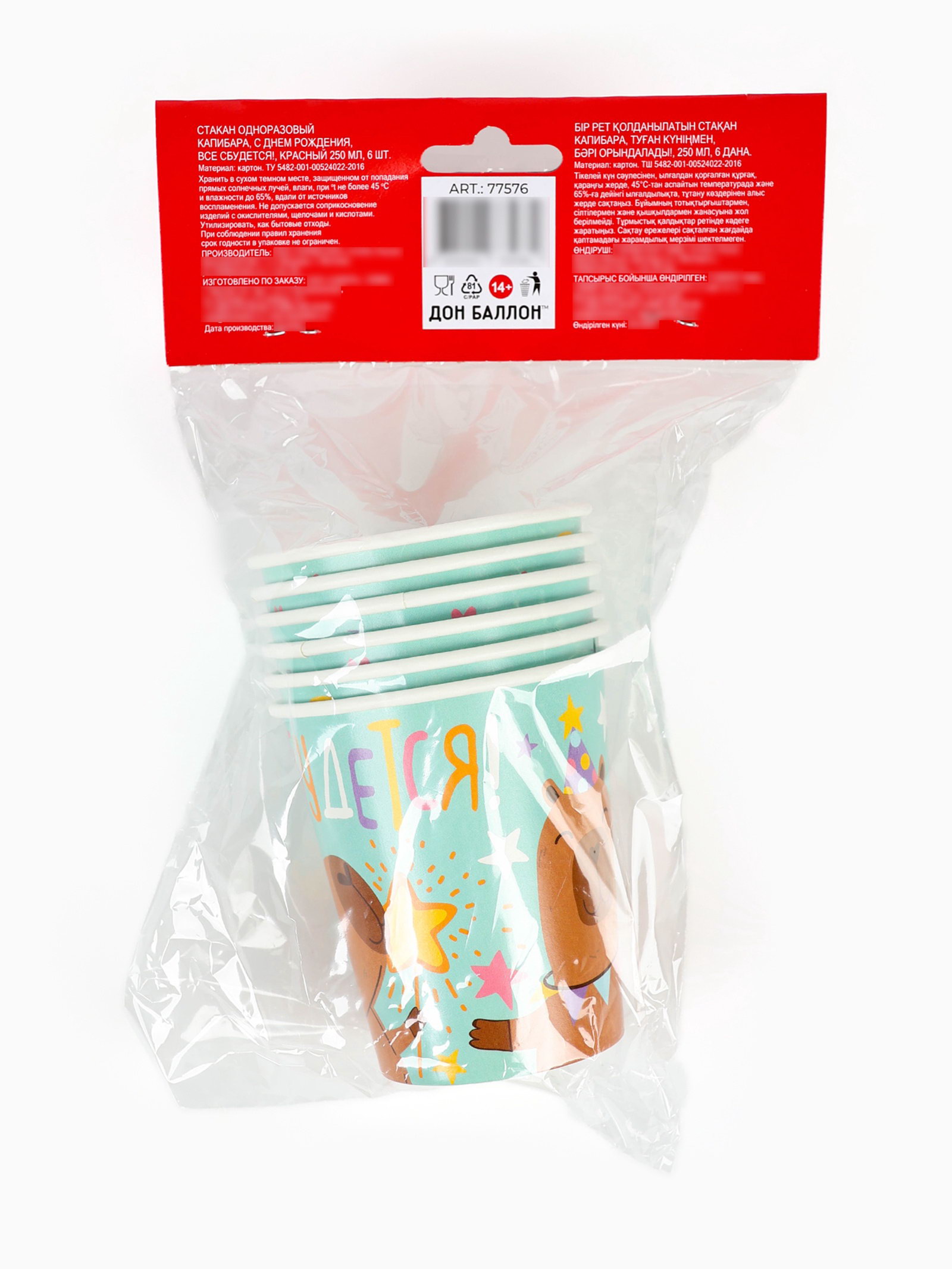 Стакан одноразовый бумажный "СДР, Все Сбудется!", 250 мл, 6 шт, 8 см., Россия