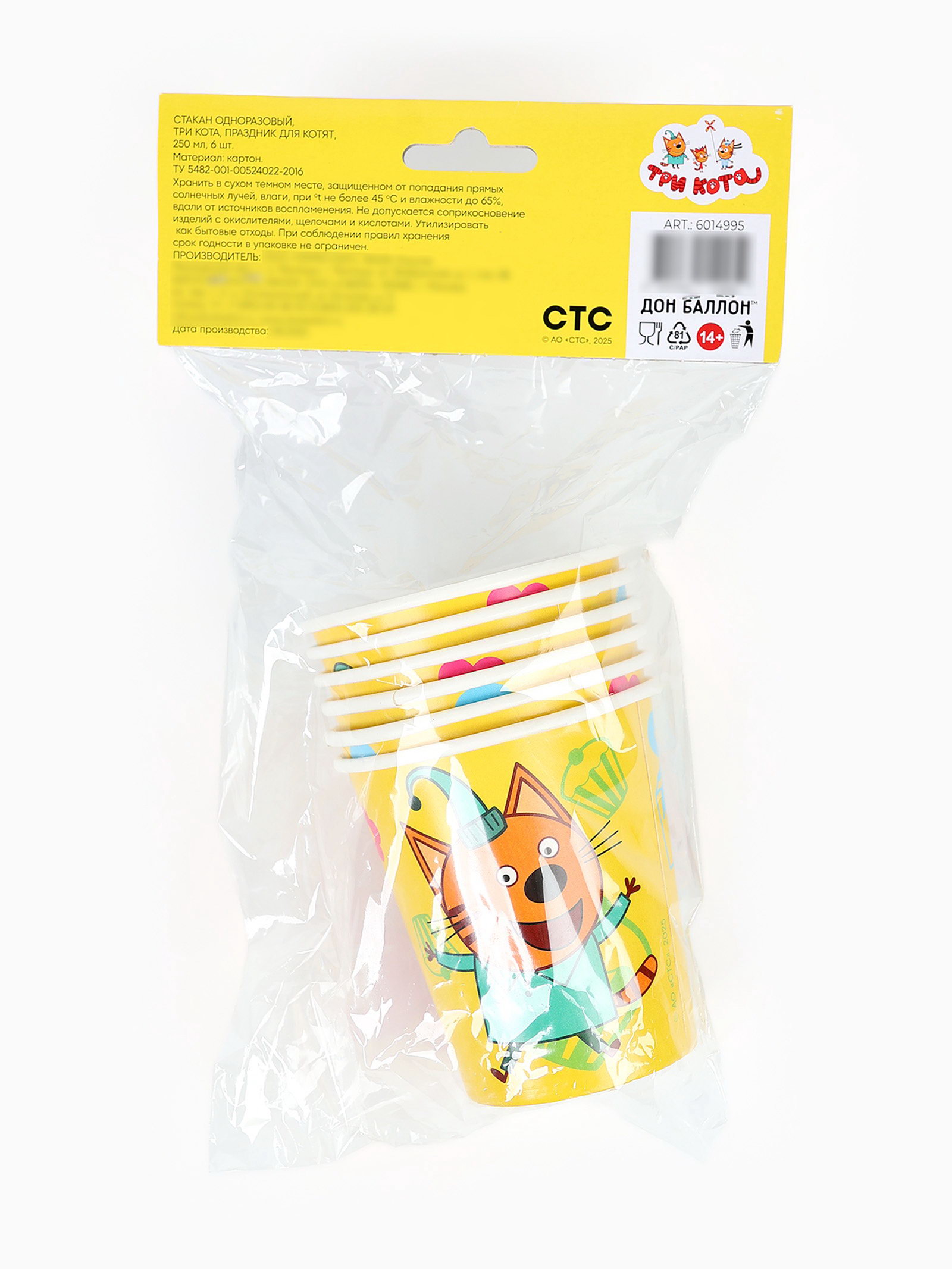 Стаканы "Три Кота. Праздник для котят" 6 шт., 8 см., Дон Баллон, Россия