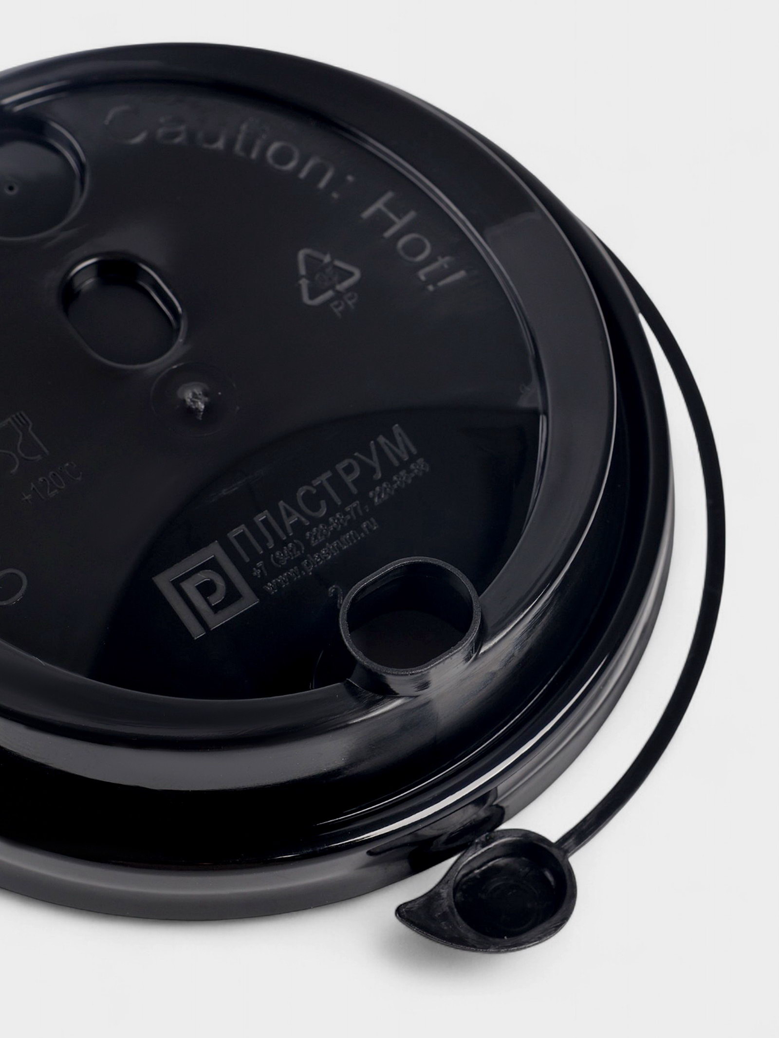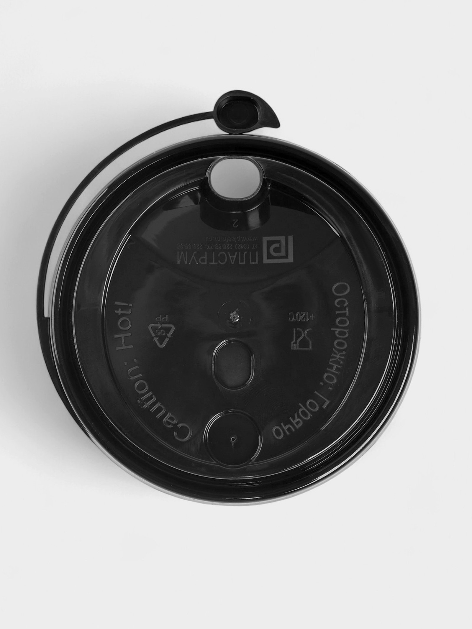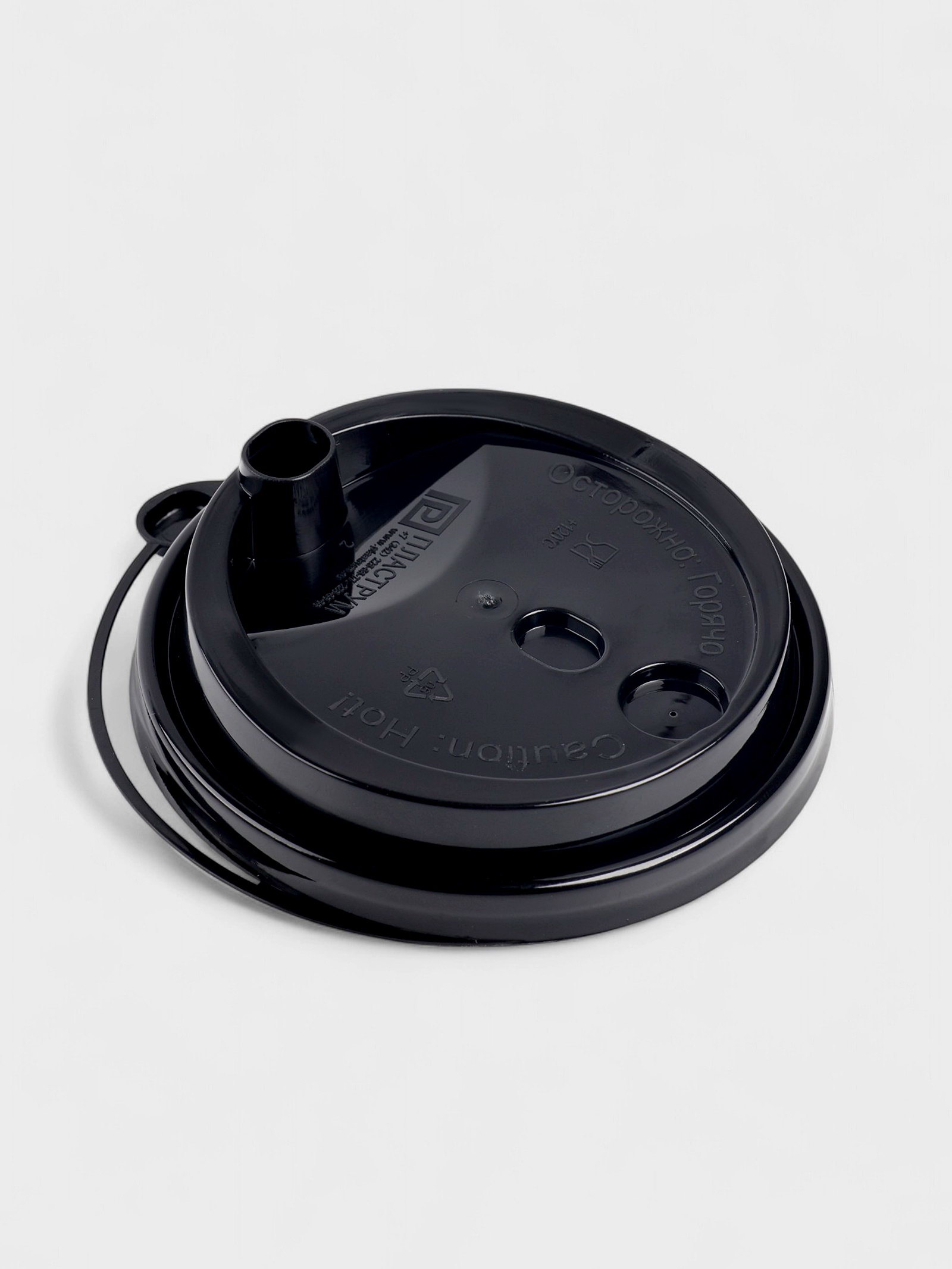 Крышка одноразовая для стакана "Чёрная" с клапаном, глянец 90 мм, 9 см., TAKE IT EASY, Россия