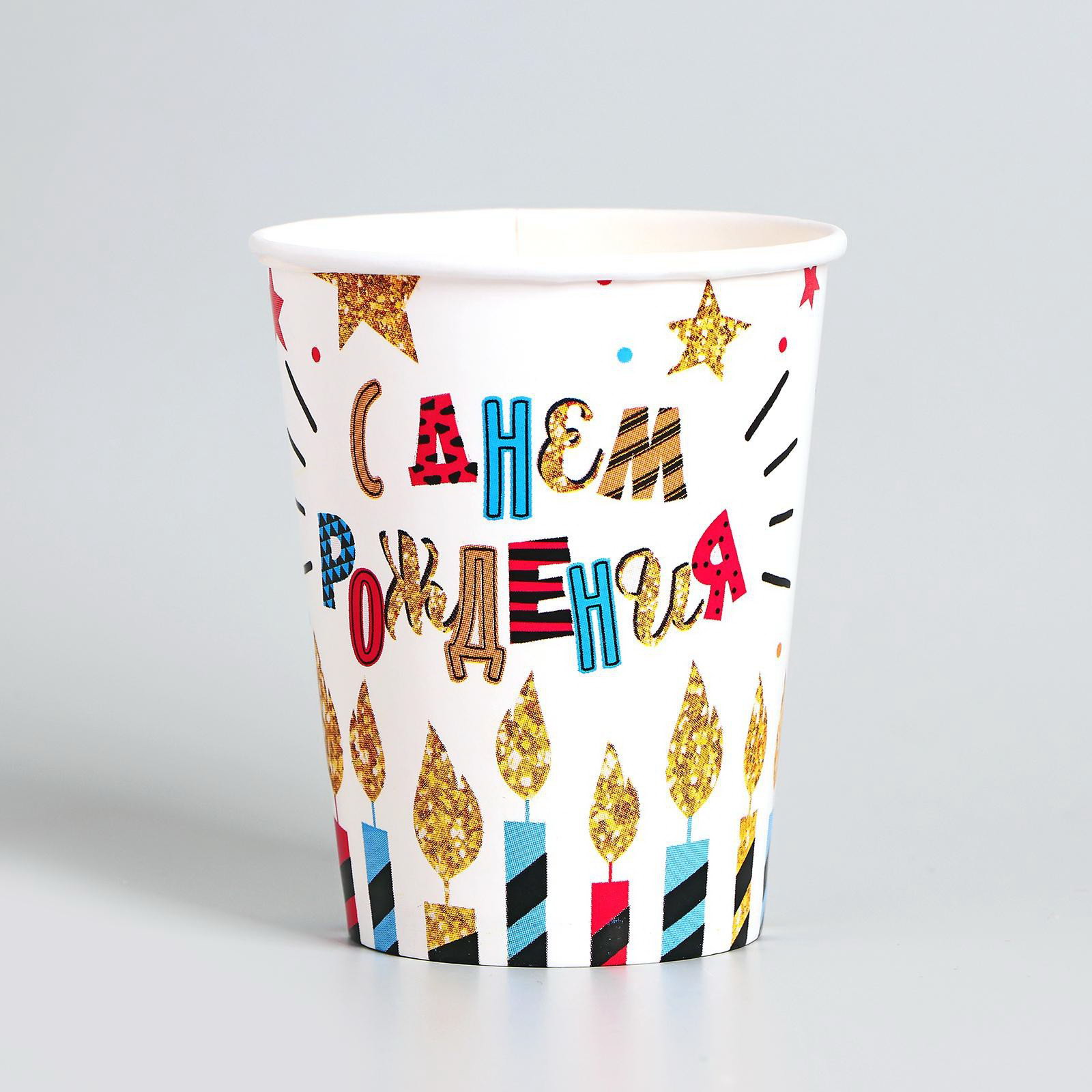 Посуда одноразовая бумажная "С днём рождения", на 6 персон, 12 предметов, Страна Карнавалия, Россия