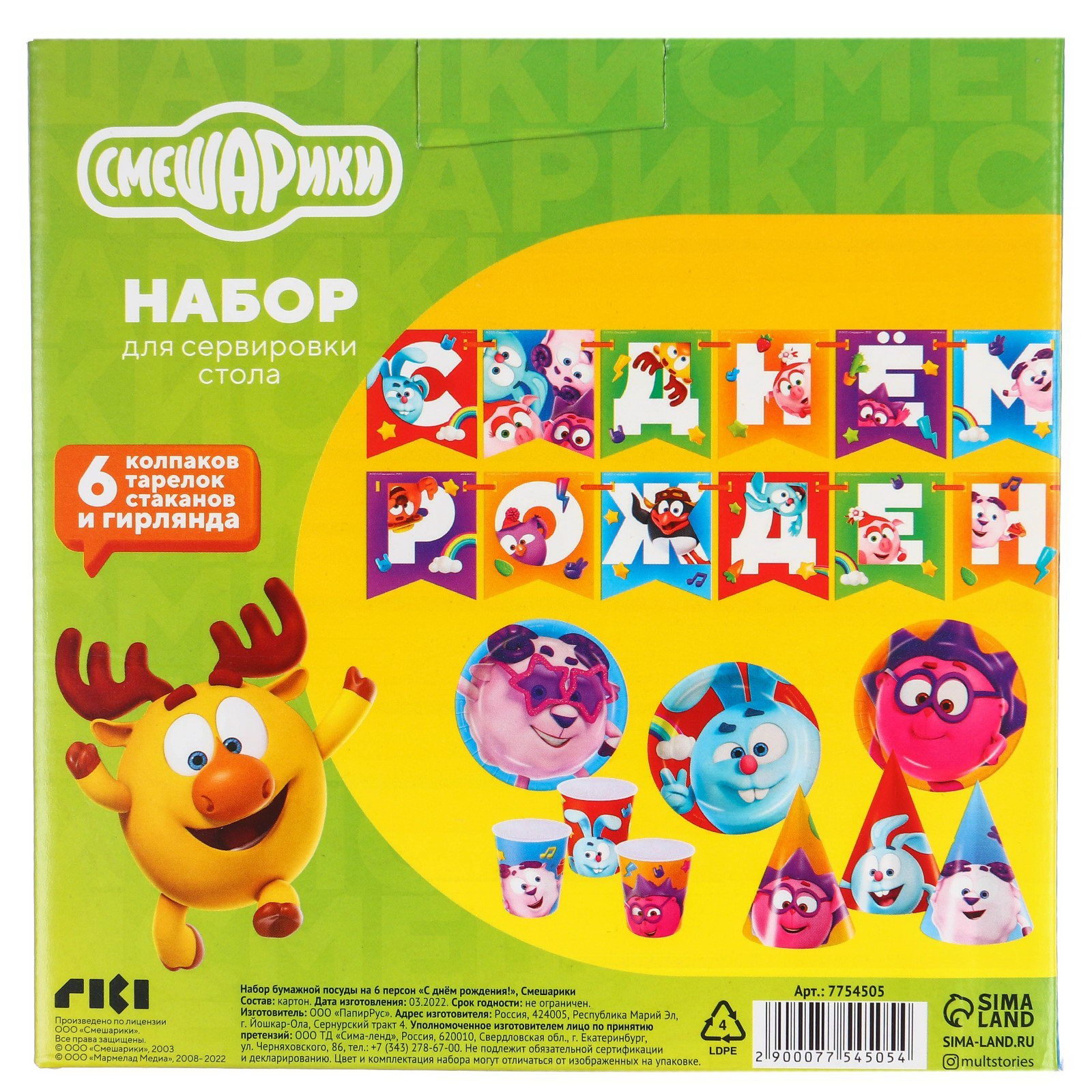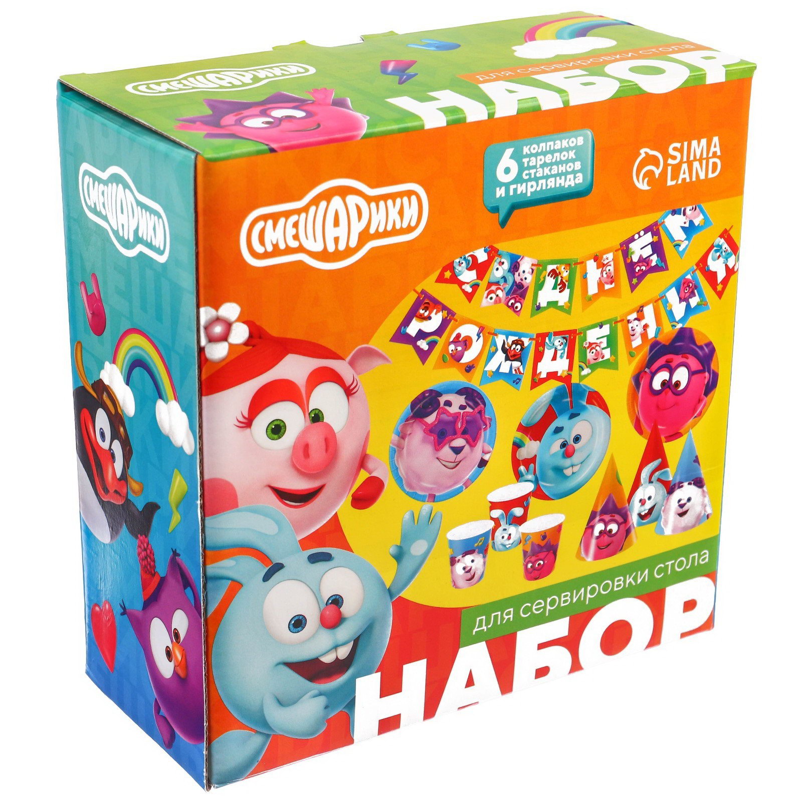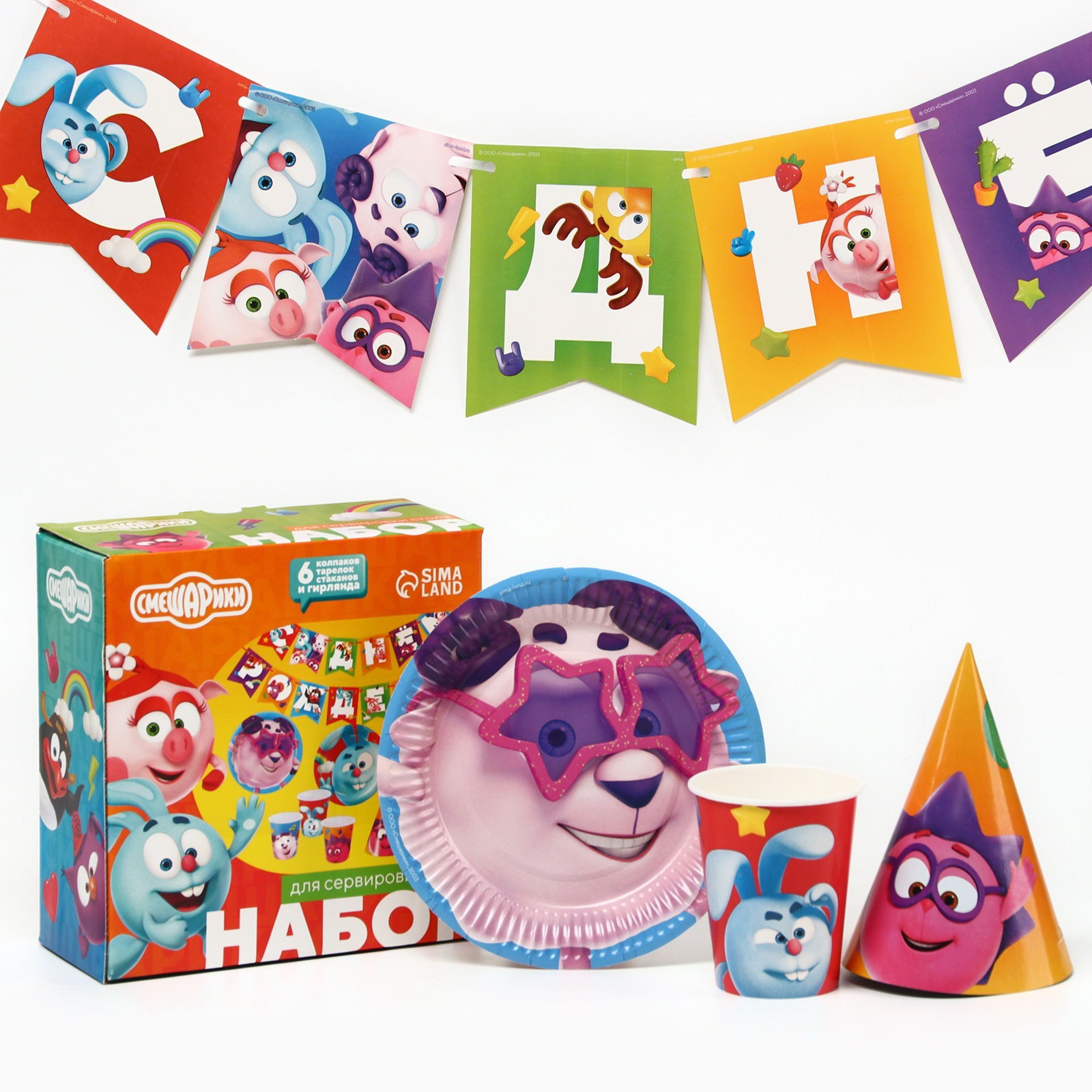 Набор бумажной посуды, на 6 персон"С днем рождения!", Смешарики, Россия