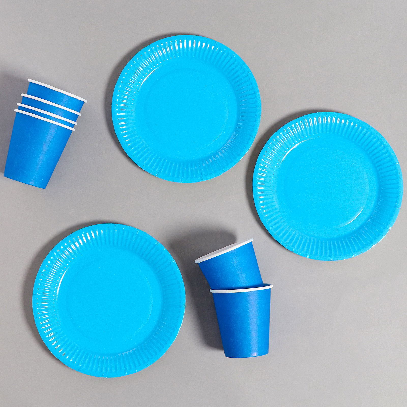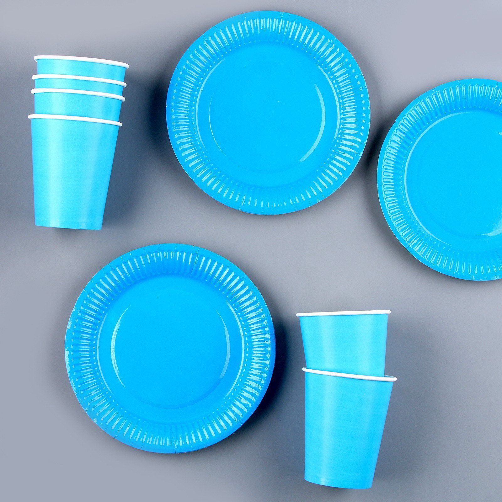 Одноразовая посуда, набор: 6 тарелок, 6 стаканов, голубая, Страна Карнавалия, Россия