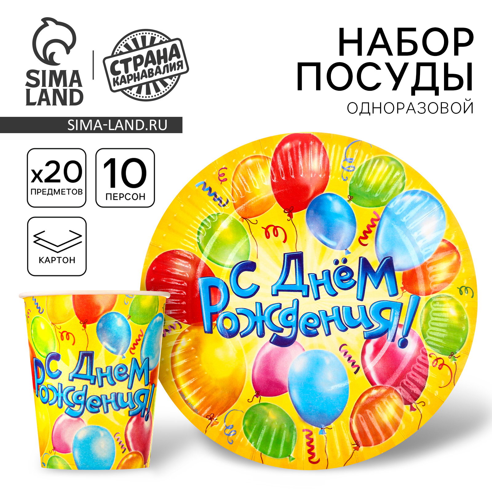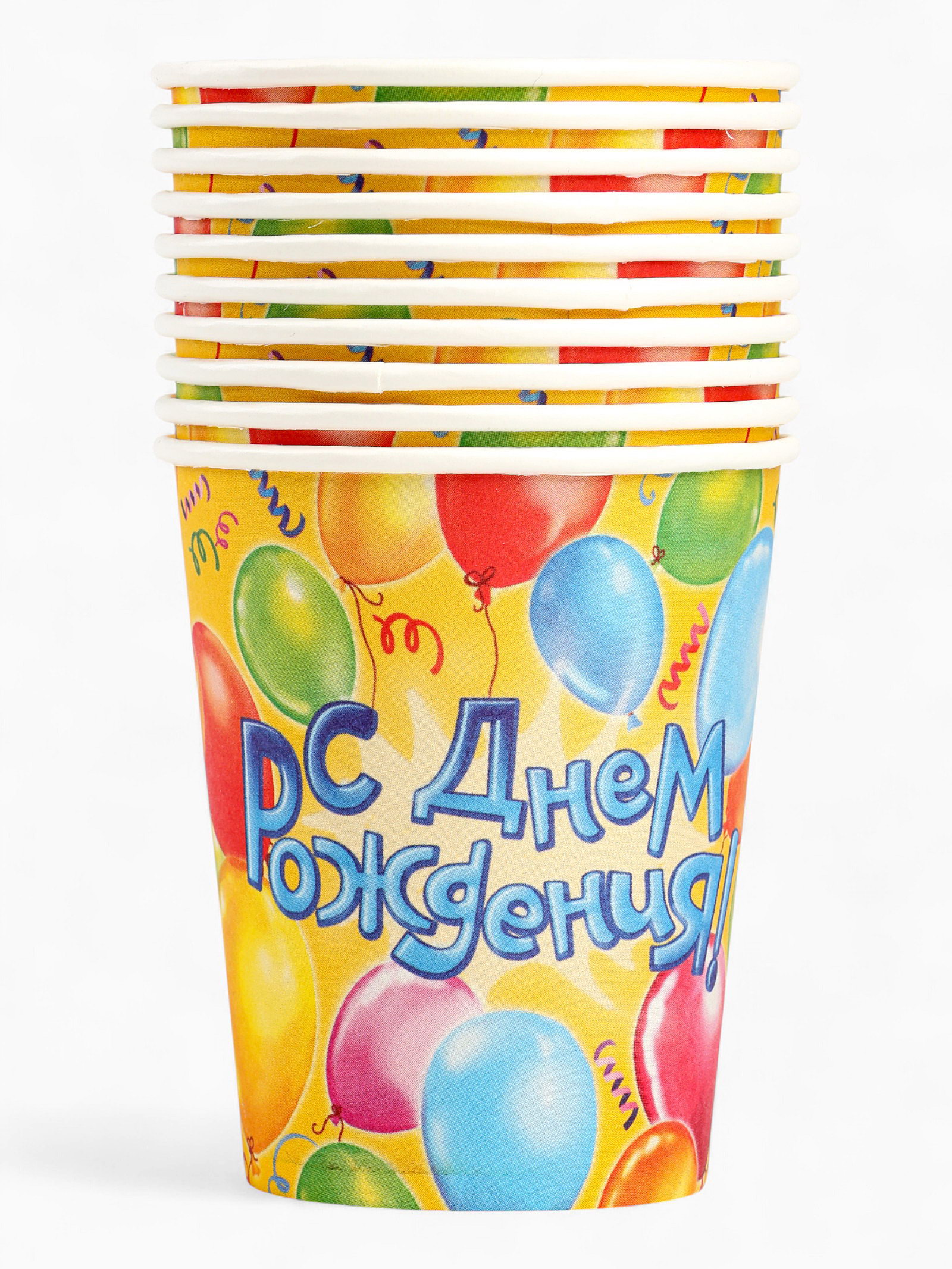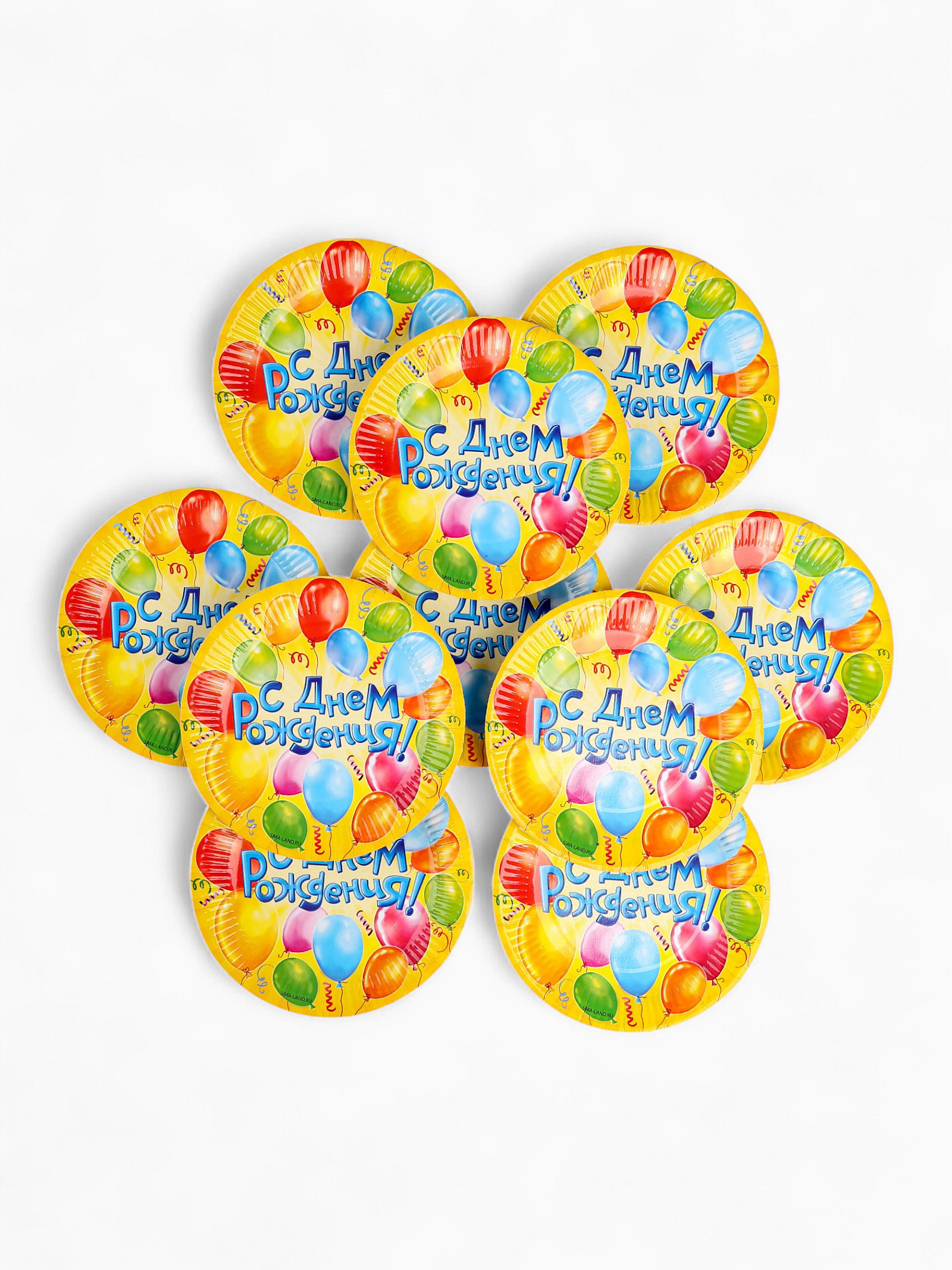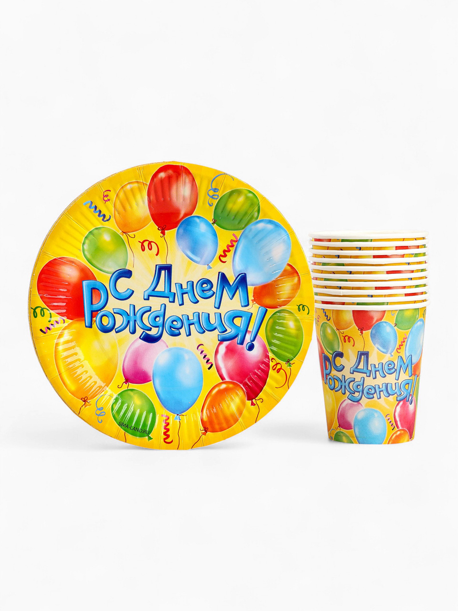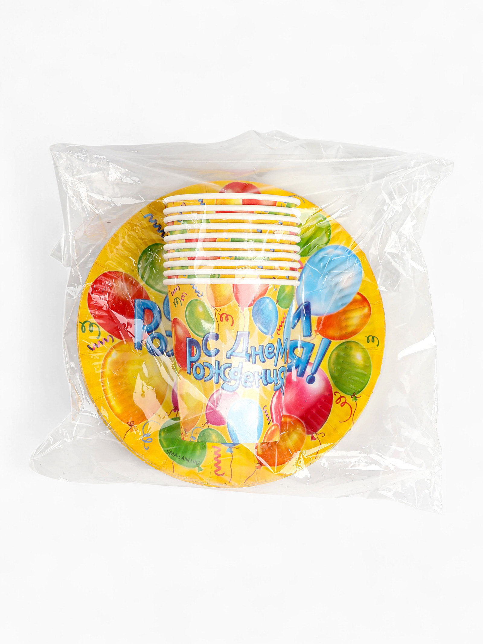 Набор бумажной посуды одноразовый "Воздушные шары", 10 стаканов, 10 тарелок, Страна Карнавалия, Россия