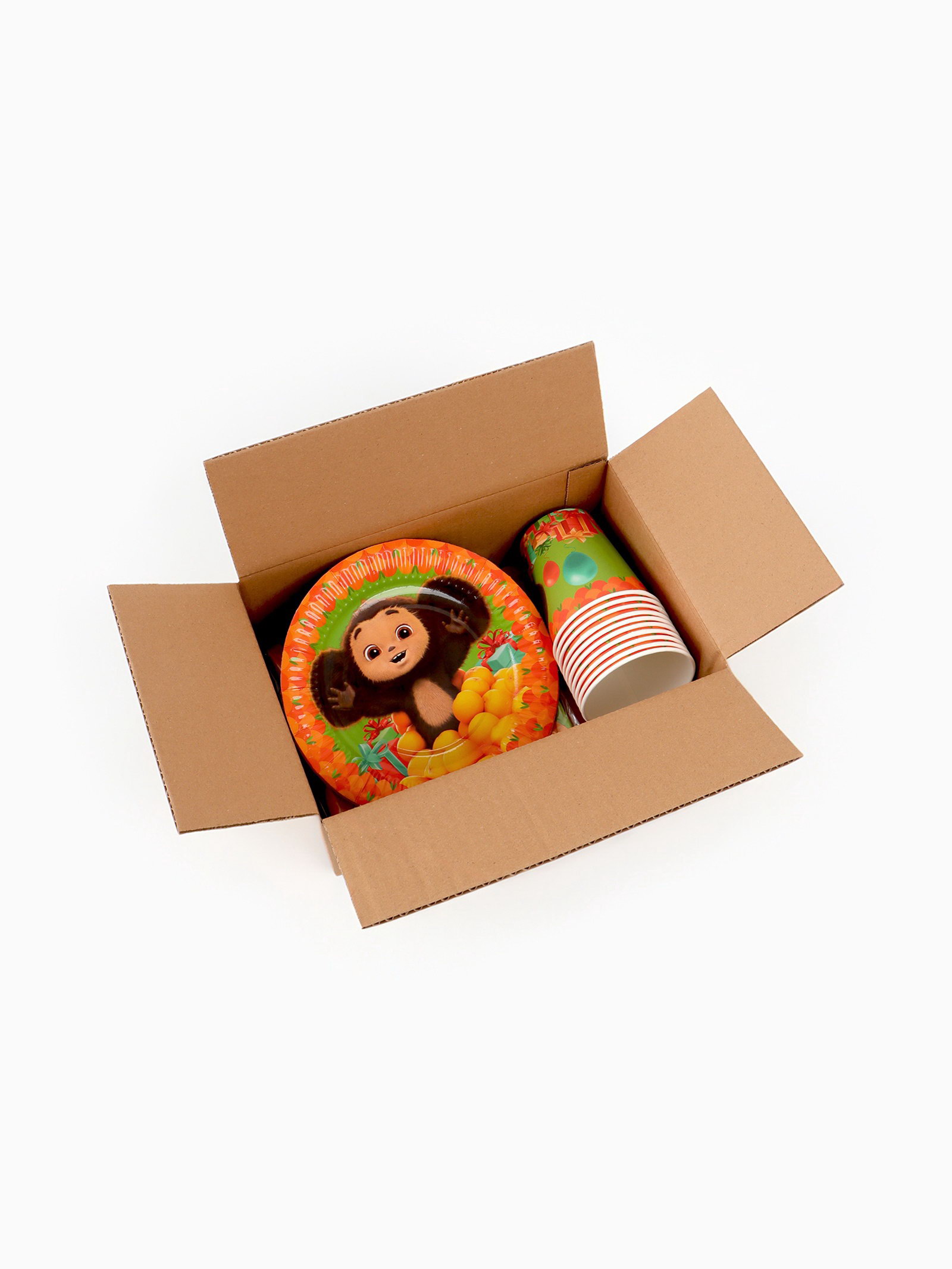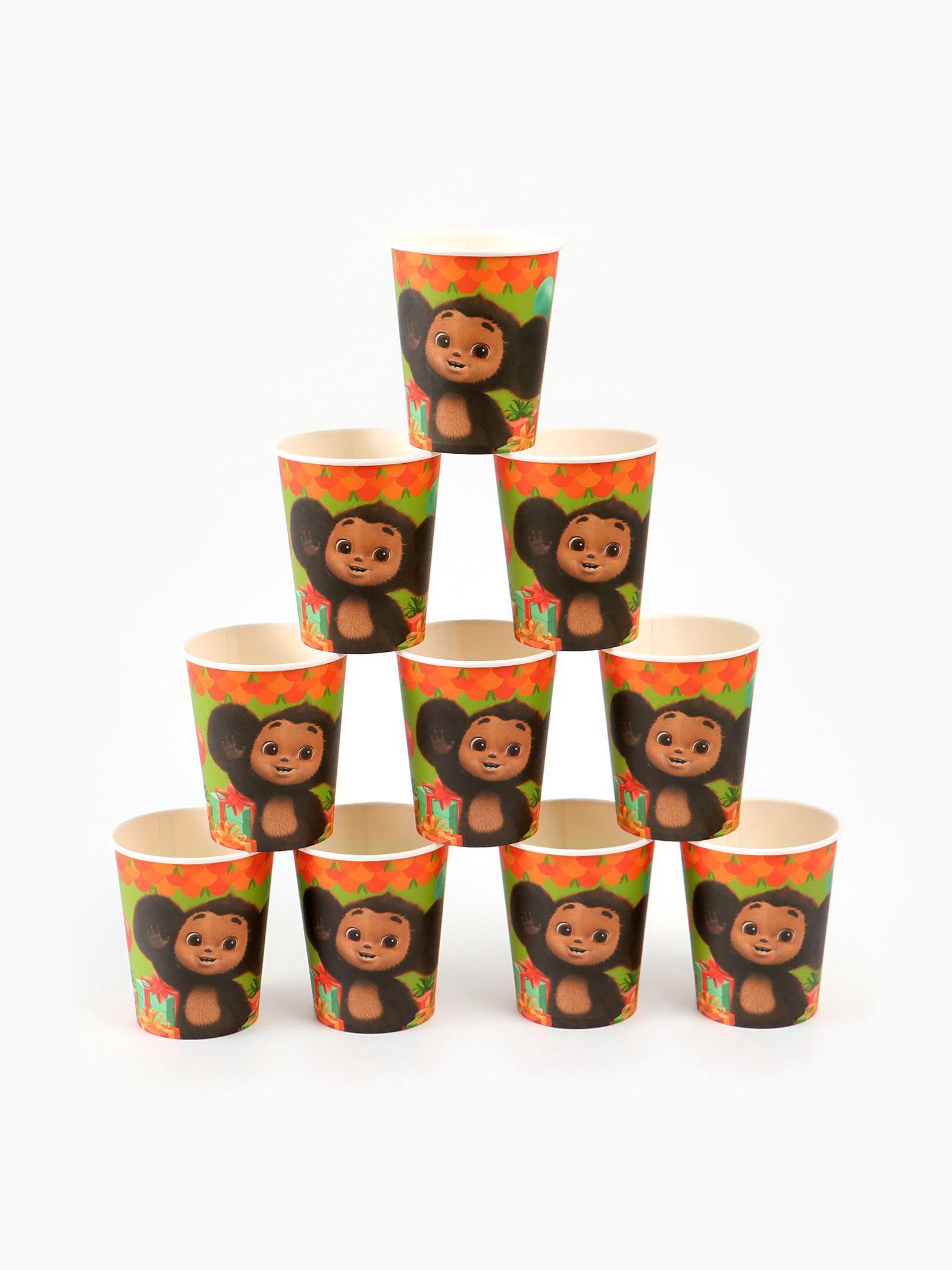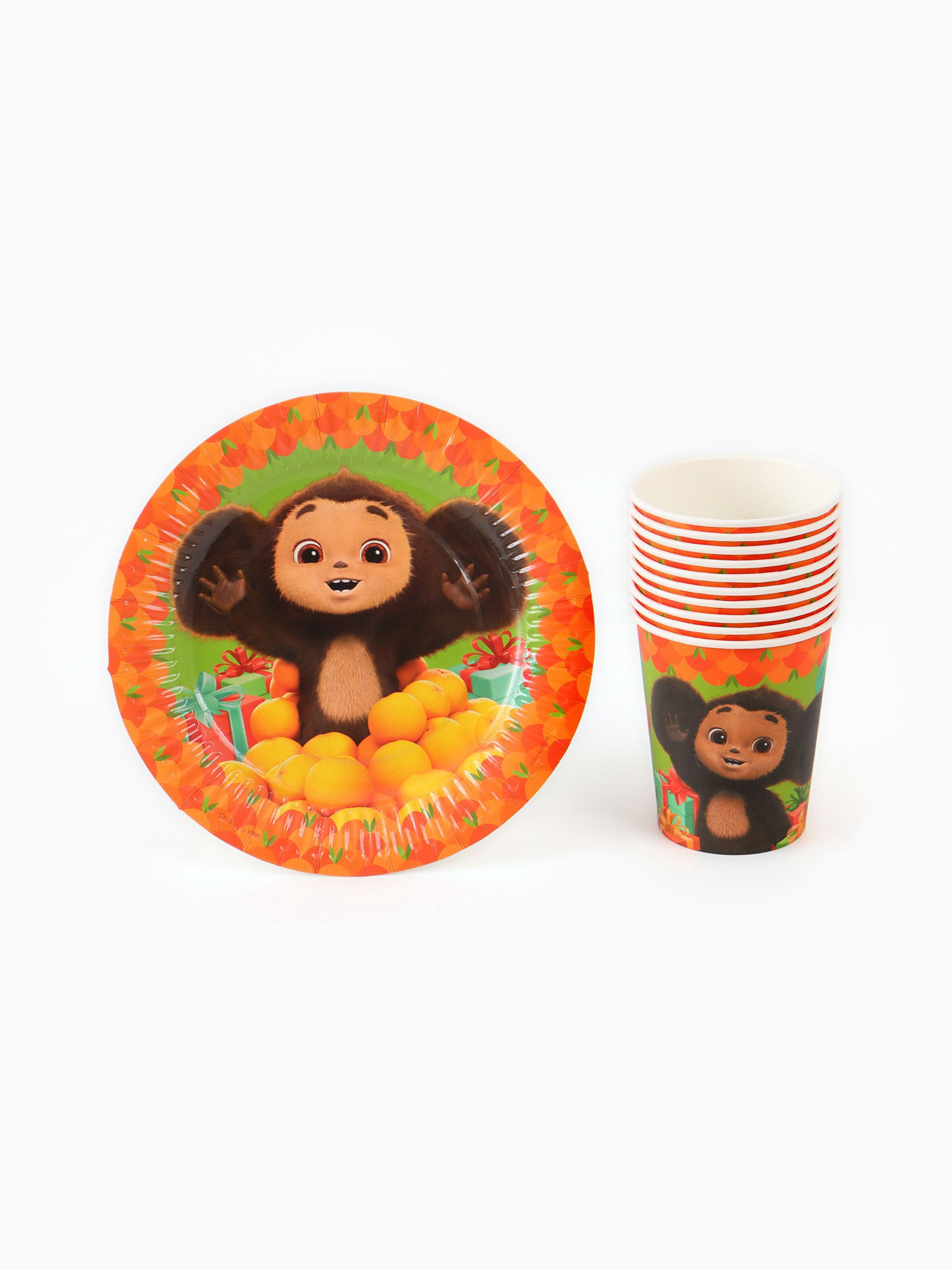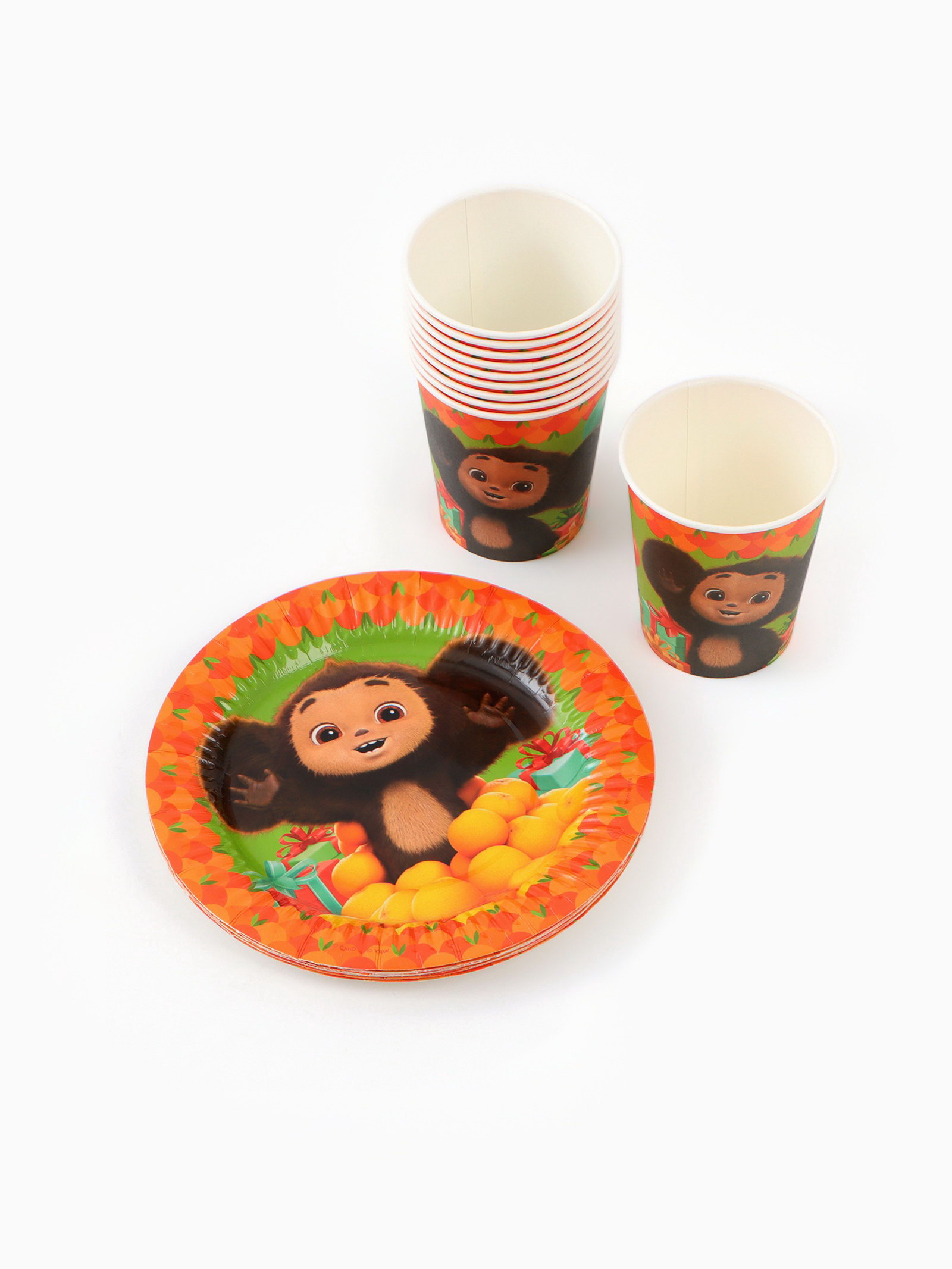 Посуда одноразовая бумажная для праздника, на 10 персон, стакан, тарелка, скатерть, Чебурашка, ЧЕБУРАШКА, Китай