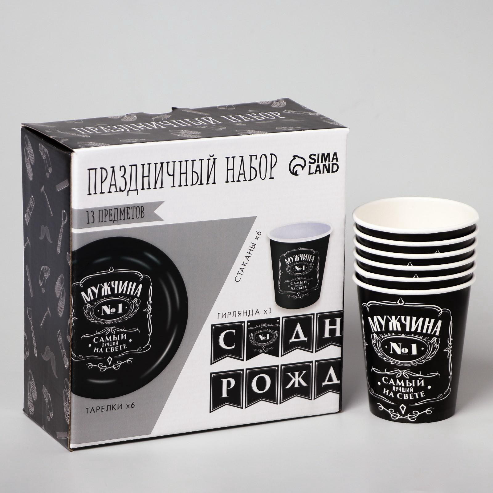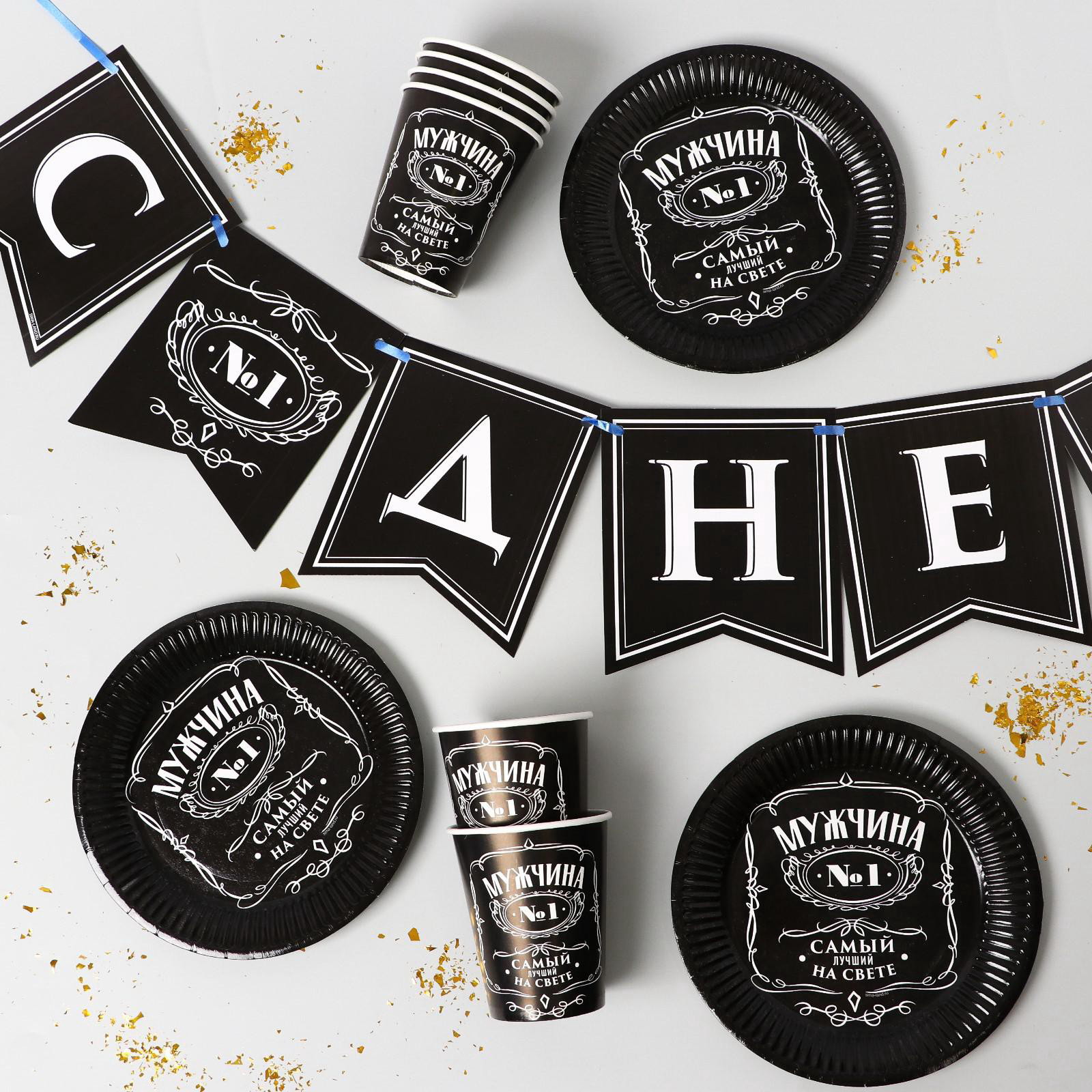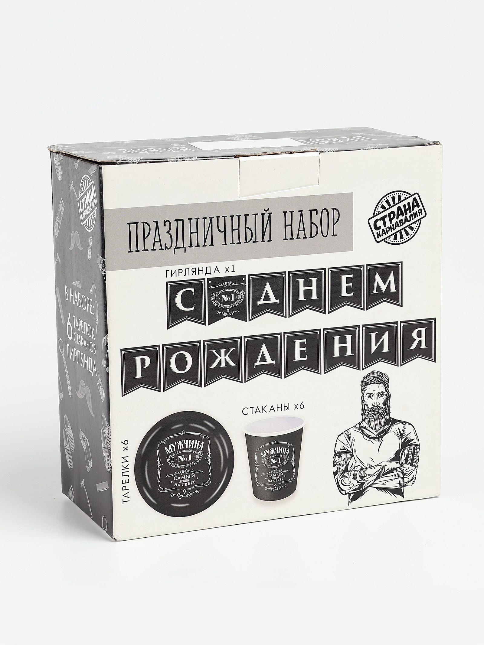 УЦЕНКА Набор бумажной посуды "Настоящий мужчина": 6 тарелок, 6 стаканов, 1 гирлянда, Страна Карнавалия, Россия