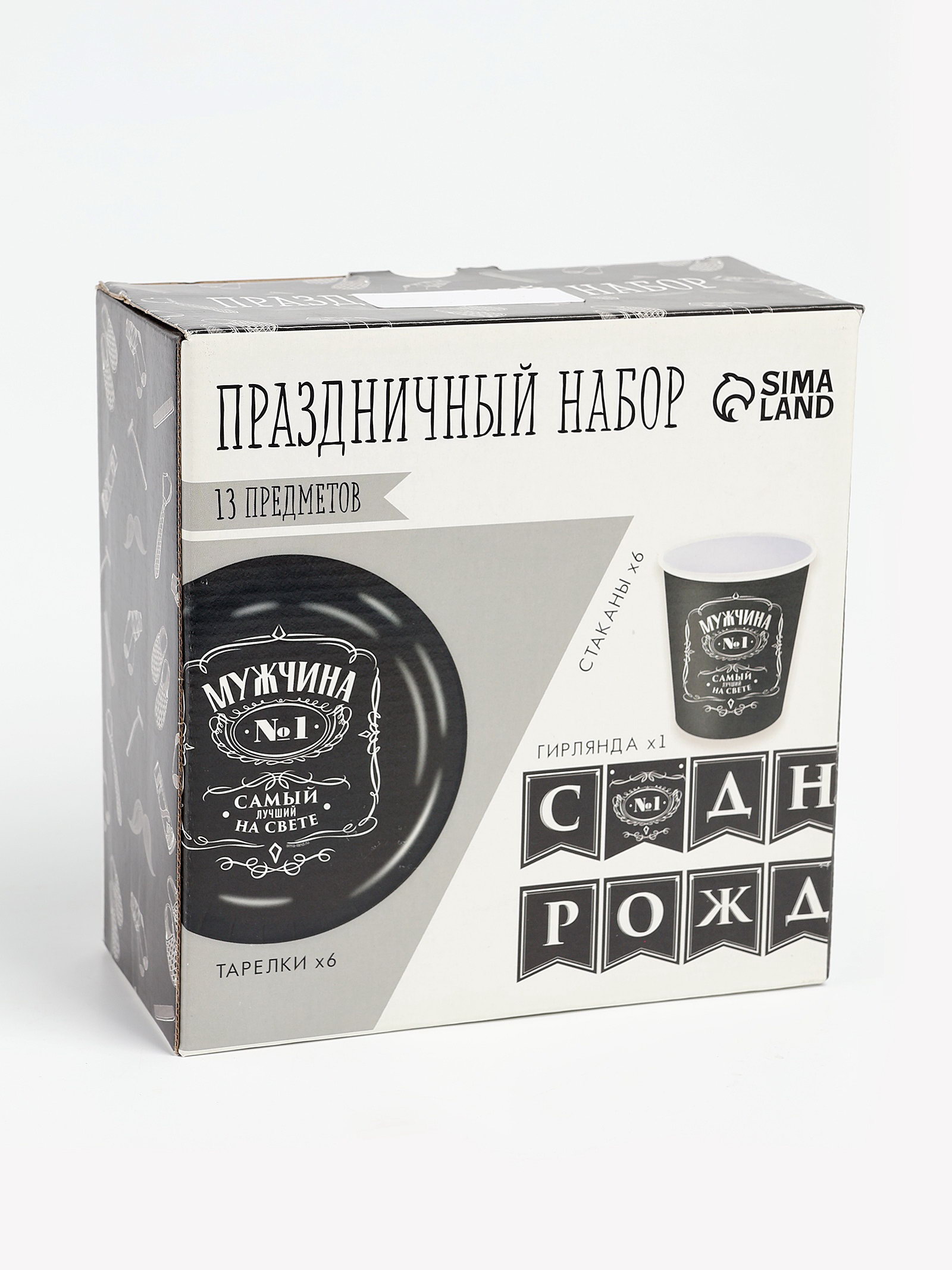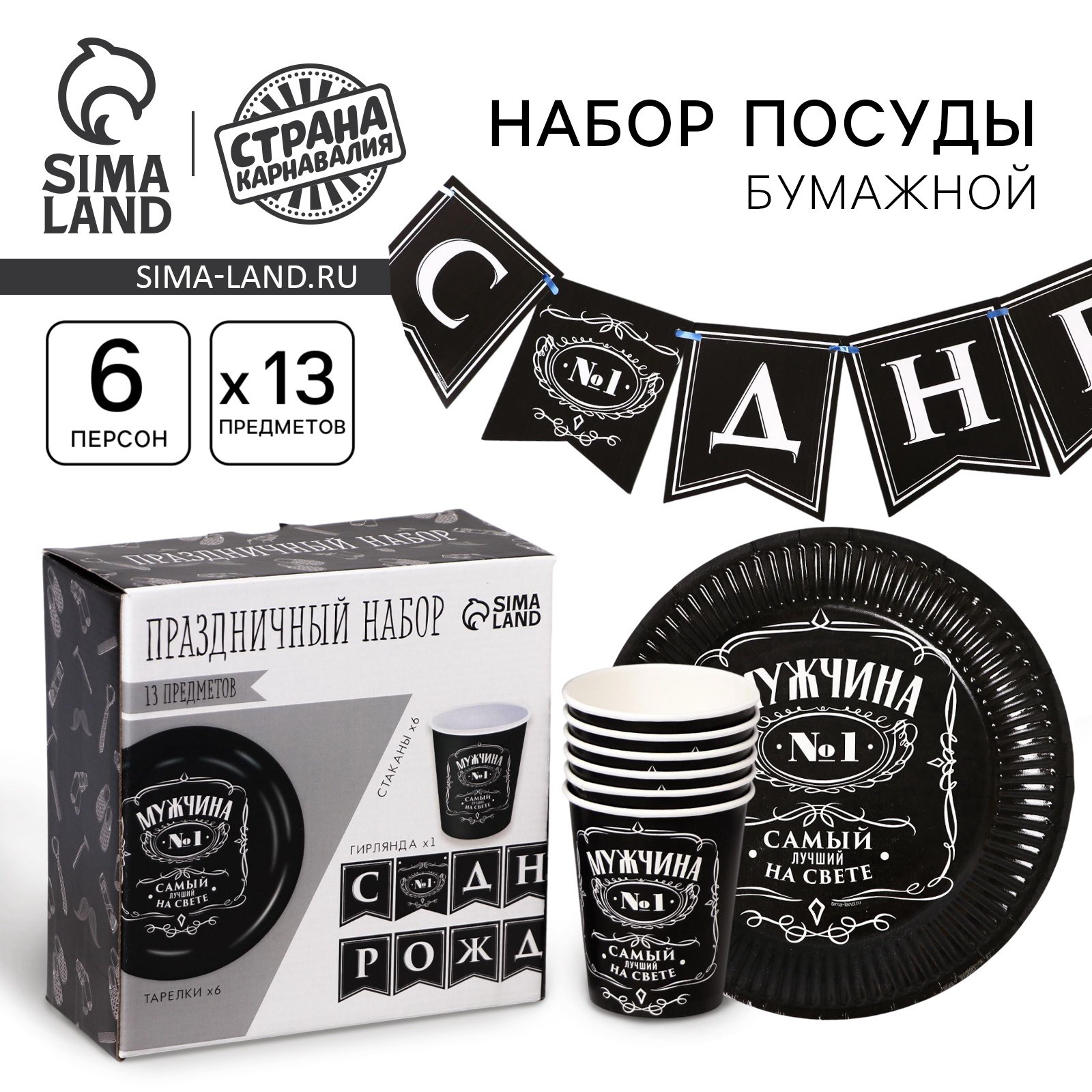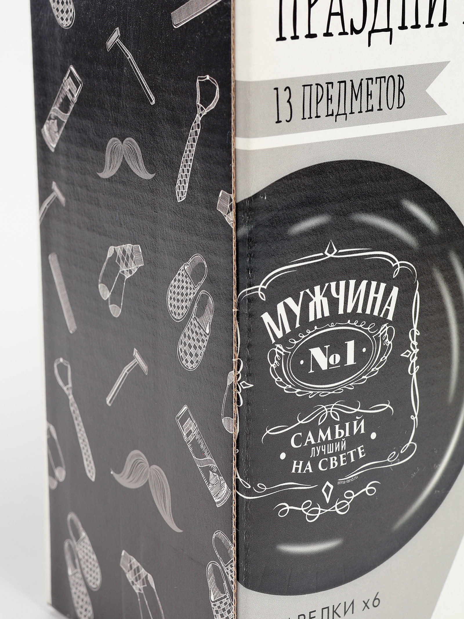 УЦЕНКА Набор бумажной посуды "Настоящий мужчина": 6 тарелок, 6 стаканов, 1 гирлянда, Страна Карнавалия, Россия