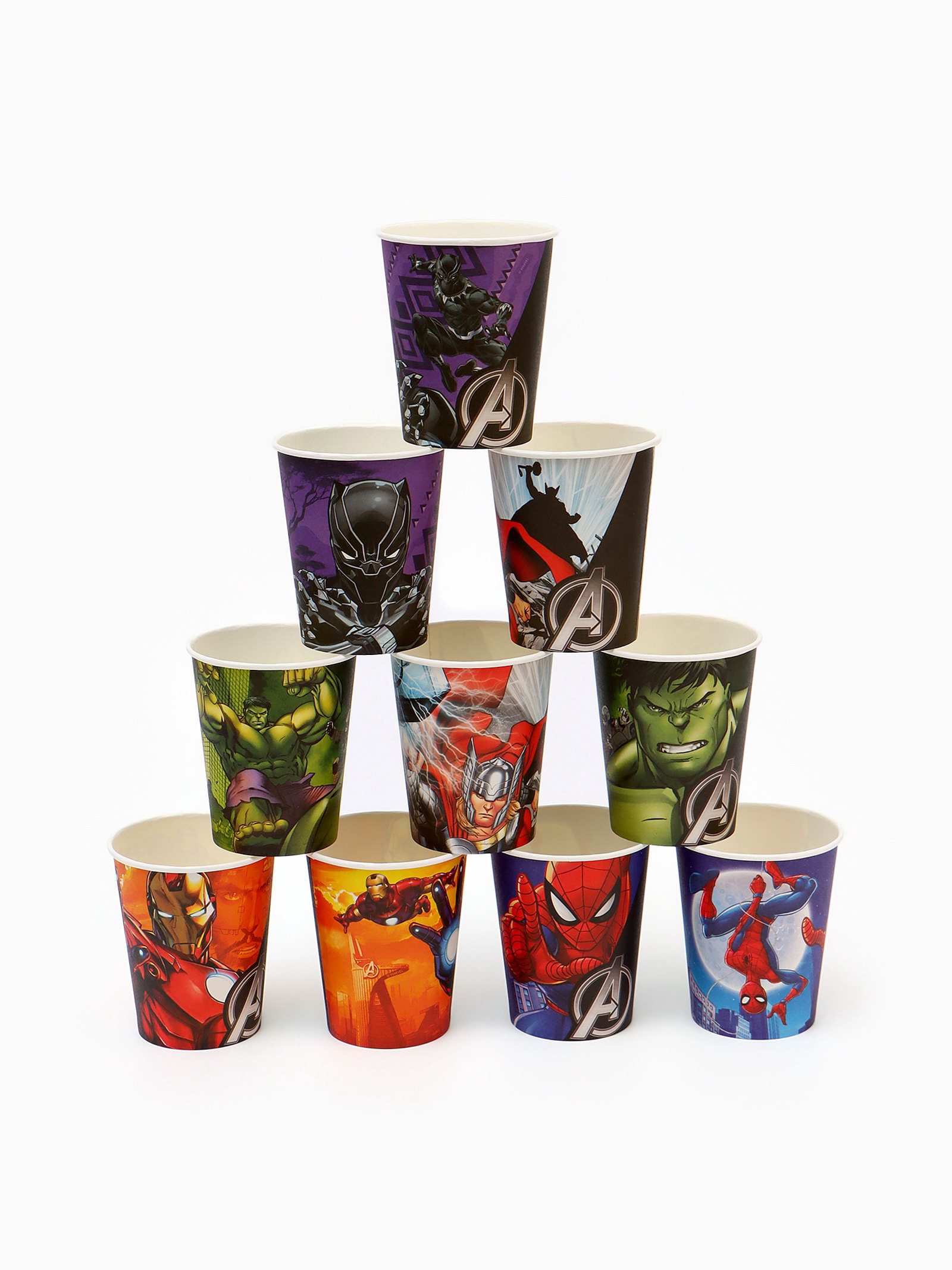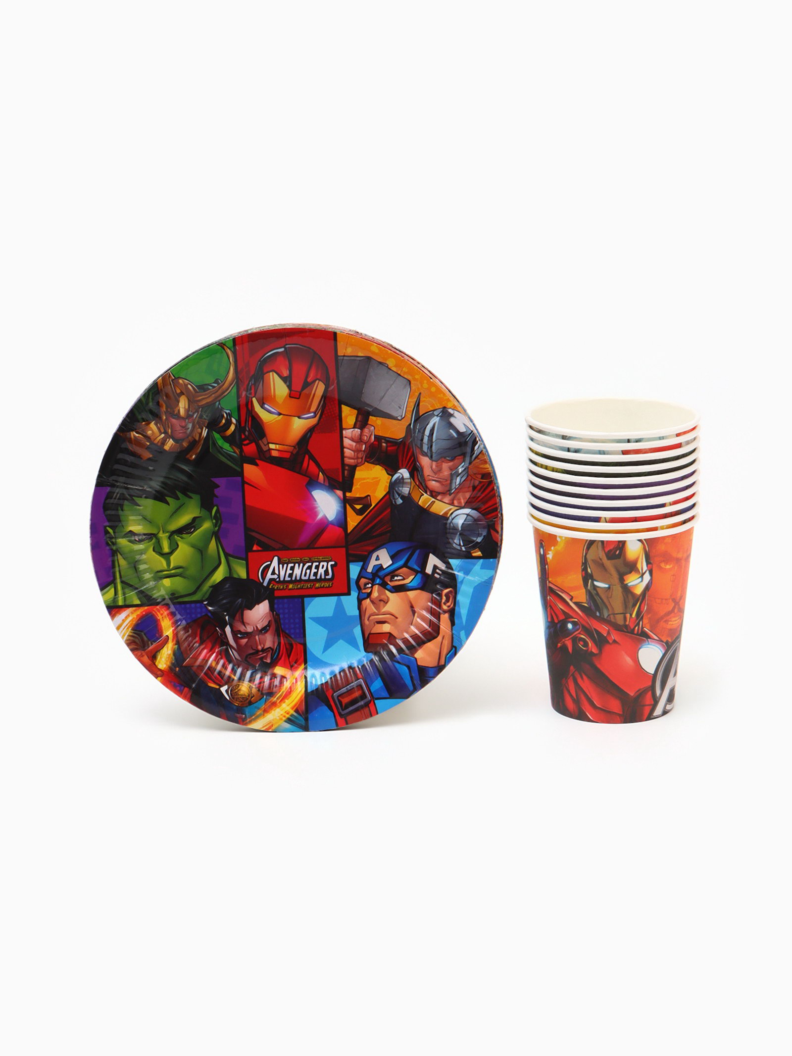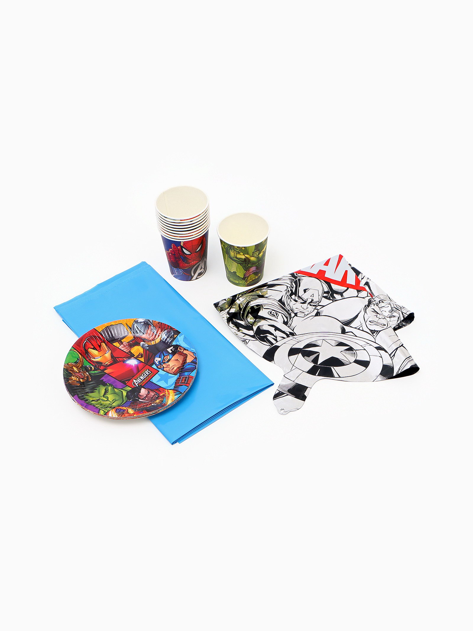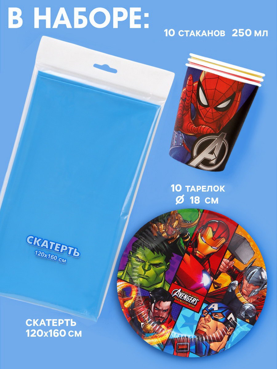 Набор бумажной посуды 10 персон: стакан, тарелка, скатерть, Мстители, MARVEL, Россия