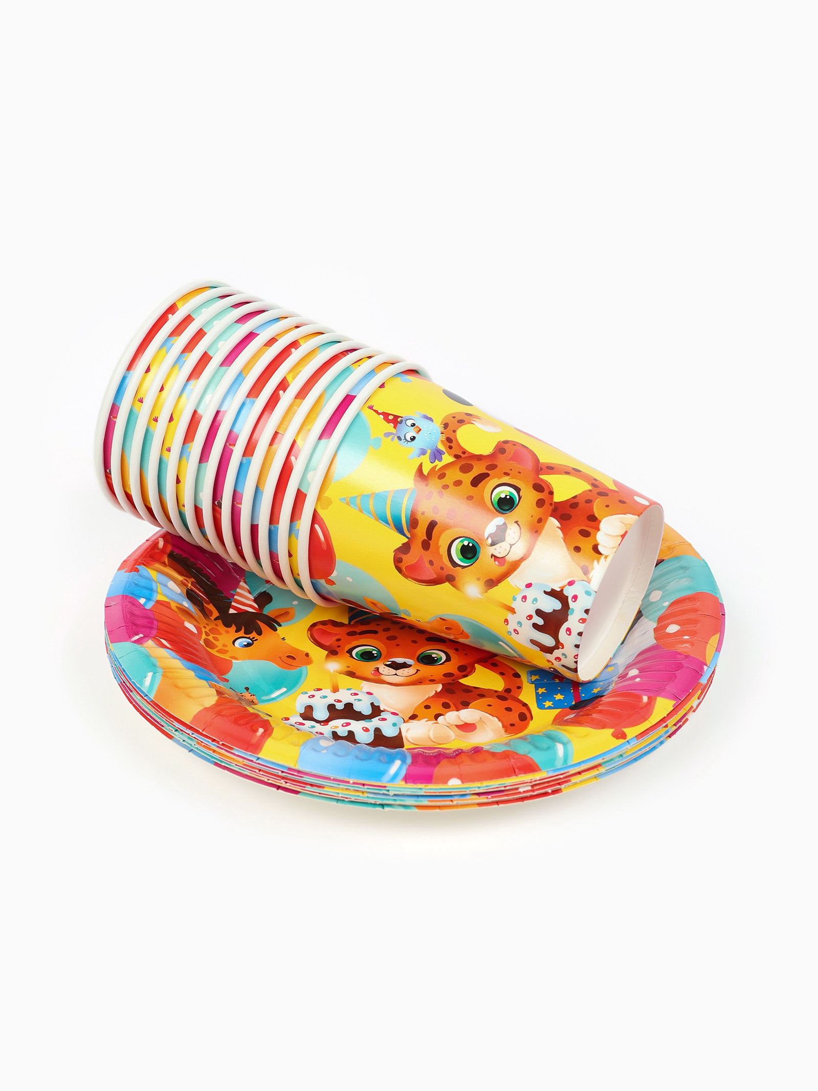 Посуда бумажная одноразовая "С Днём рождения", на 12 персон, Страна Карнавалия, Россия