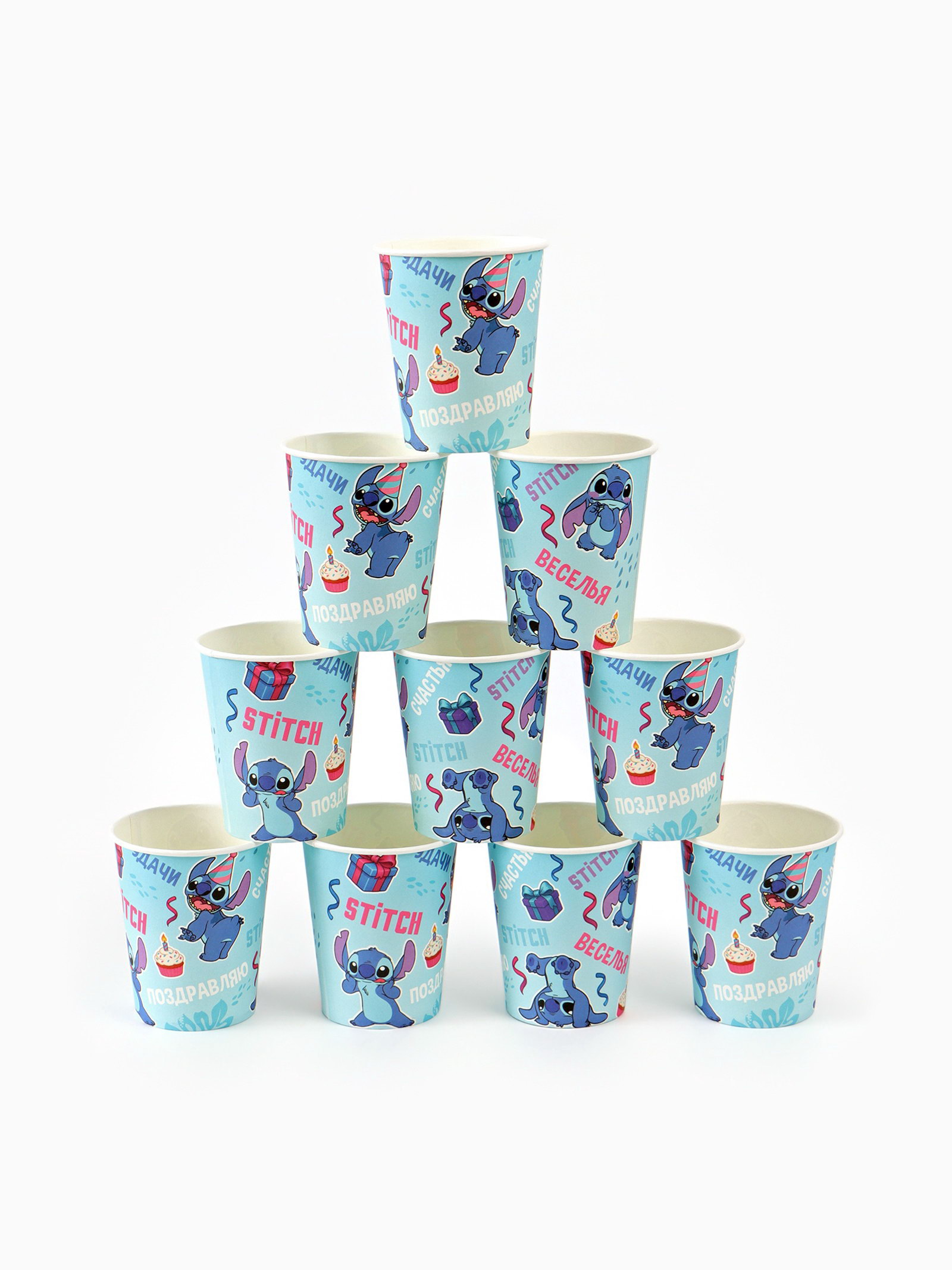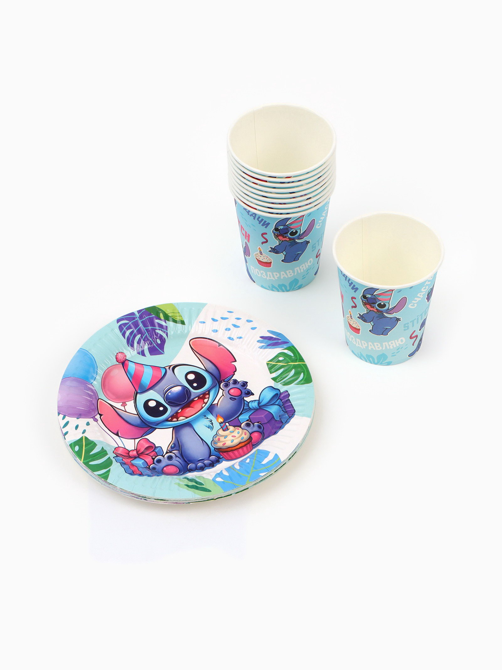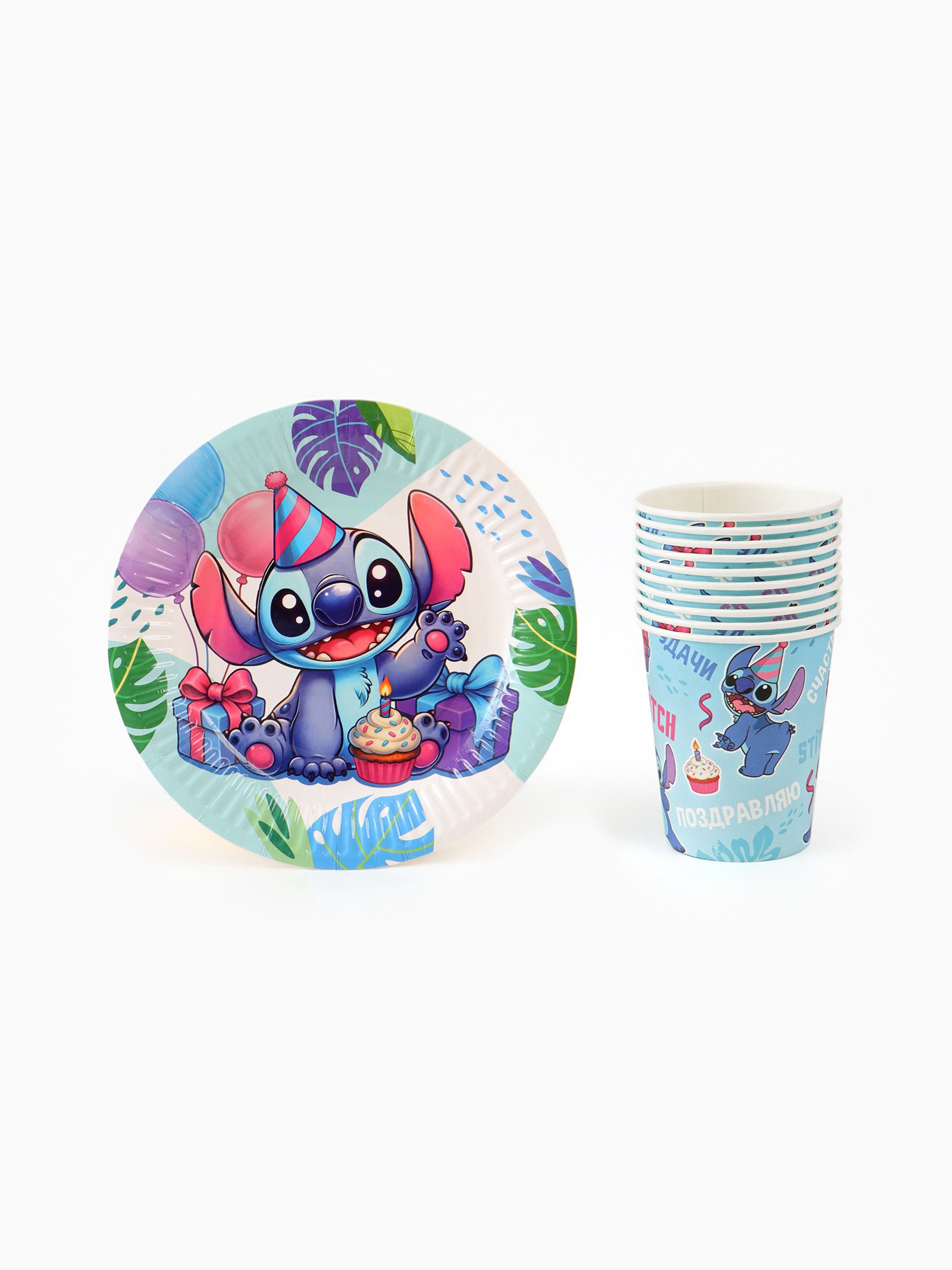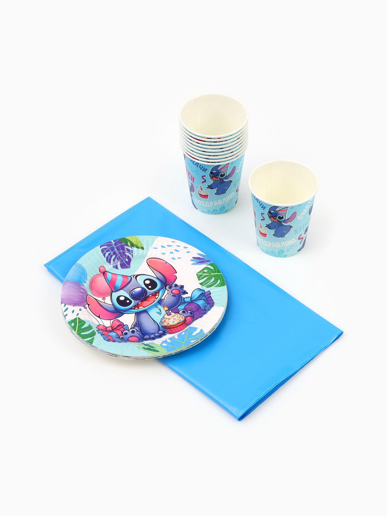Посуда одноразовая бумажная на 10 персон: стаканы, тарелки, скатерть, Стич, Disney, Китай