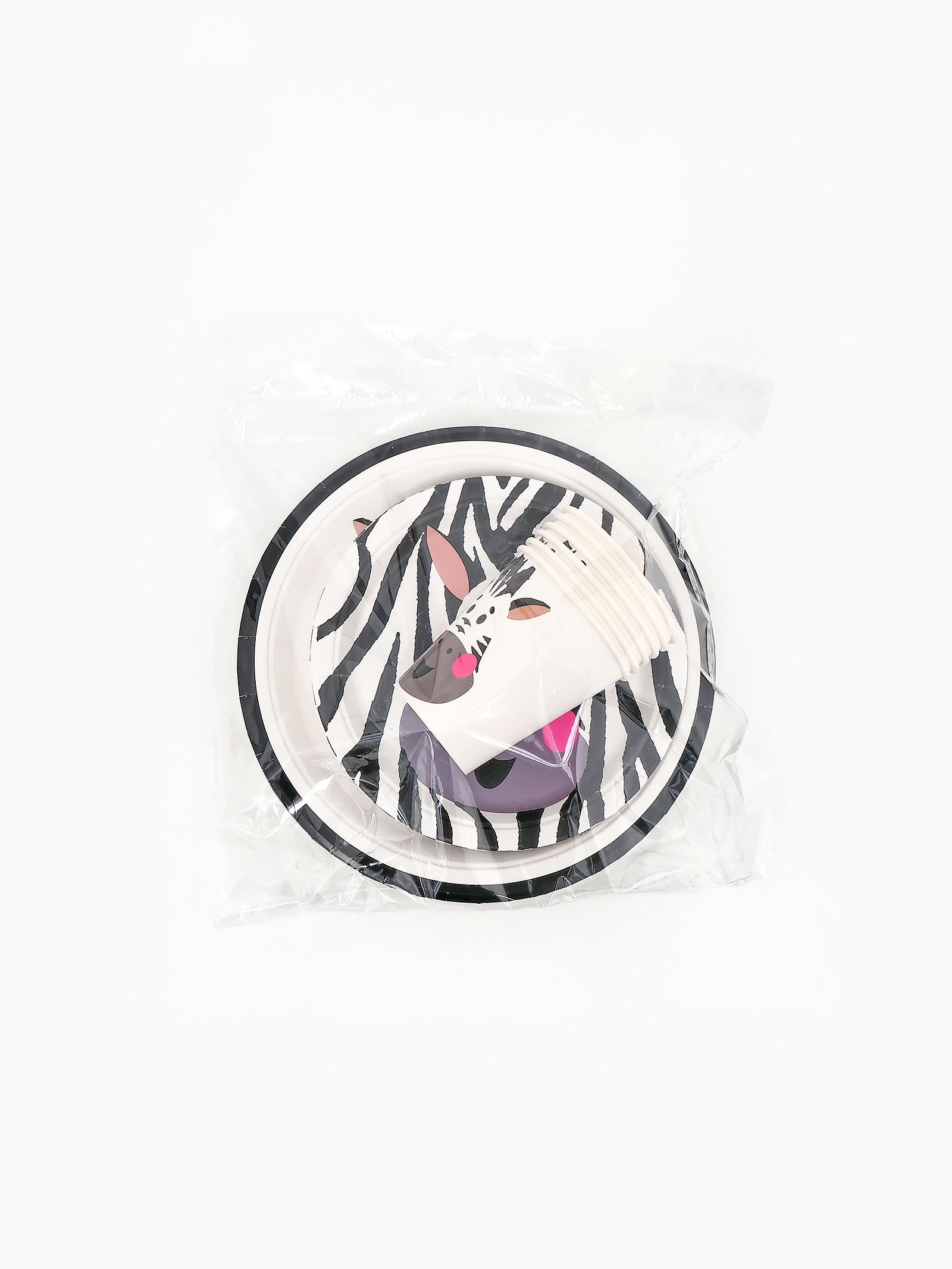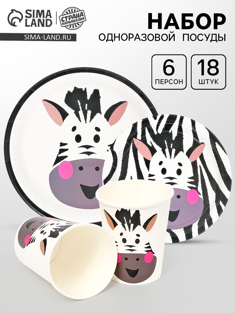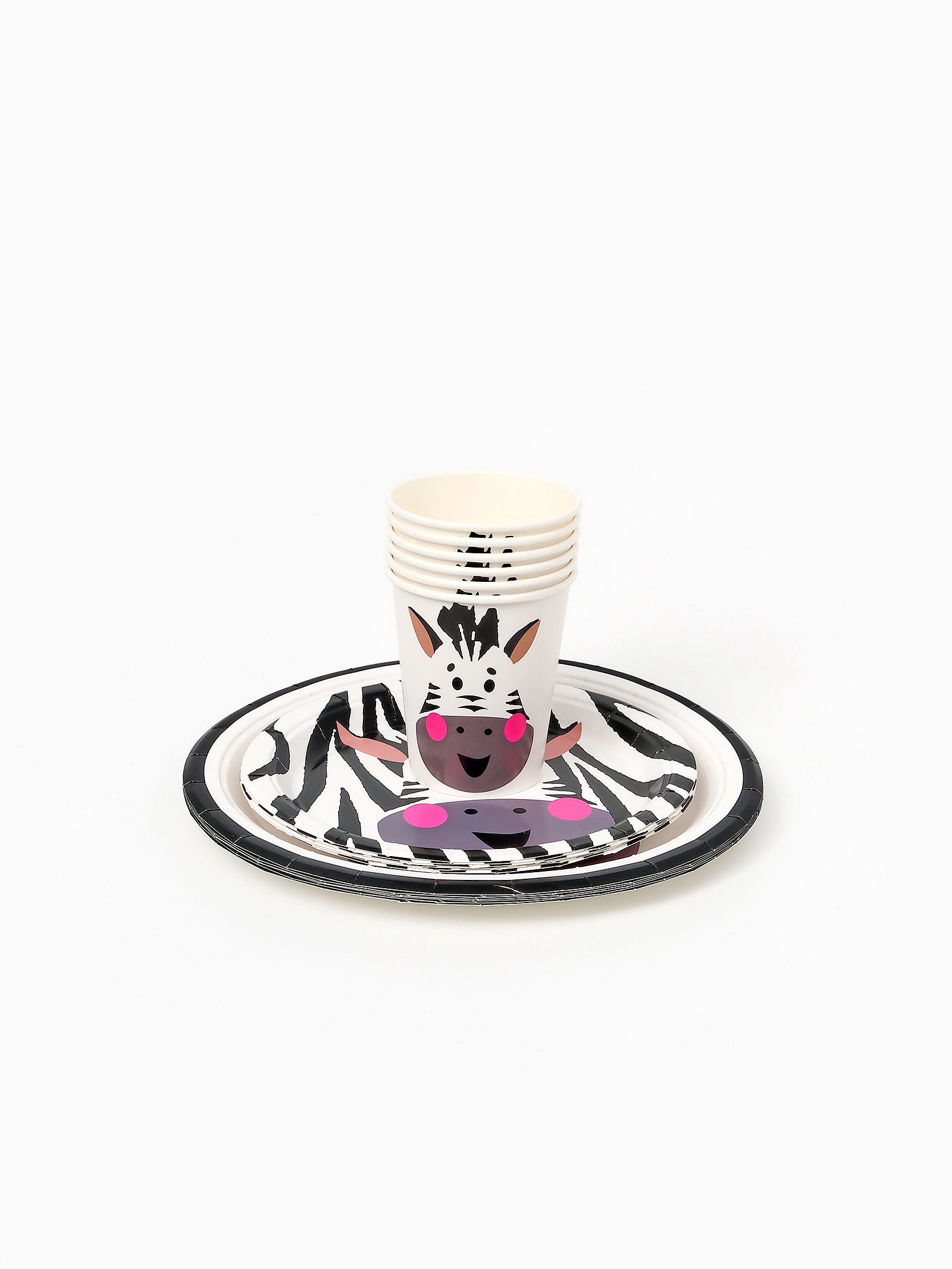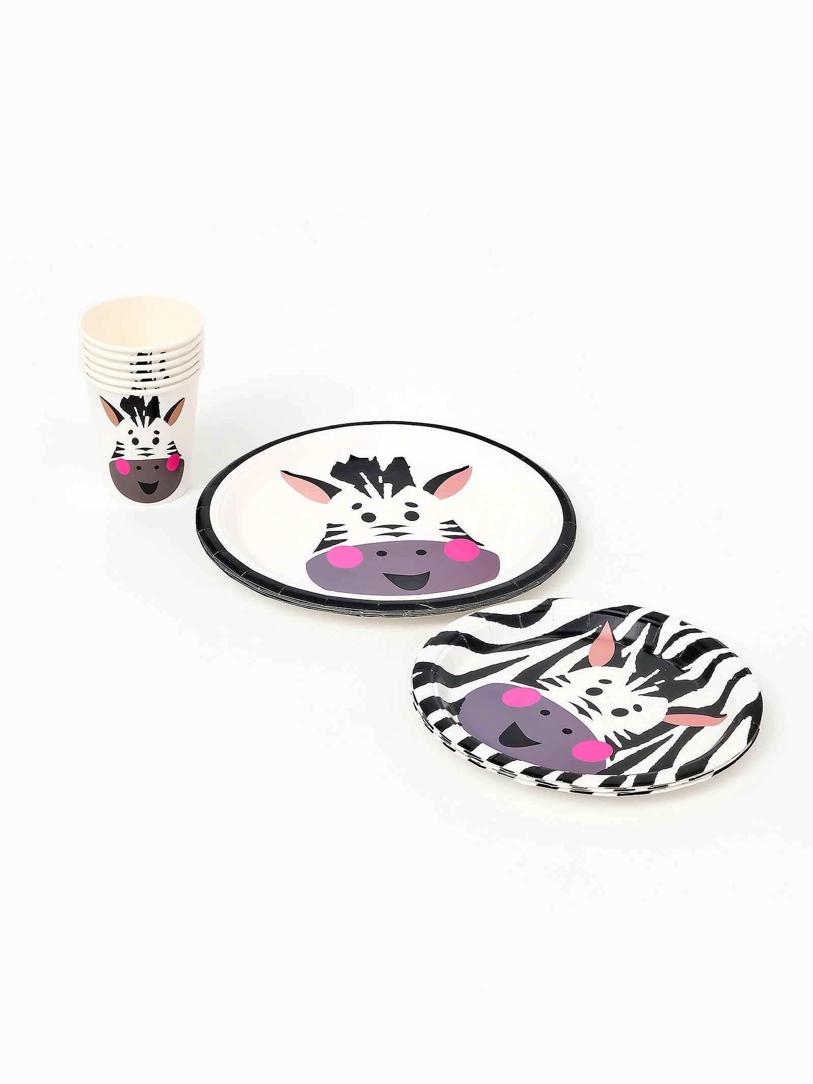Набор бумажной посуды "Зебра": тарелки 12 шт, стаканы 6 шт, 22x22x10 см., Страна Карнавалия, Китай