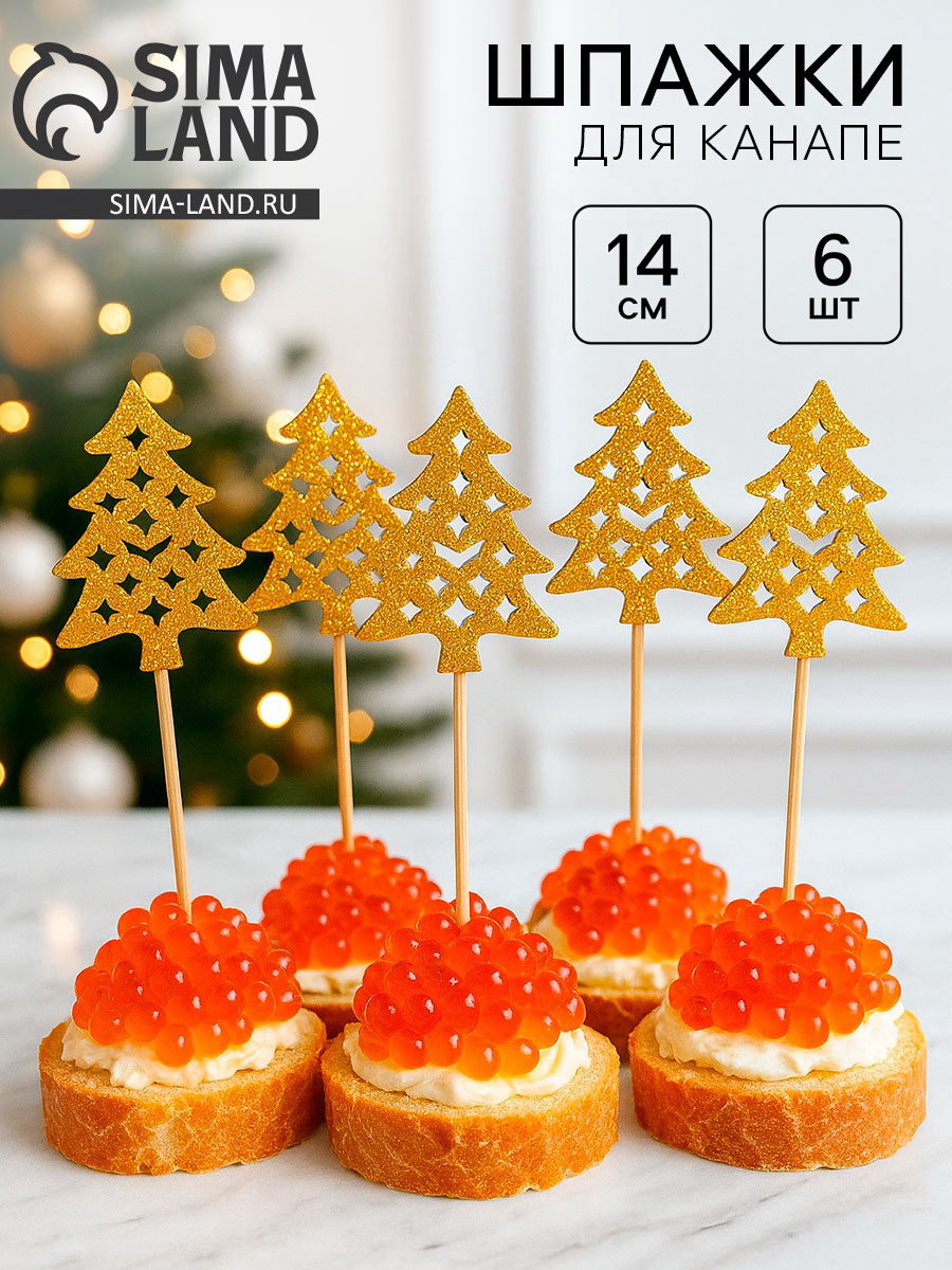 Шпажки для канапе "Золотые елочки", набор 6 шт., Волшебная идея, Россия