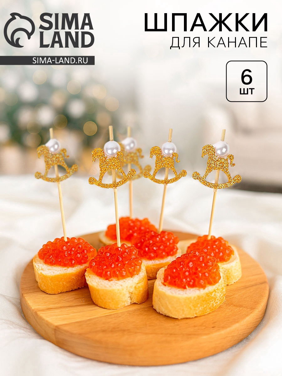 Шпажки для канапе "Лошадка" золотая, набор 6 шт., Волшебная идея, Россия