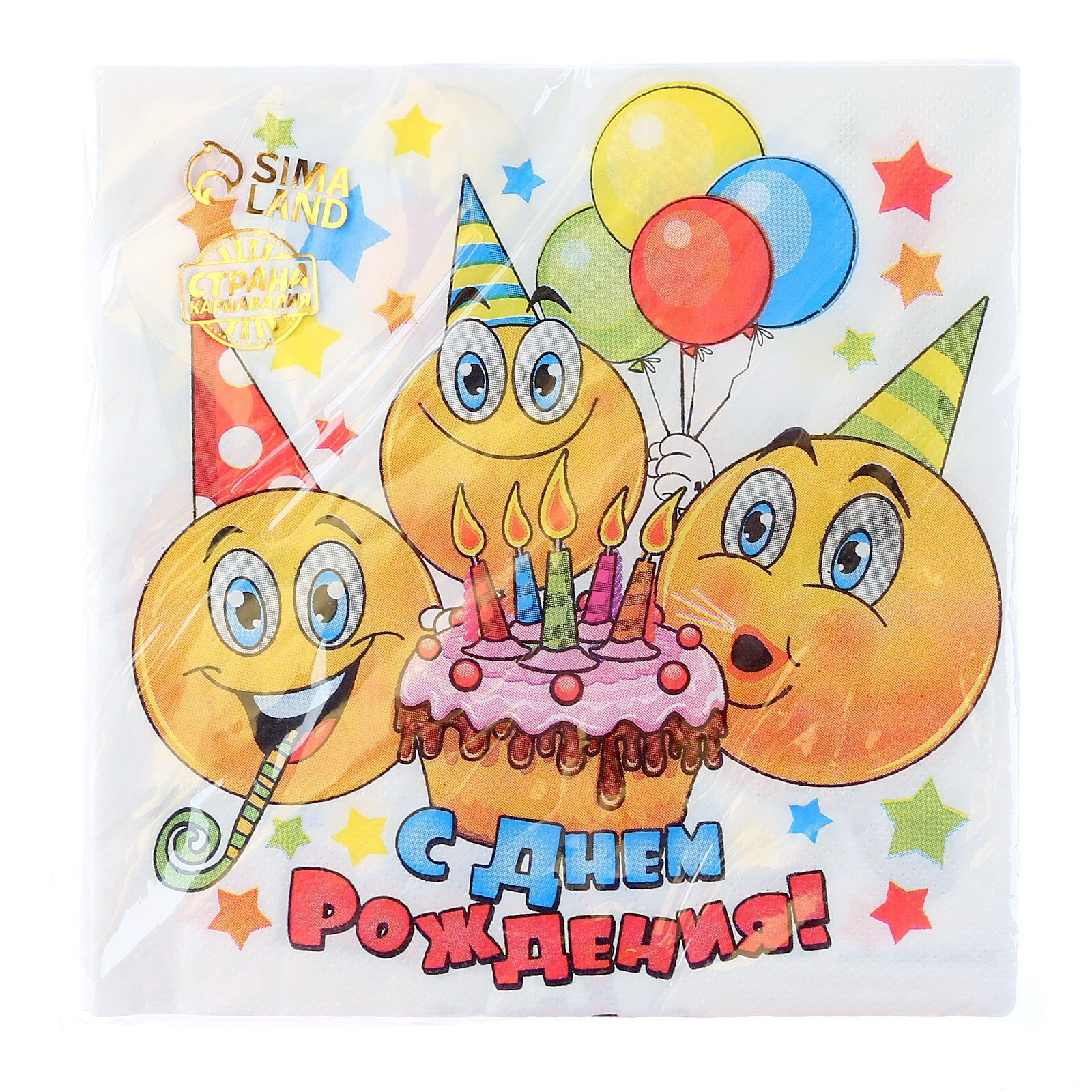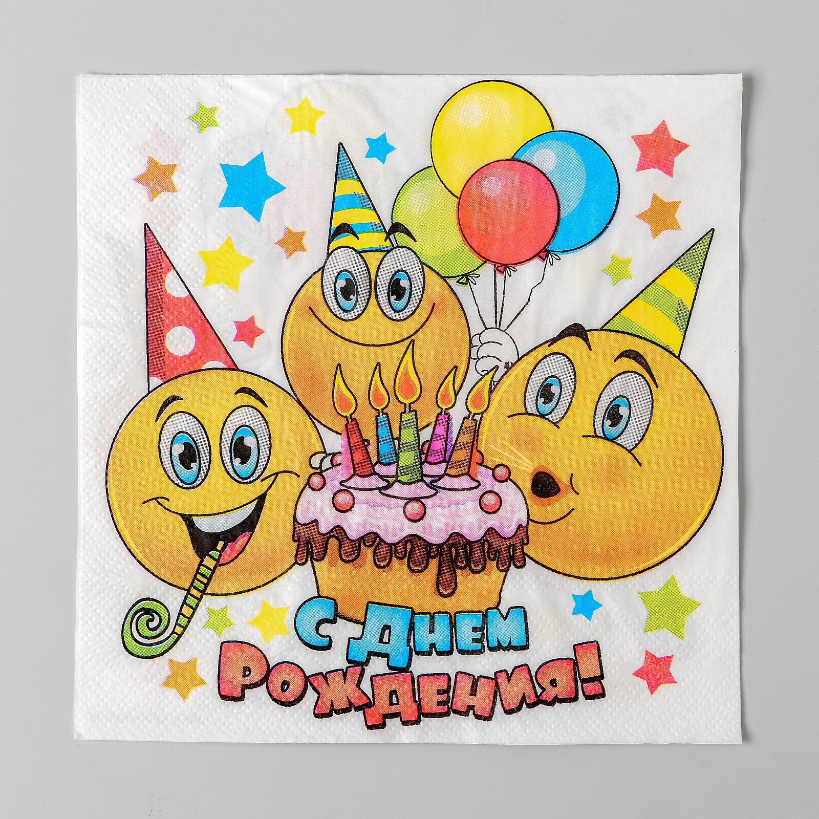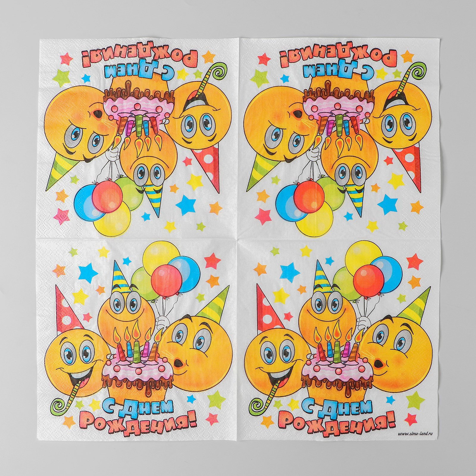 Салфетки бумажные двухслойные "С днём рождения", 33x33, 20 шт., 1.2x16.5x16.5 см., Страна Карнавалия, Китай