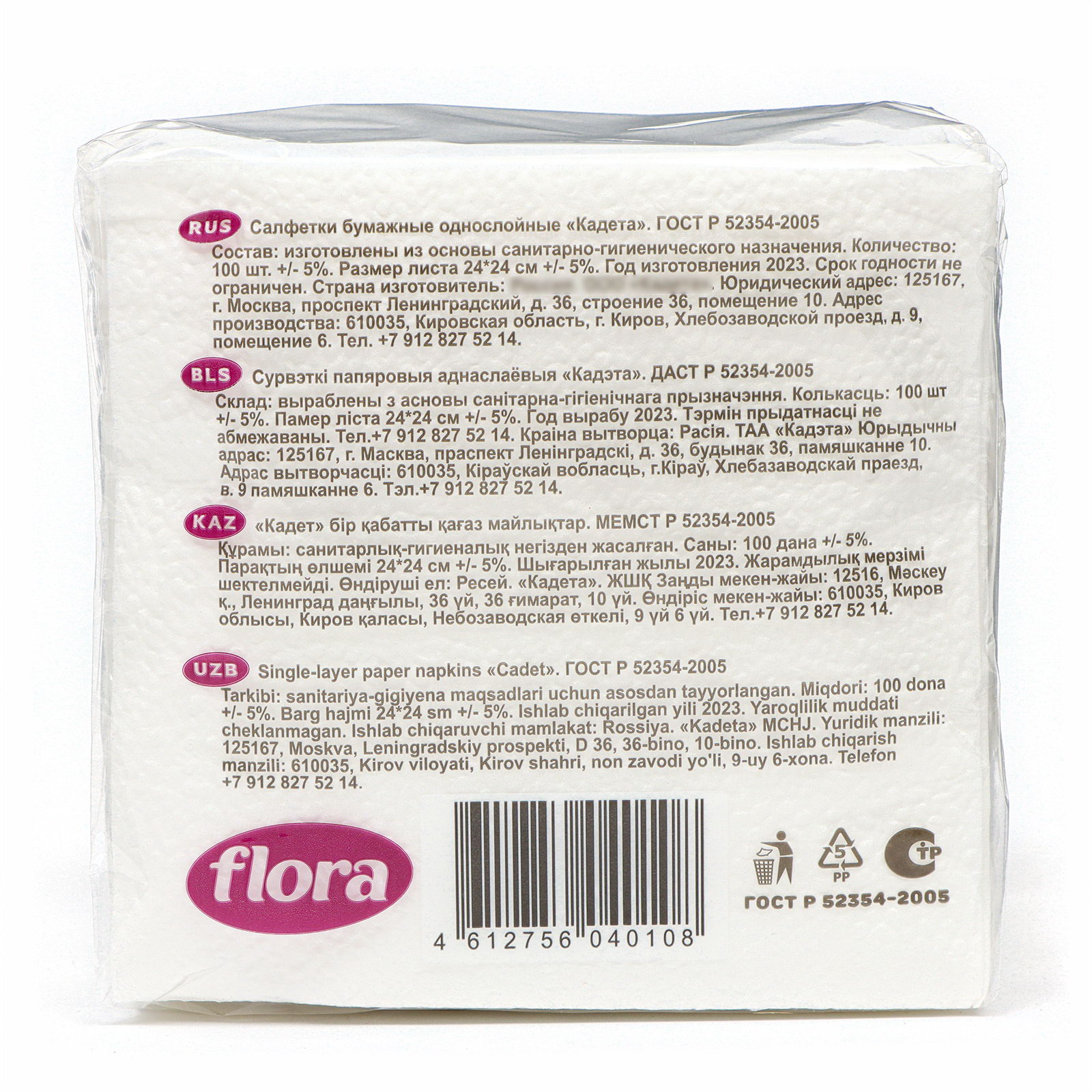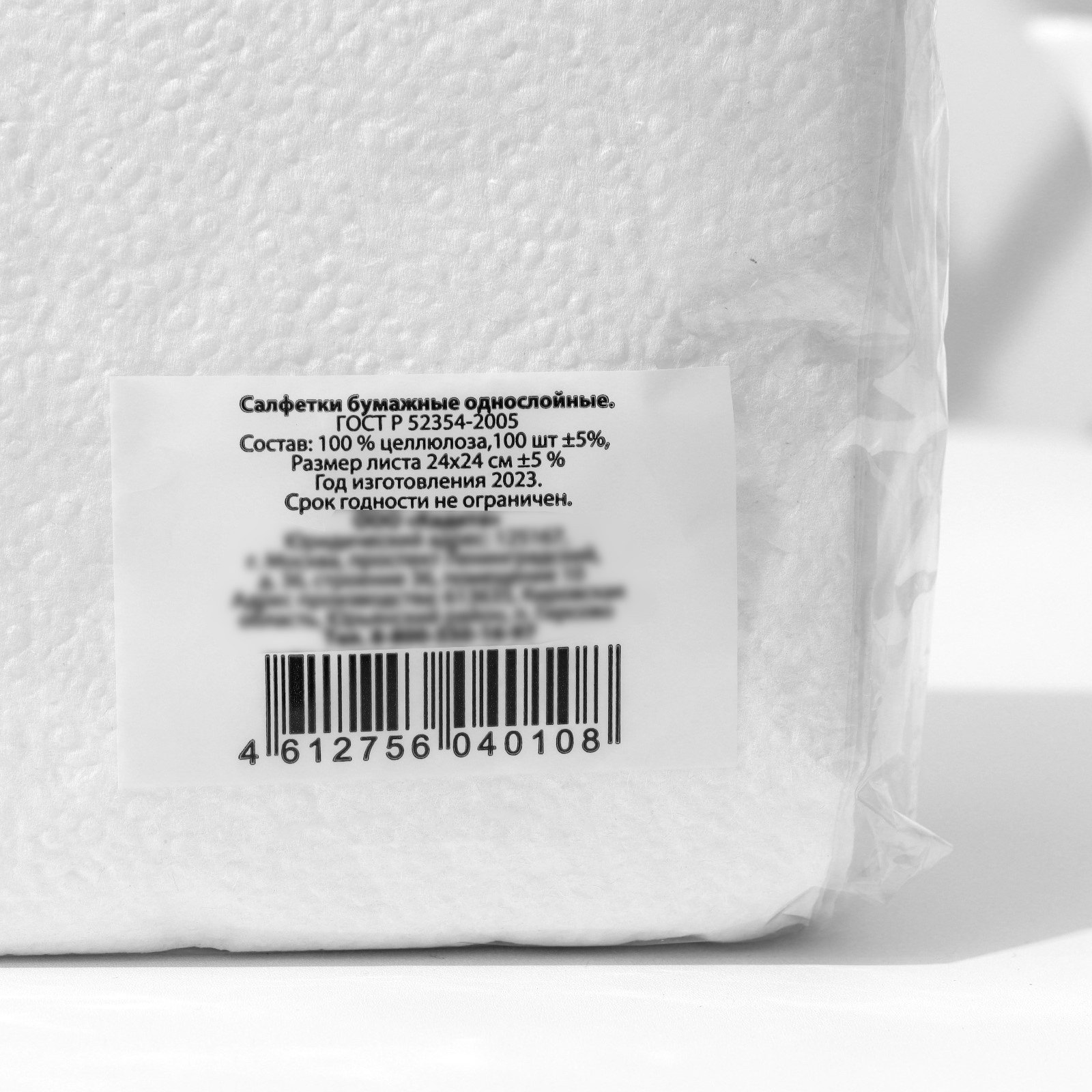 Салфетки бумажные, 24х24 см, 100 шт, белые, Россия