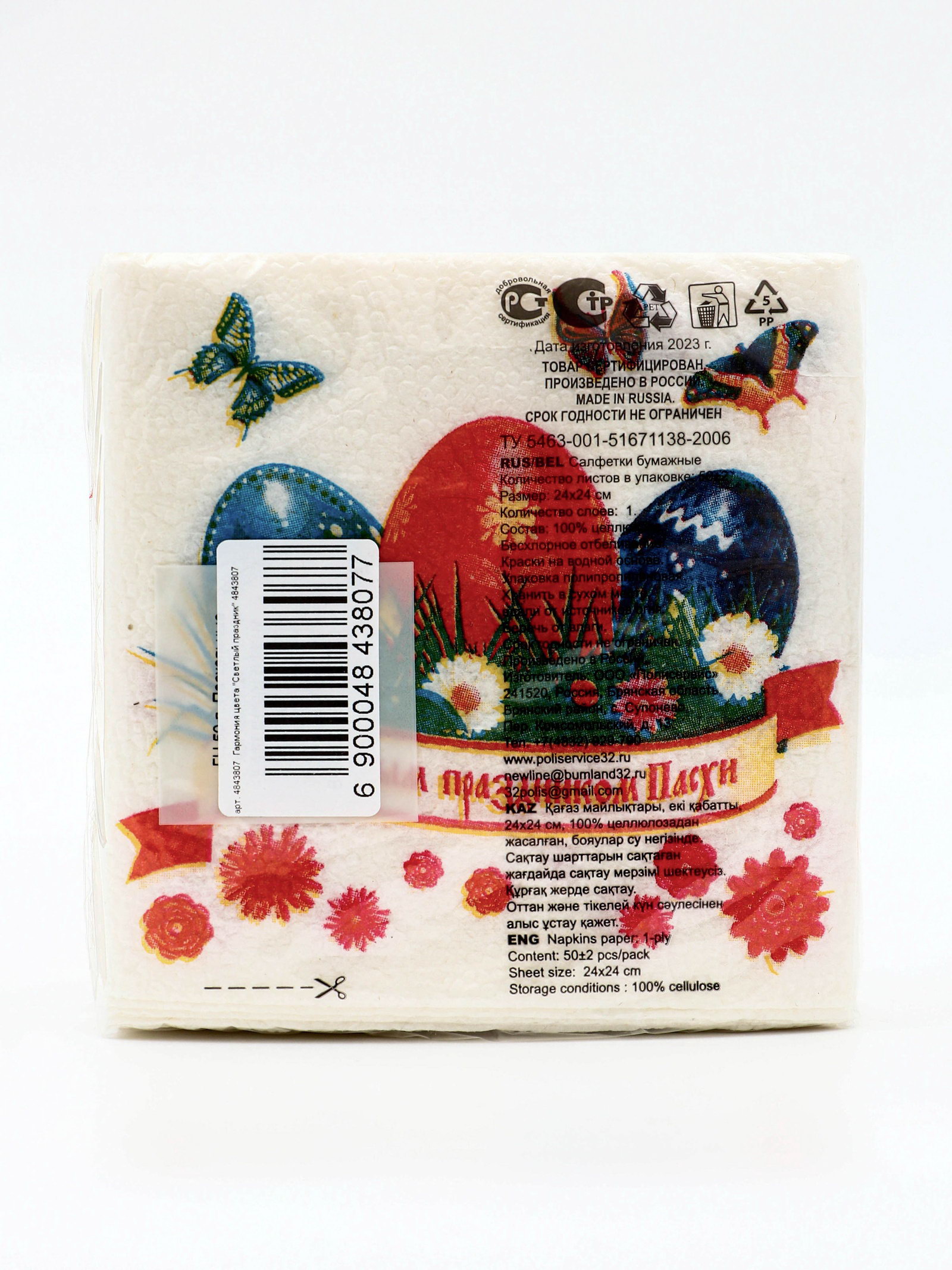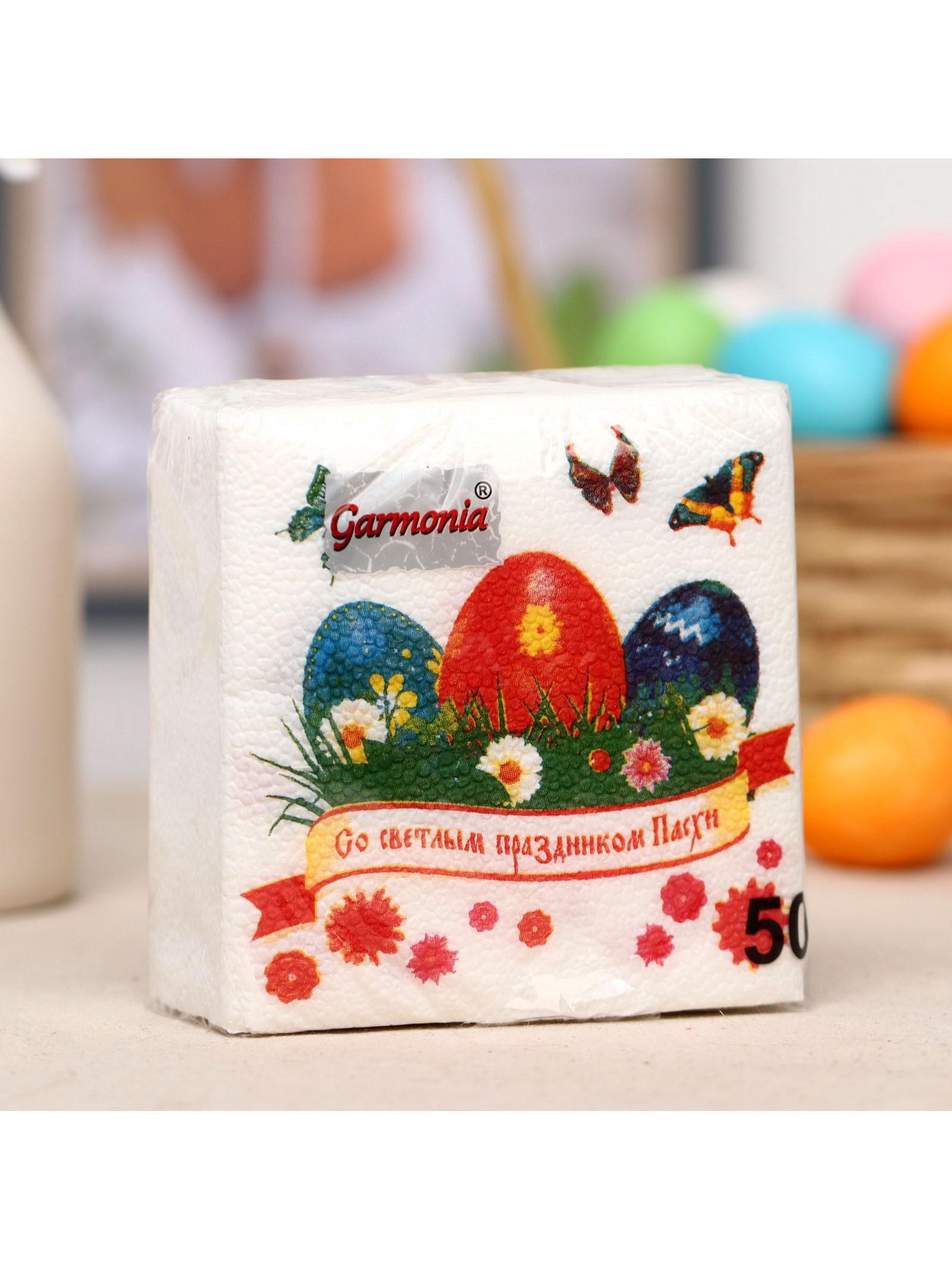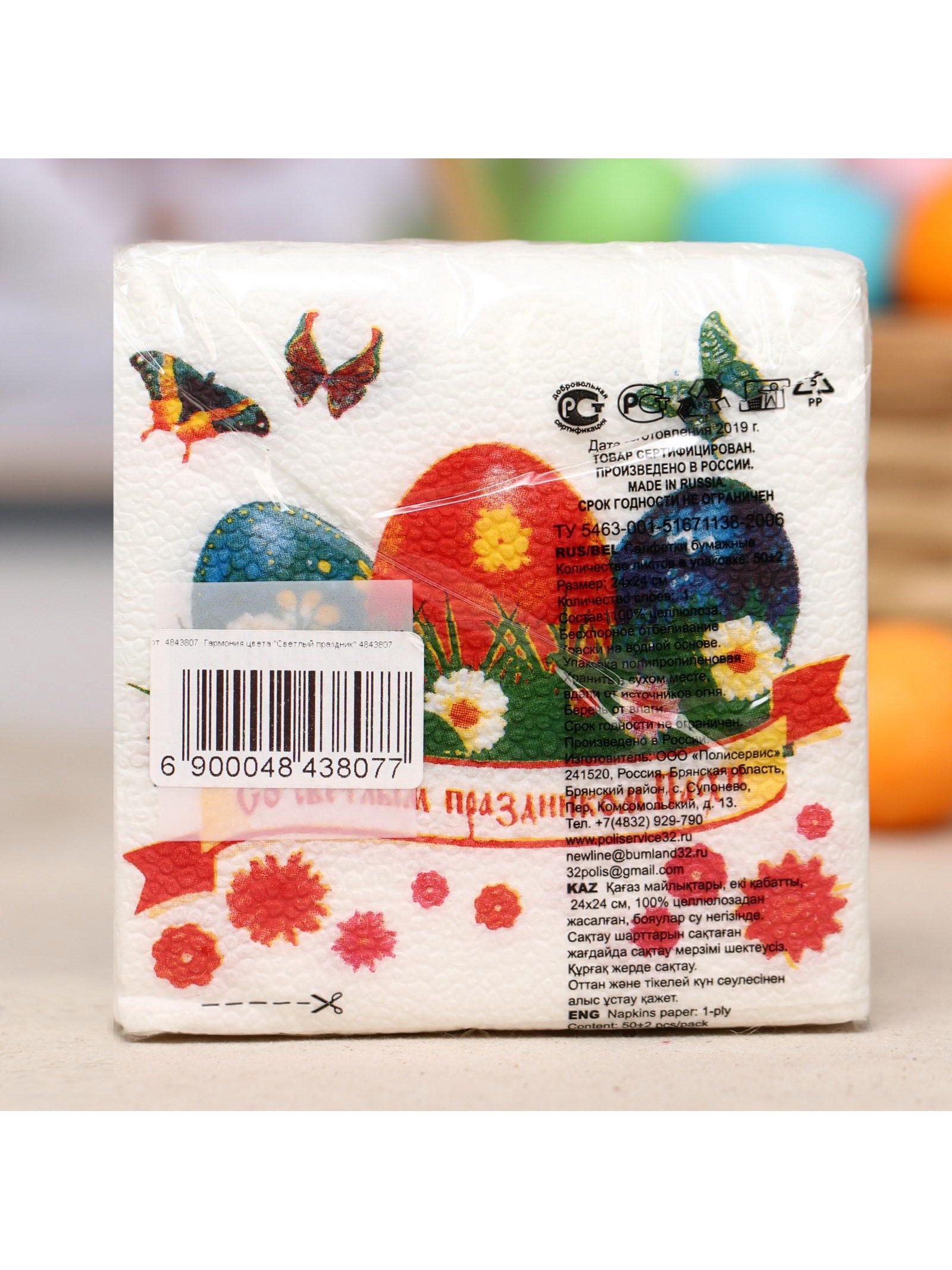 Пасхальные салфетки бумажные "Светлый праздник", 1 слой, 24х24 см, 50 шт, Гармония цвета, Россия