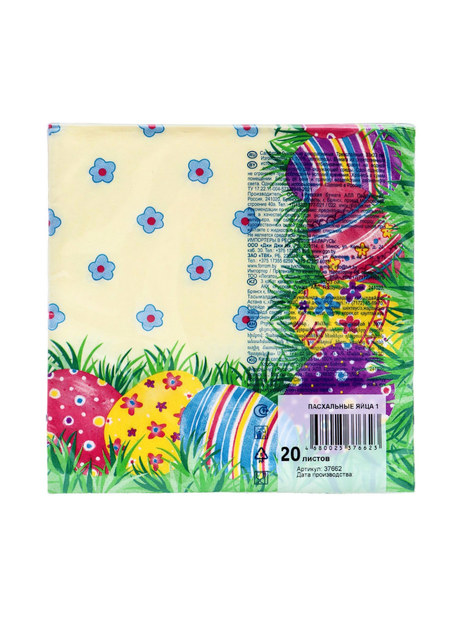 Салфетки бумажные "Пасхальные яйца", 3 слоя, 33х33 см, 20 шт, Россия