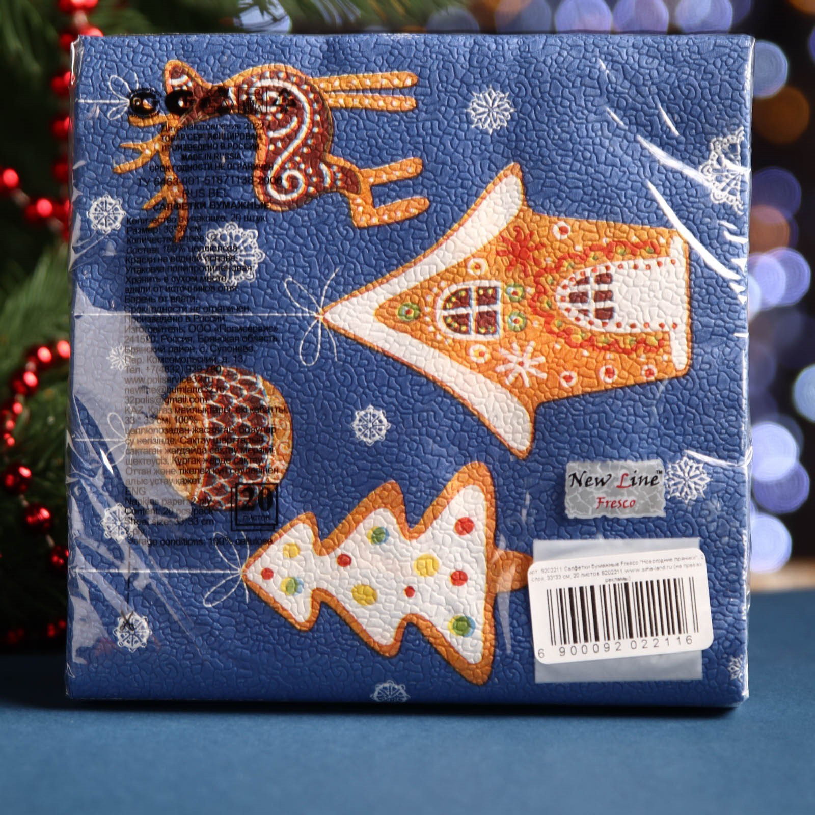 Салфетки бумажные Fresco "Новогодние пряники", 2 слоя, 33х33 см, 20 шт, New line Fresco, Россия
