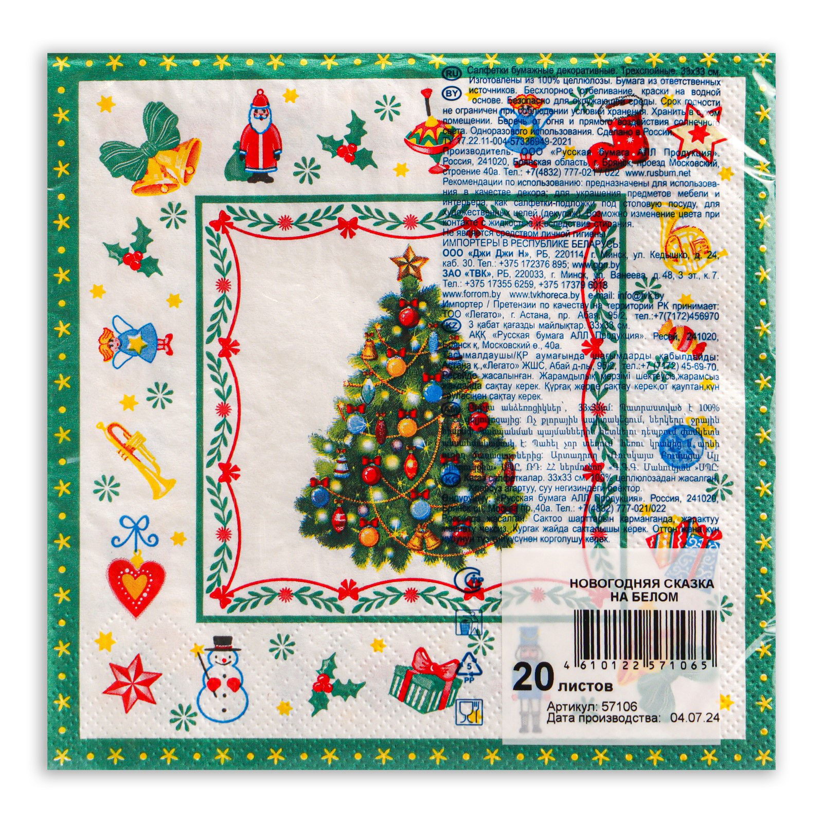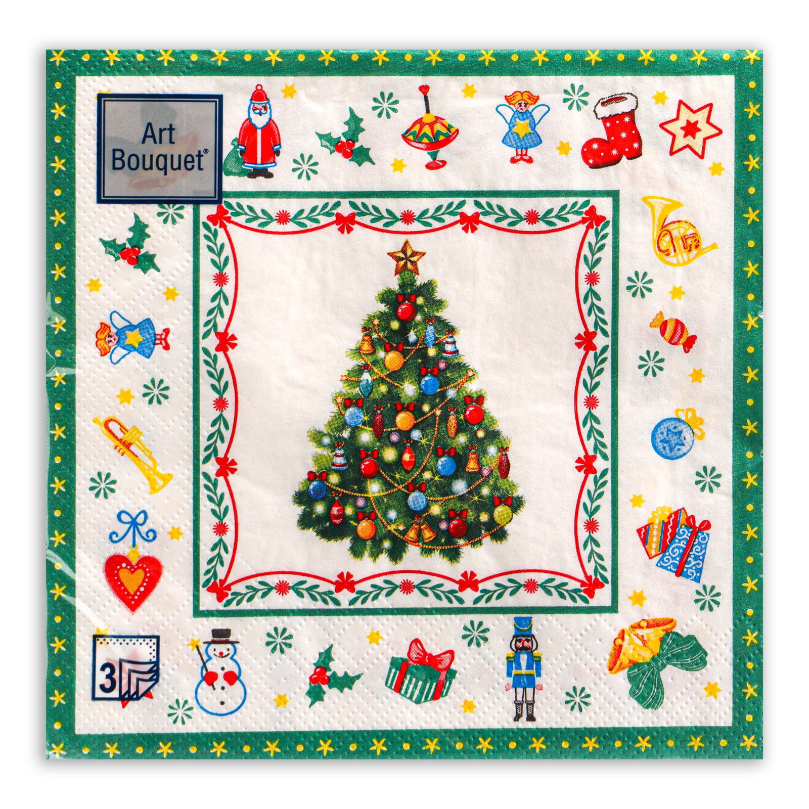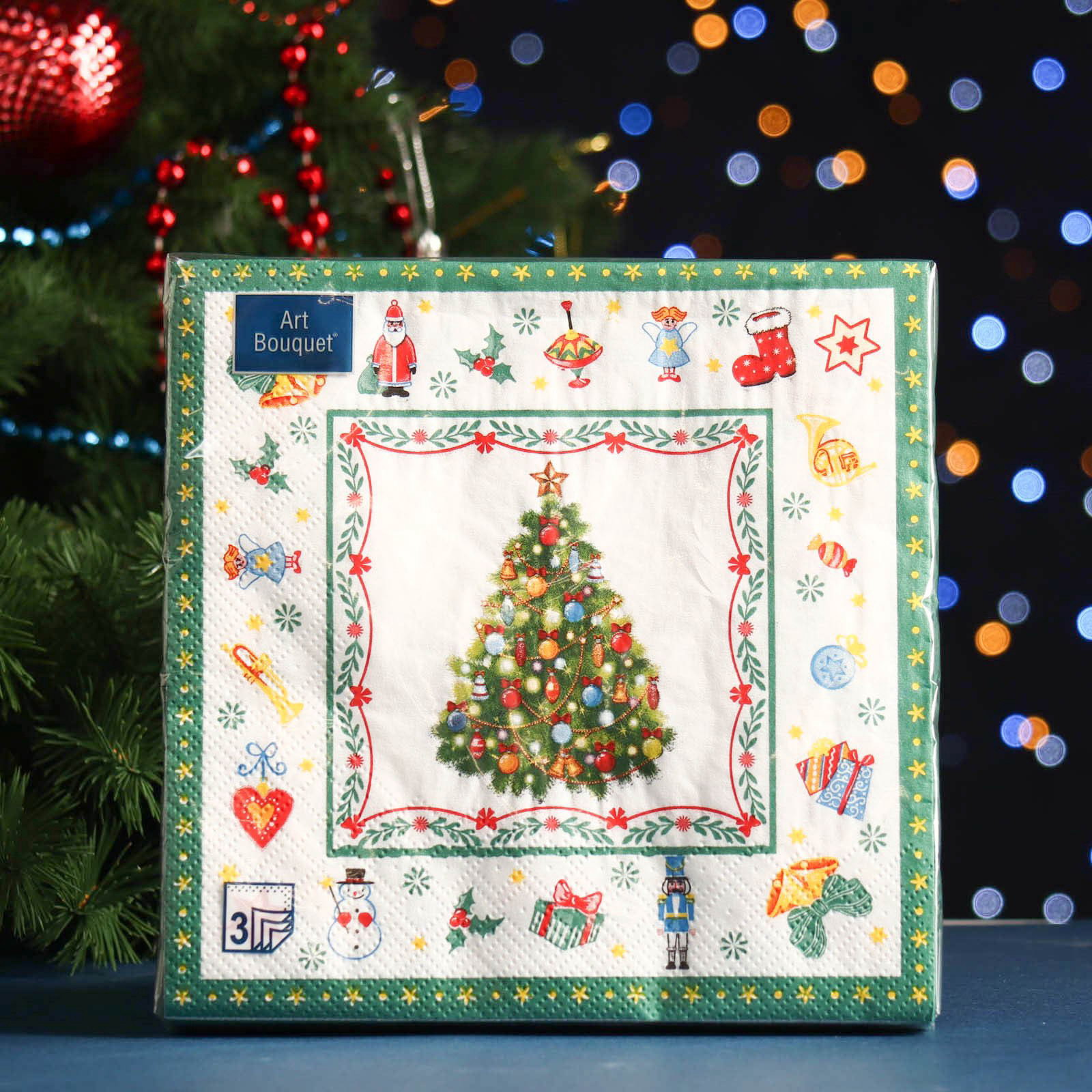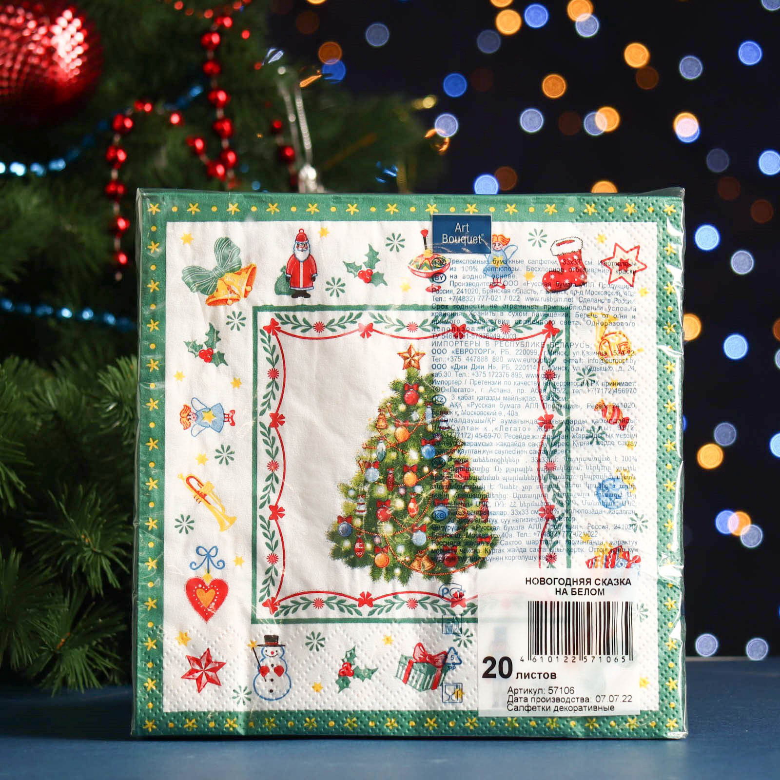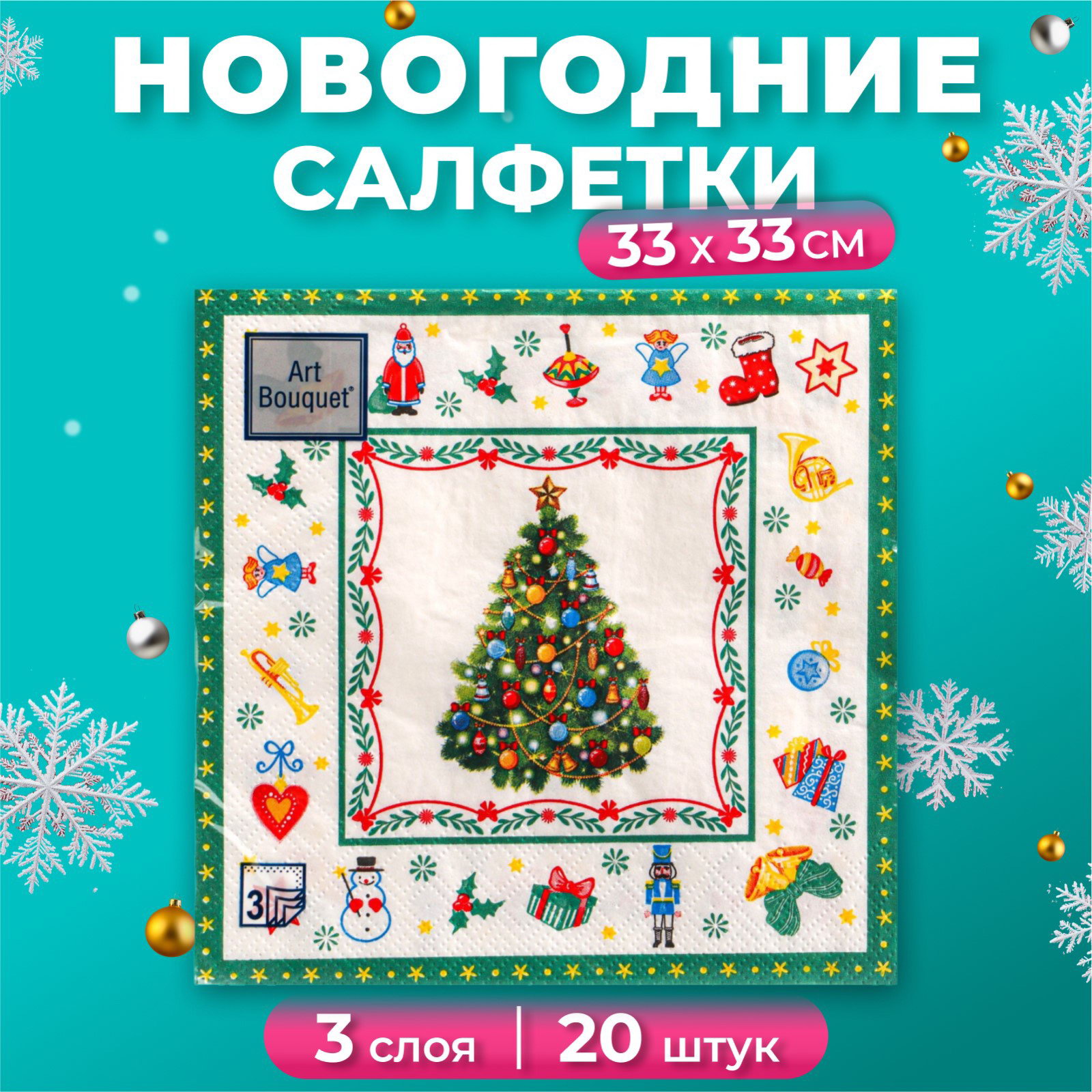 Салфетки бумажные Art Bouquet "Новогодняя сказка на белом", 3 слоя, 33x33 см, 20 шт., АртБукет, Россия