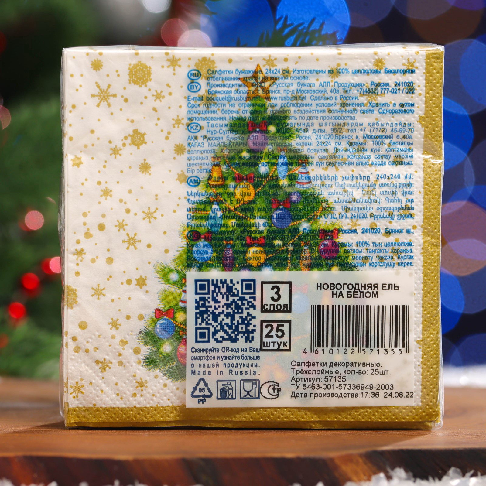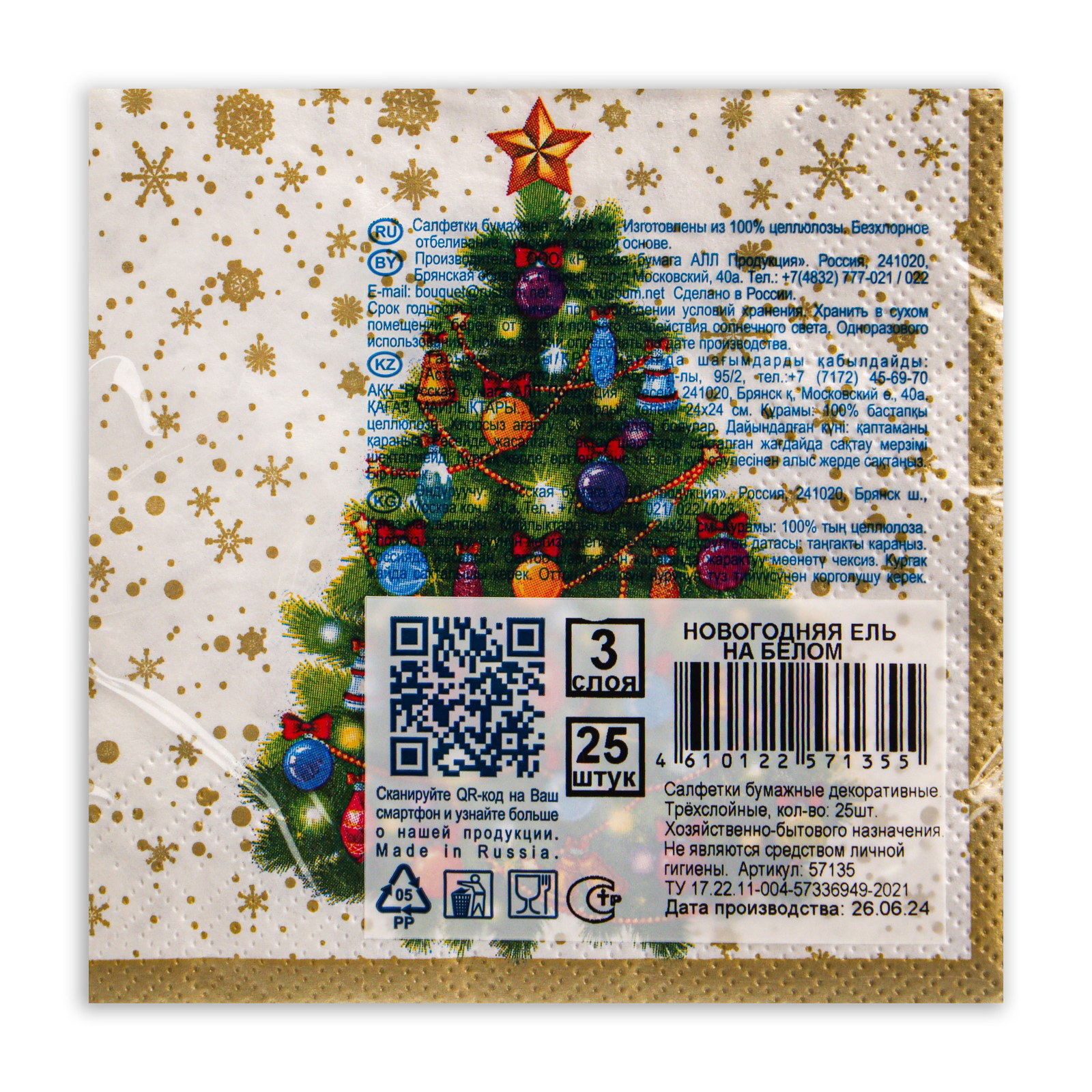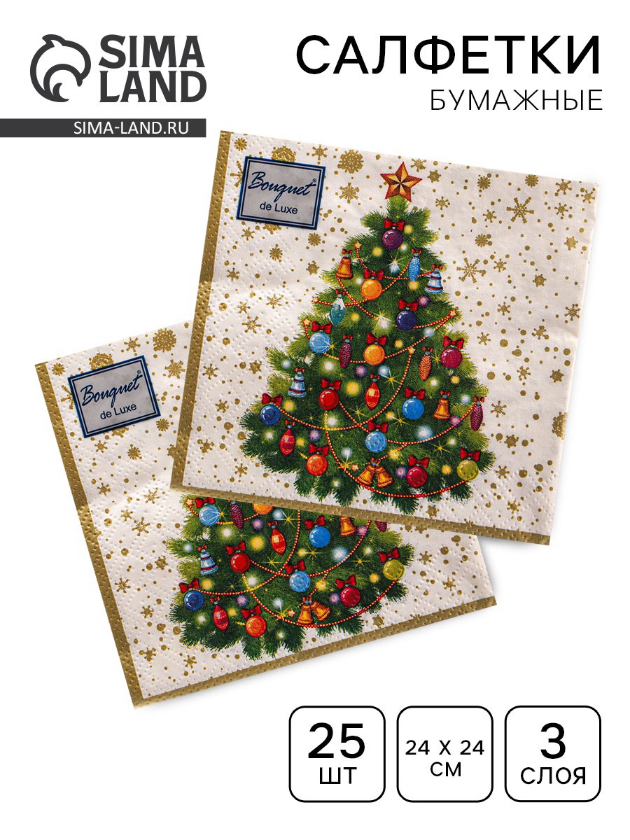 Салфетки бумажные Art Bouquet "Новогодняя ель на белом", 3 слоя, 24x24 см, 25 шт., АртБукет, Россия