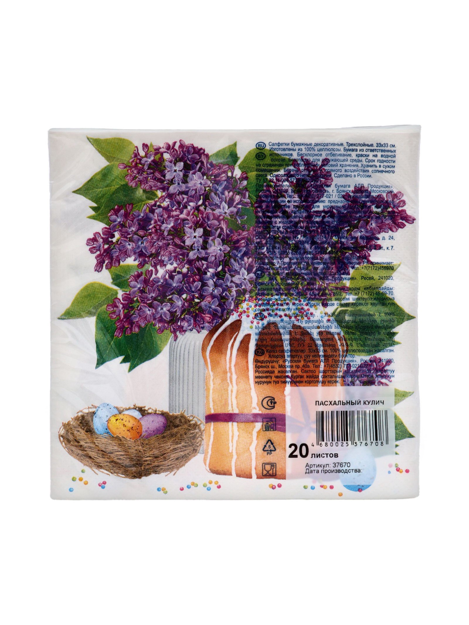 Салфетки бумажные "Пасхальный кулич", 3 слоя, 33x33 см, 20 шт, Россия